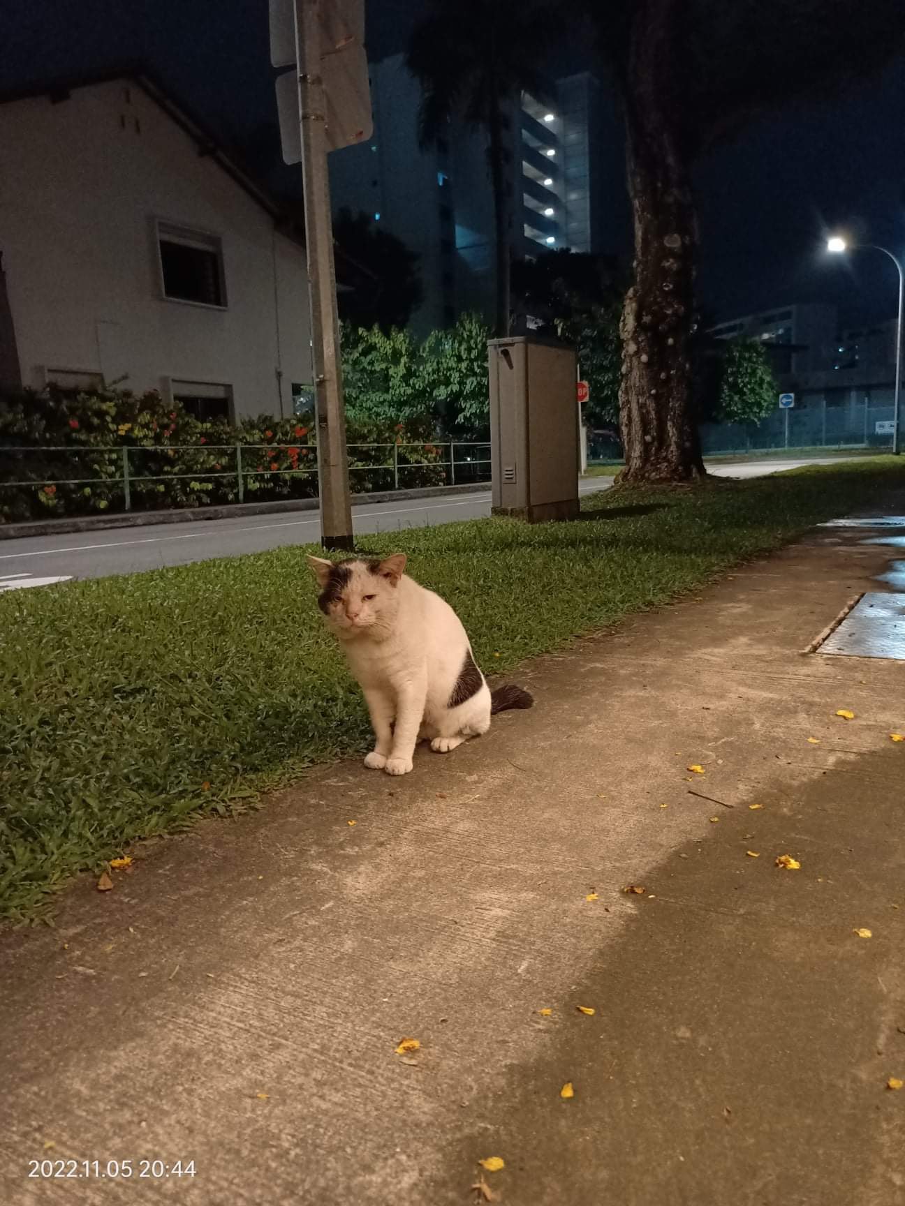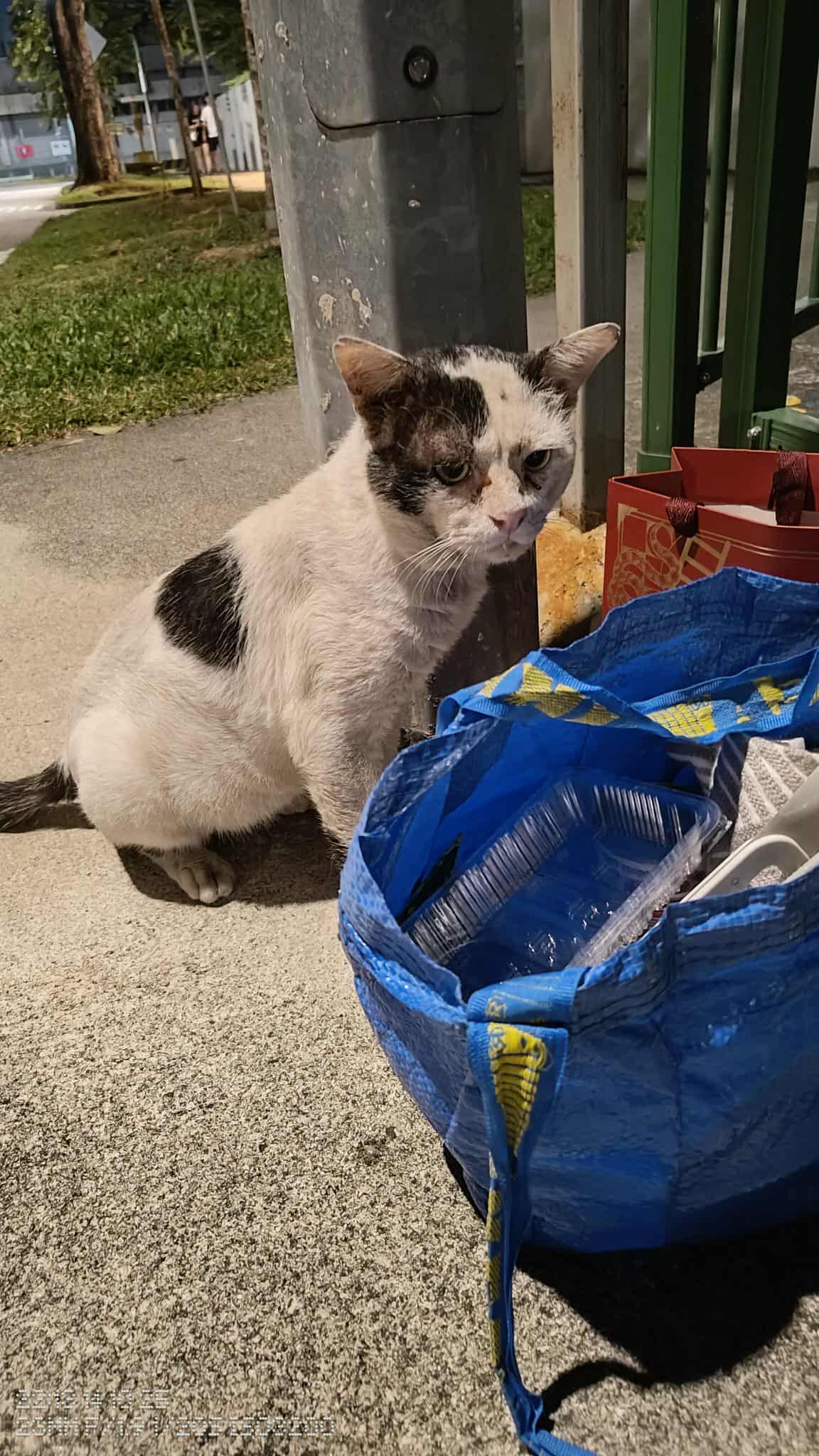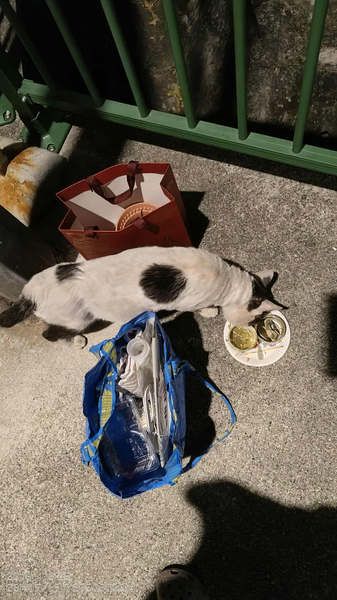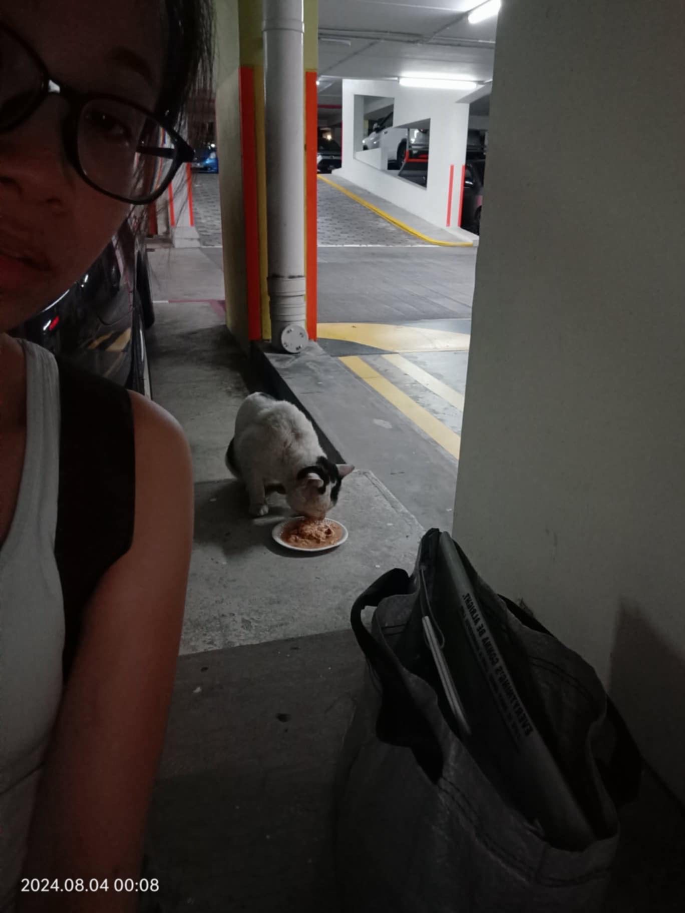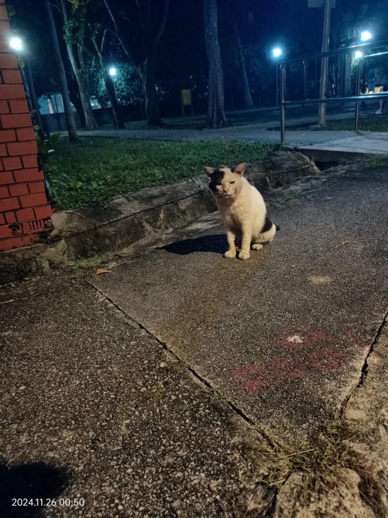 • 9pm saw xiao bai sitting outside 60a, so I give him a can of tuna and salmon