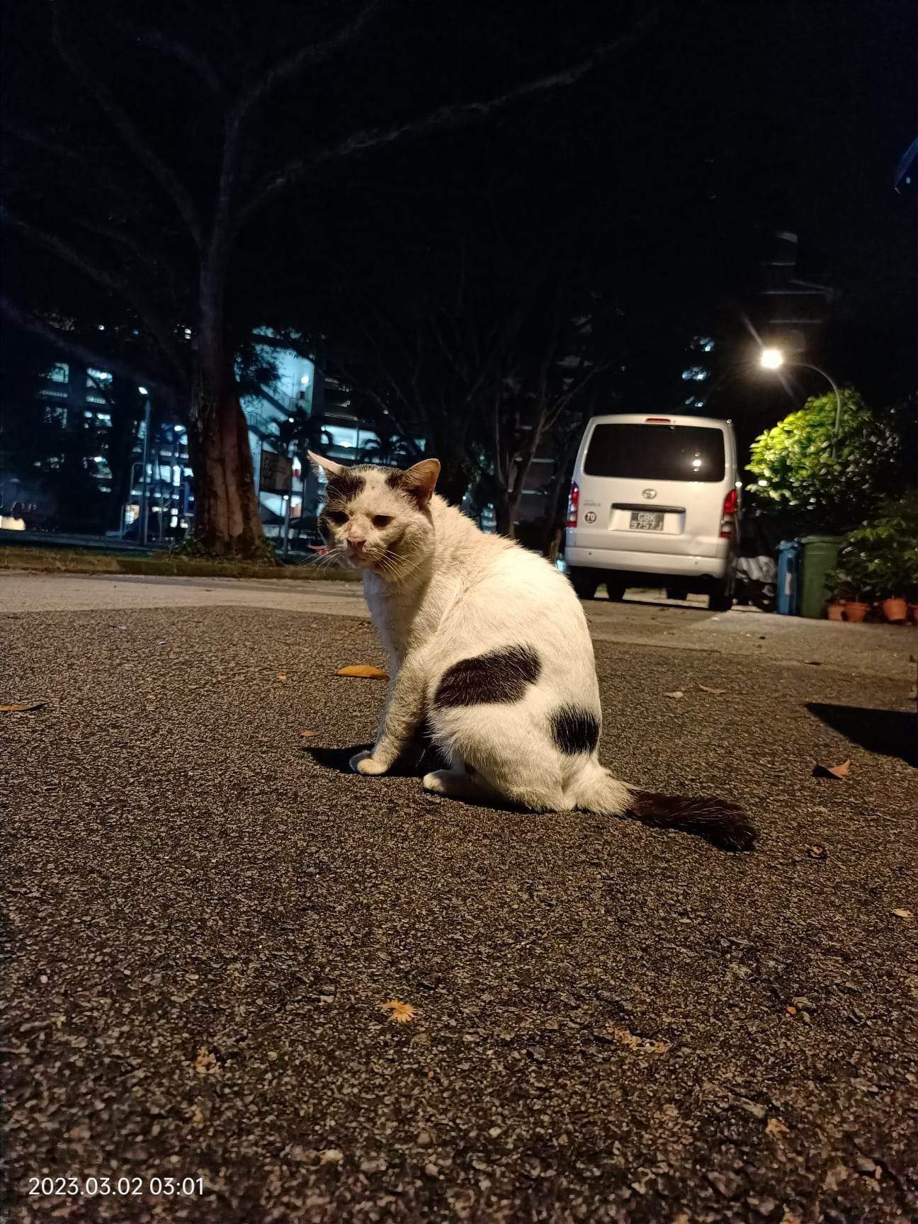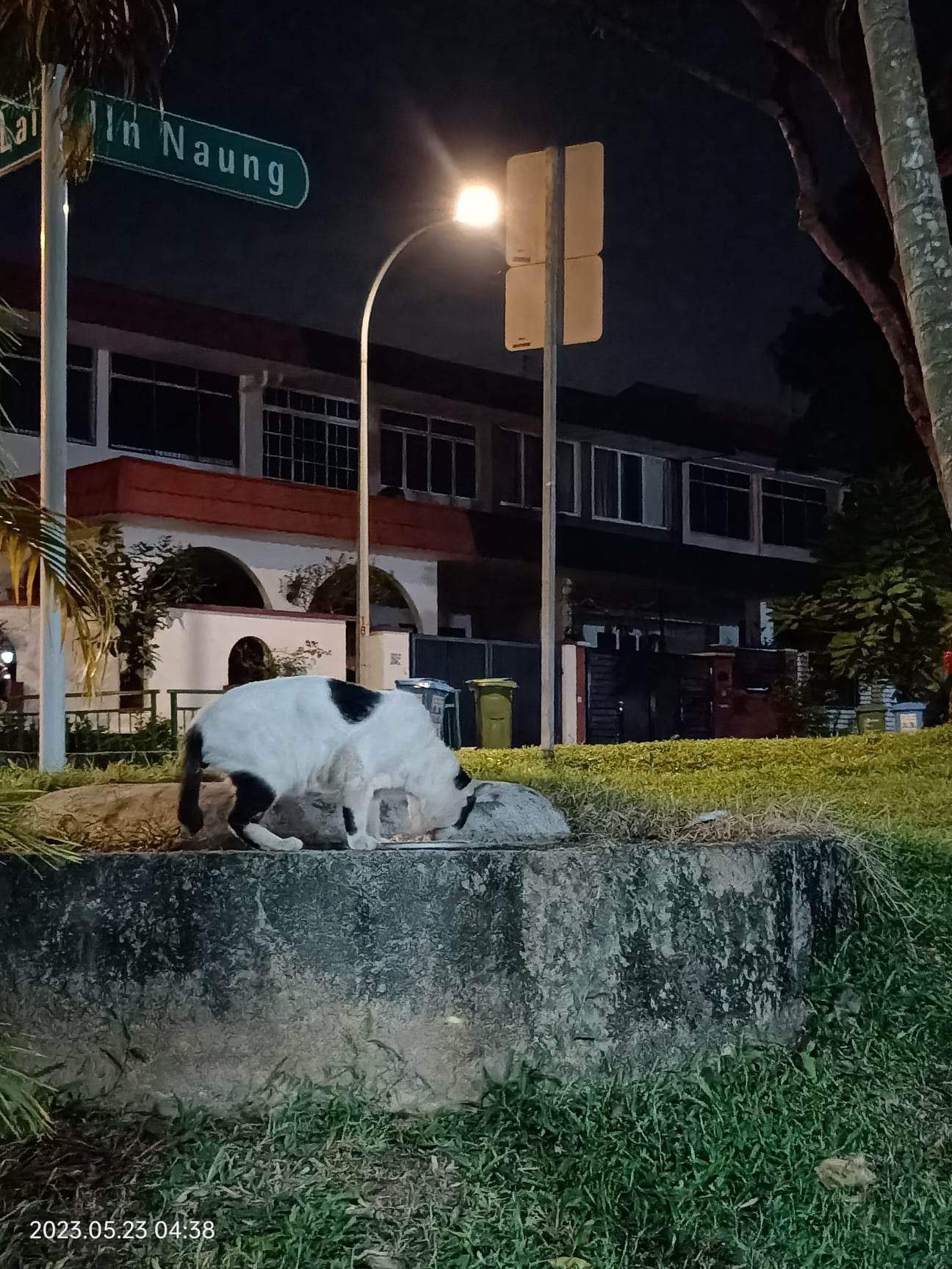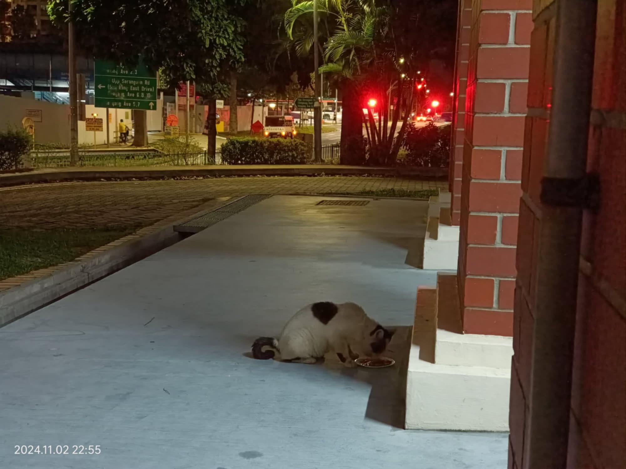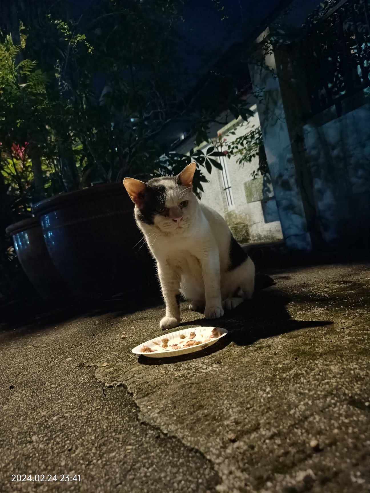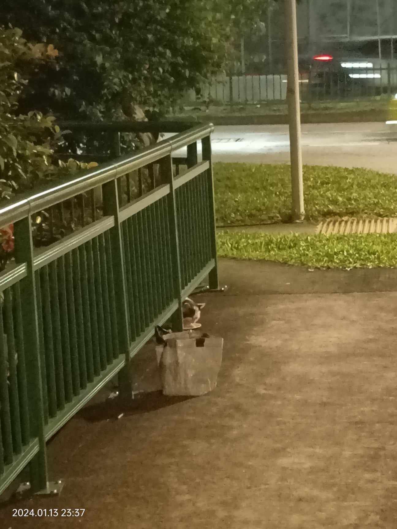 • 9pm saw xiao bai sitting outside 60a, so I give him a can of tuna and salmon