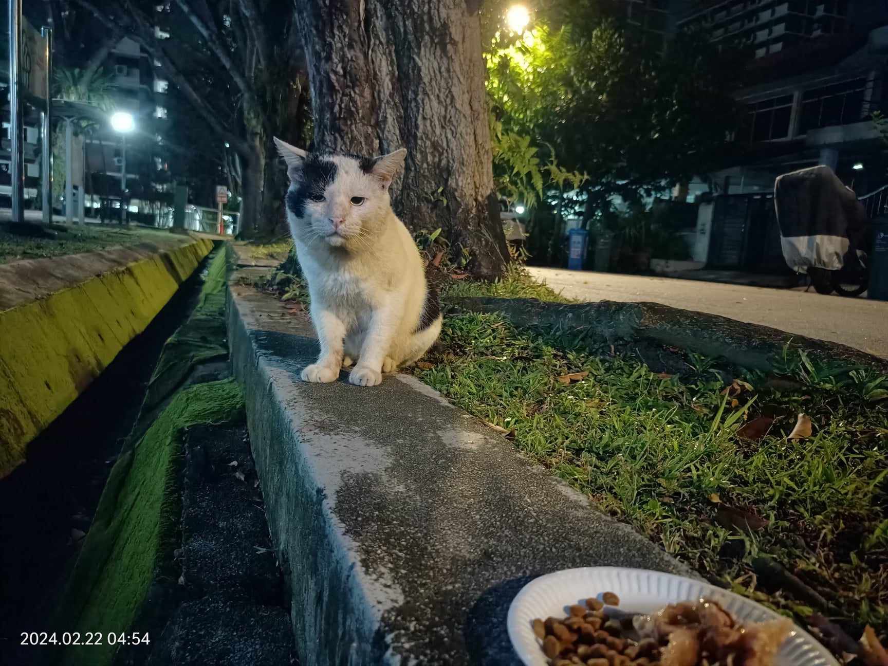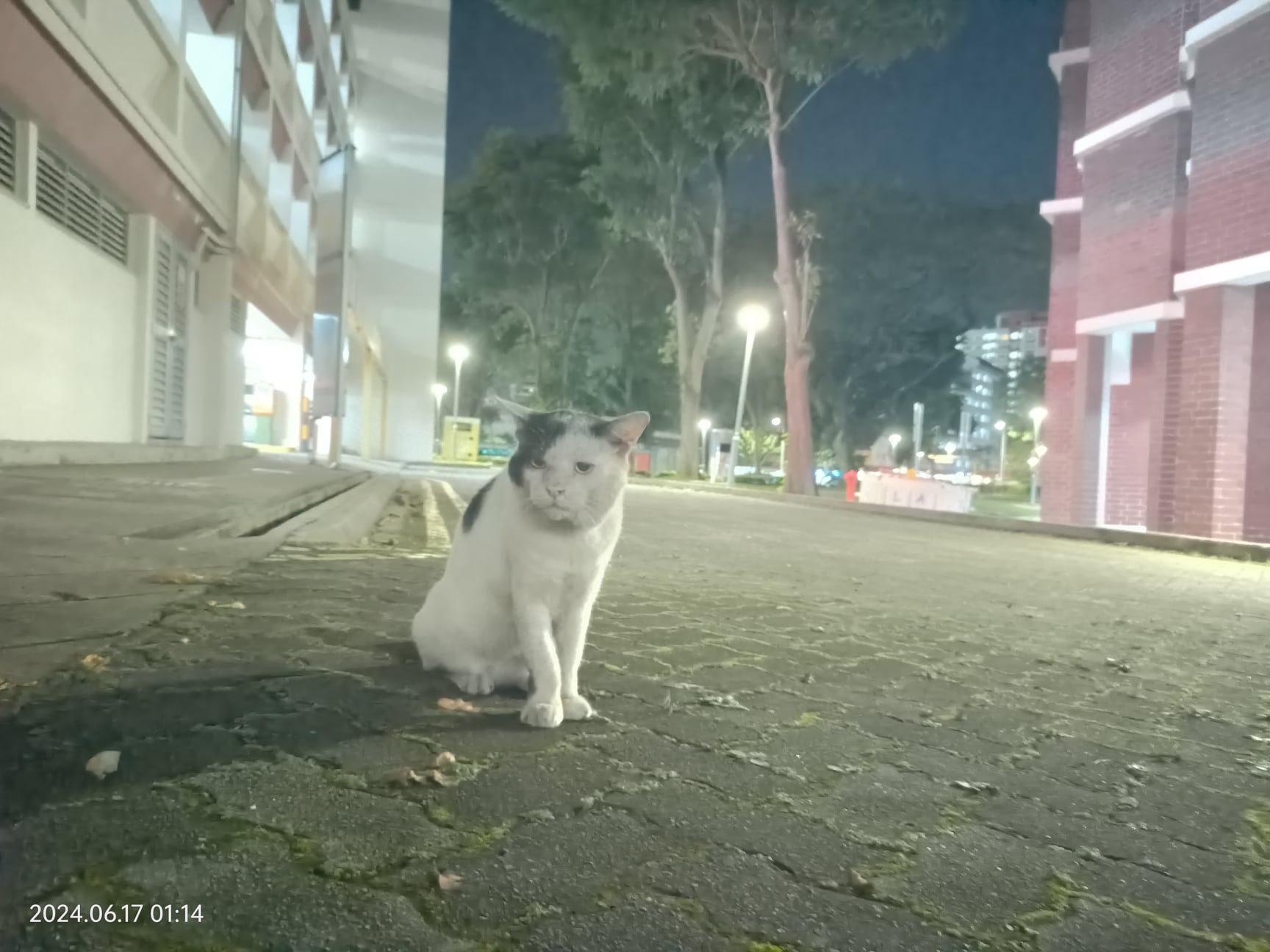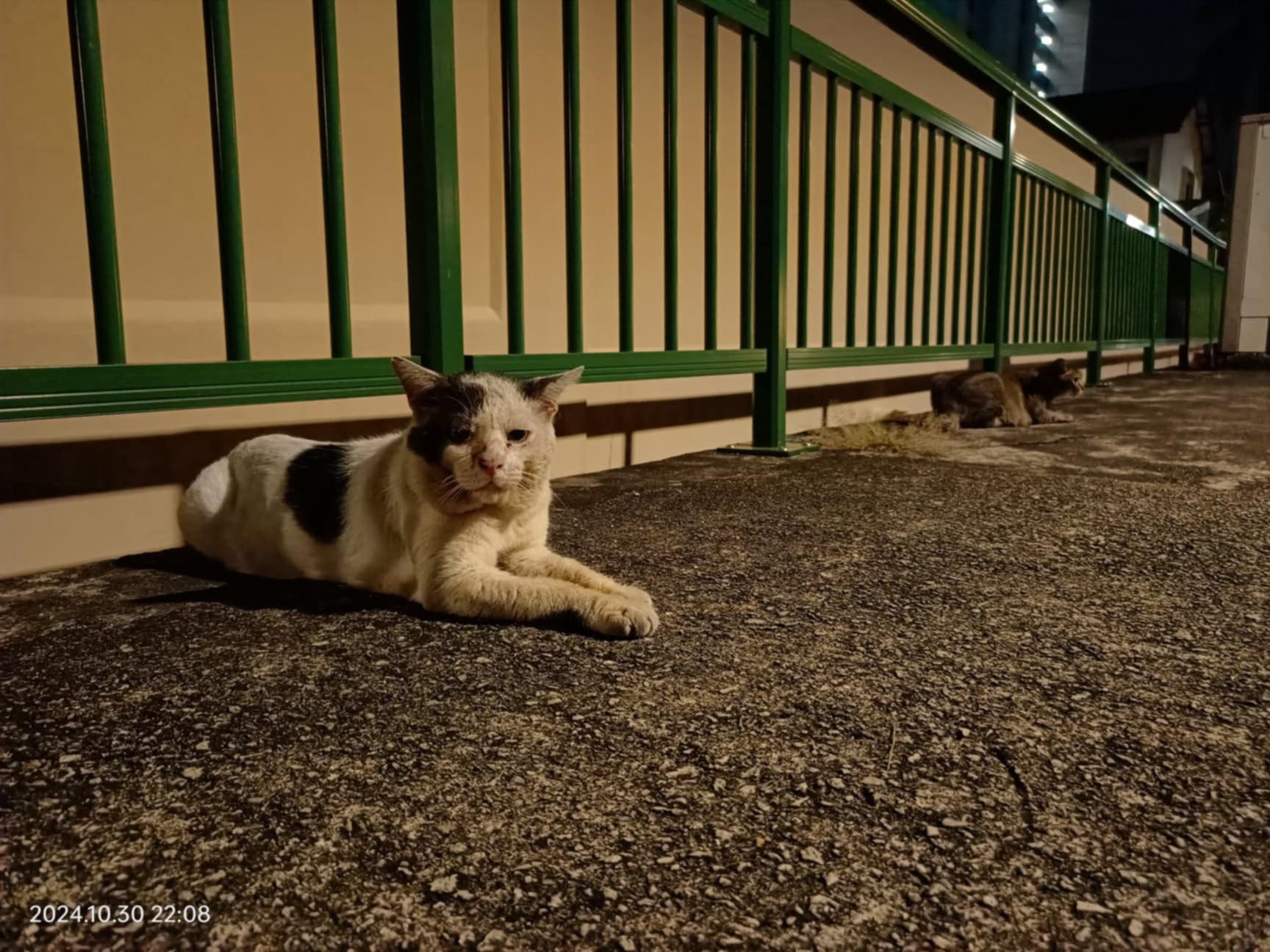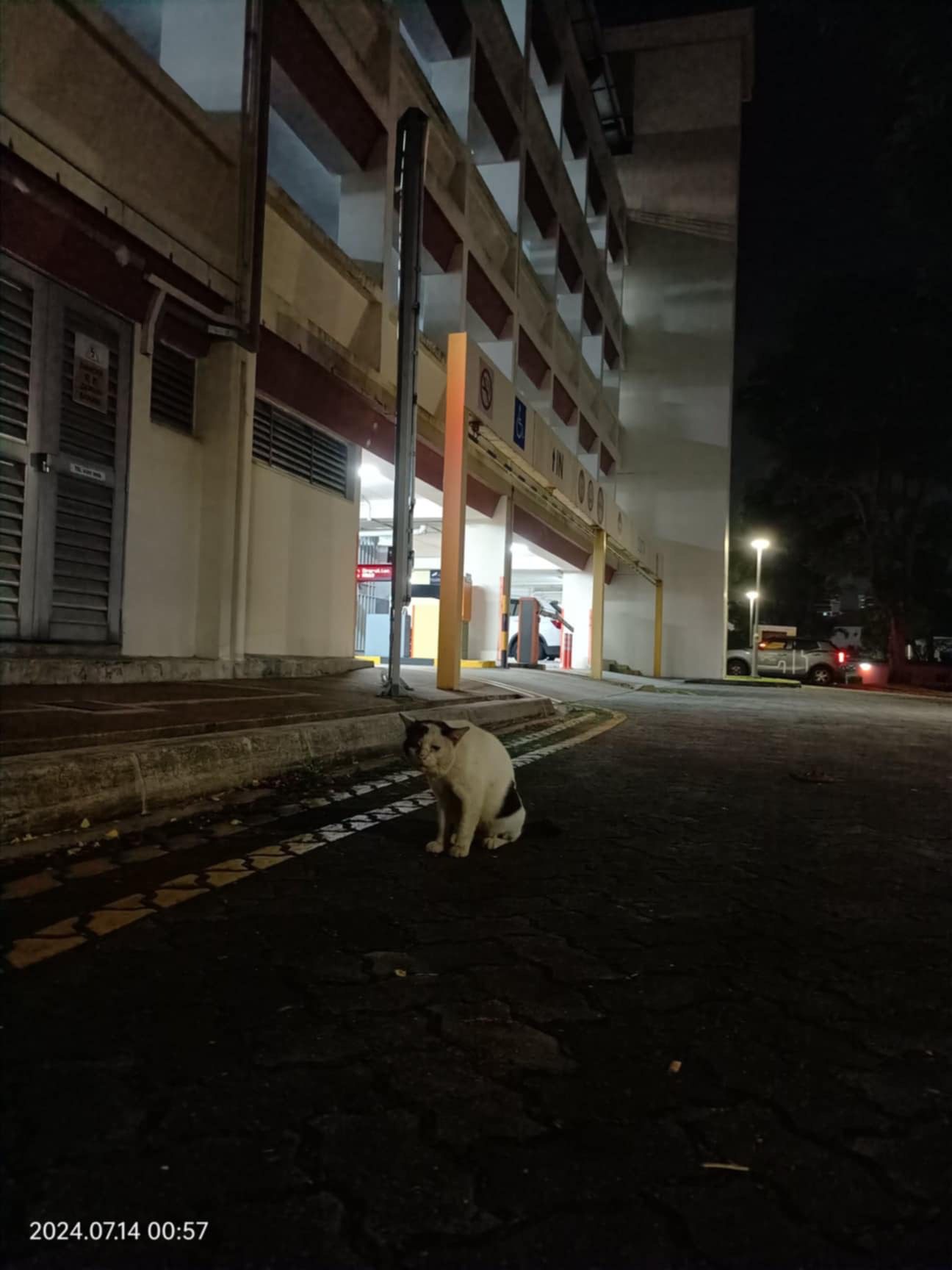 • 9pm saw xiao bai sitting outside 60a, so I give him a can of tuna and salmon