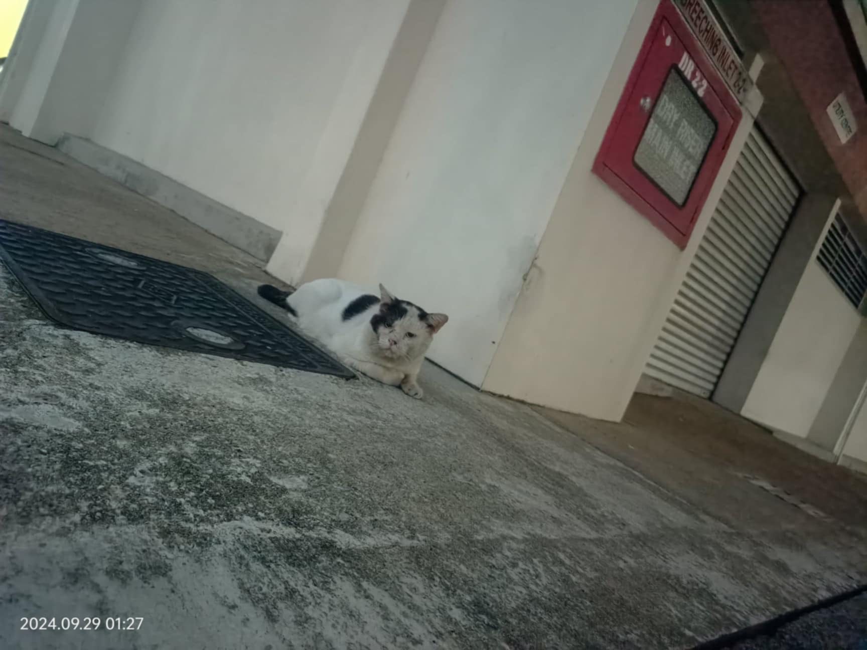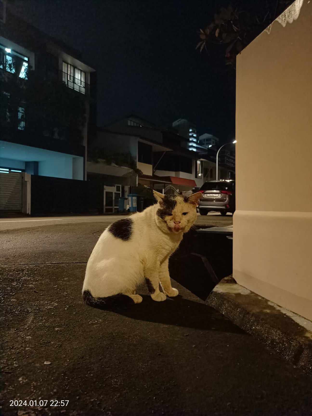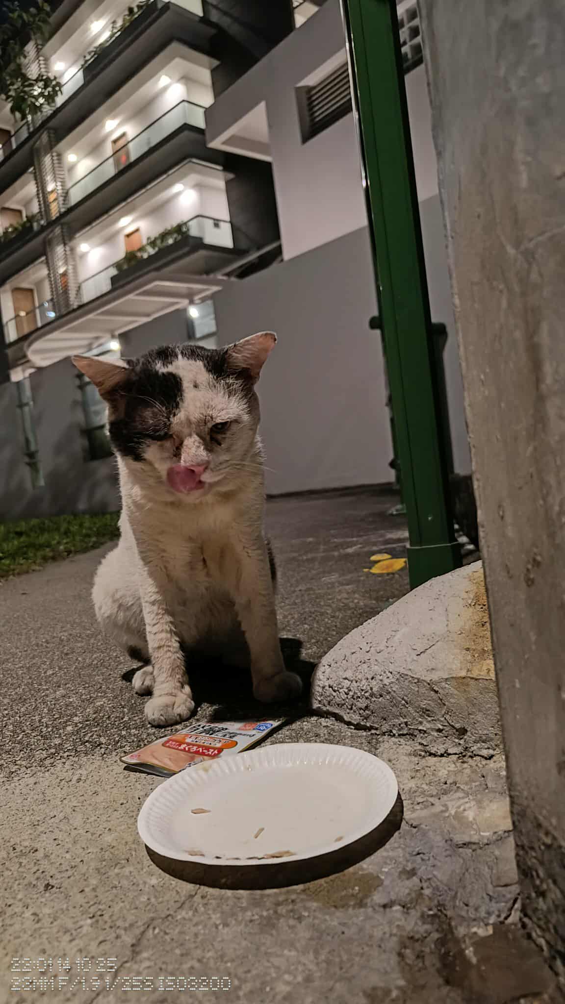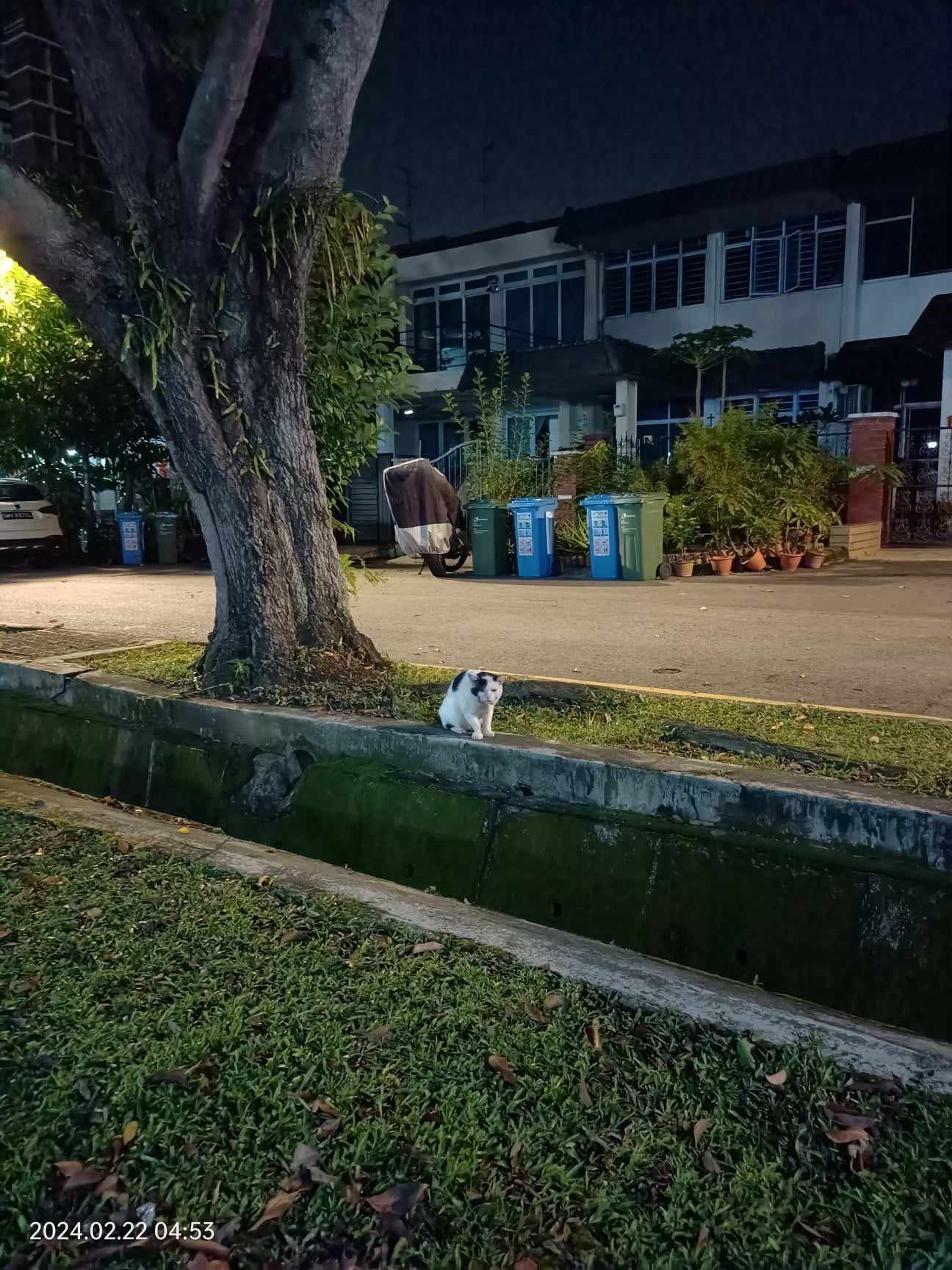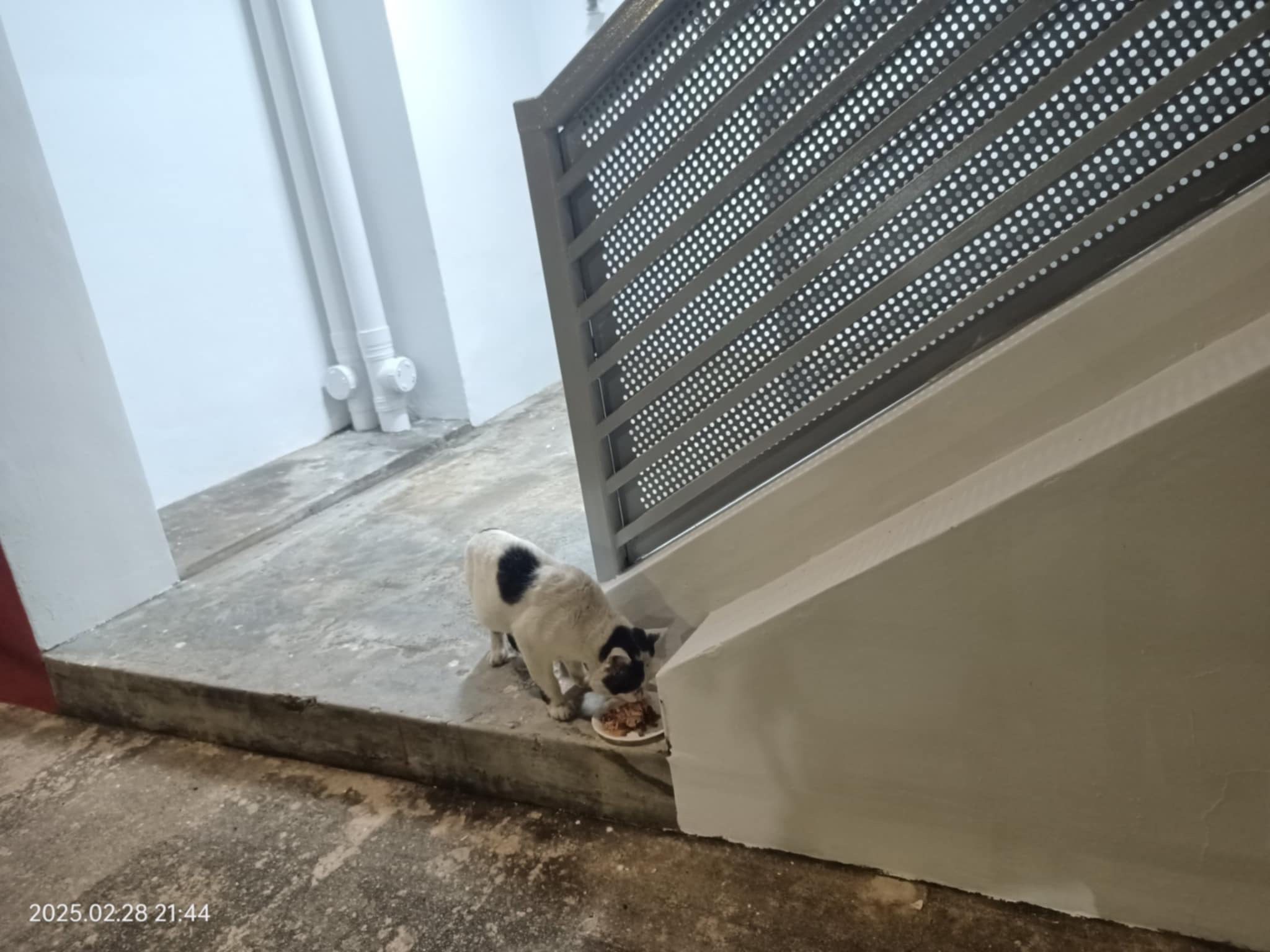 • 9pm saw xiao bai sitting outside 60a, so I give him a can of tuna and salmon