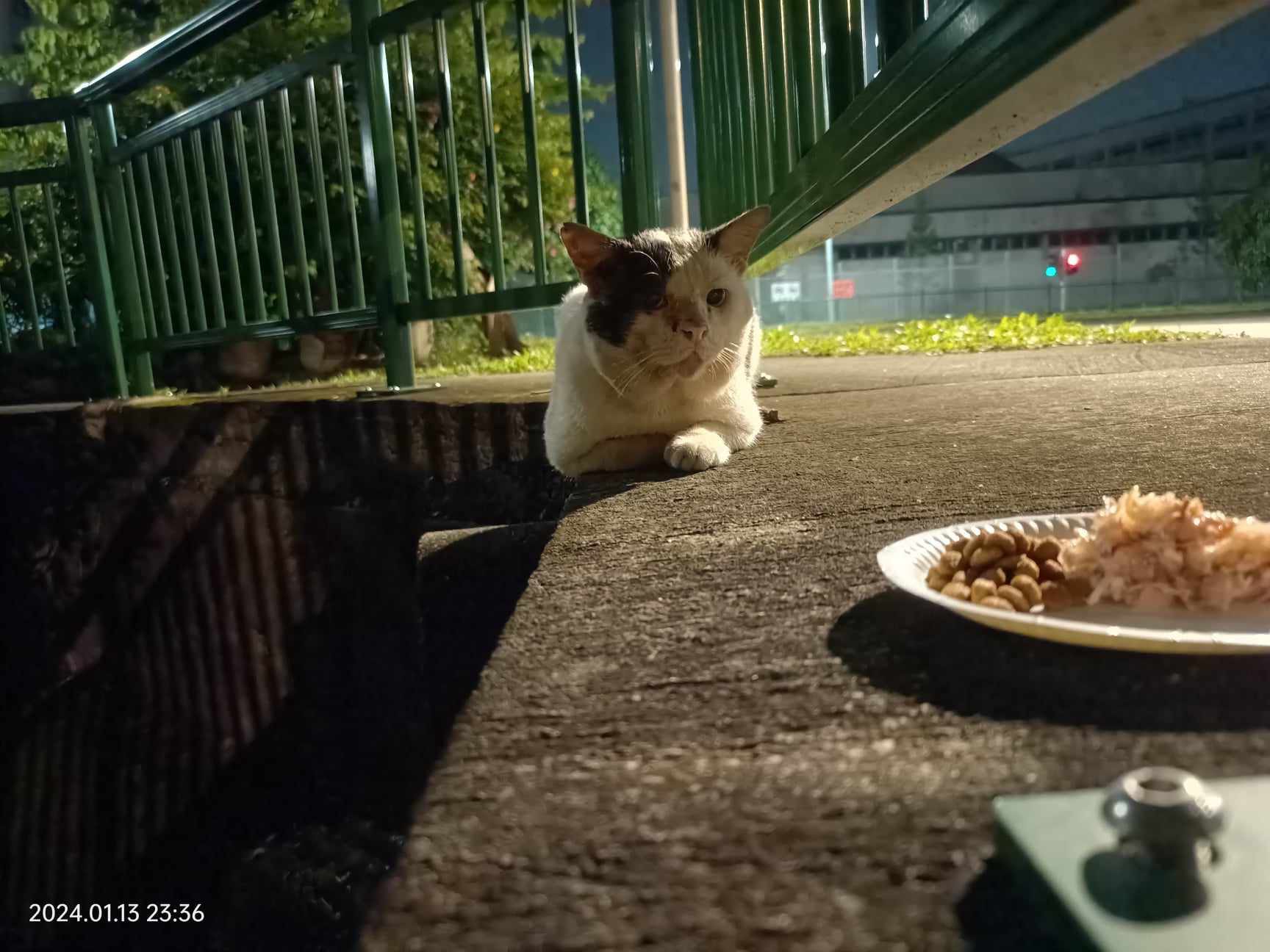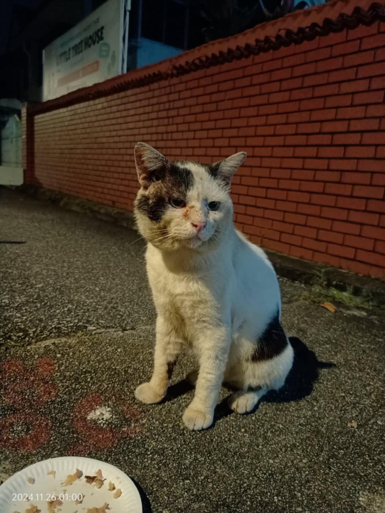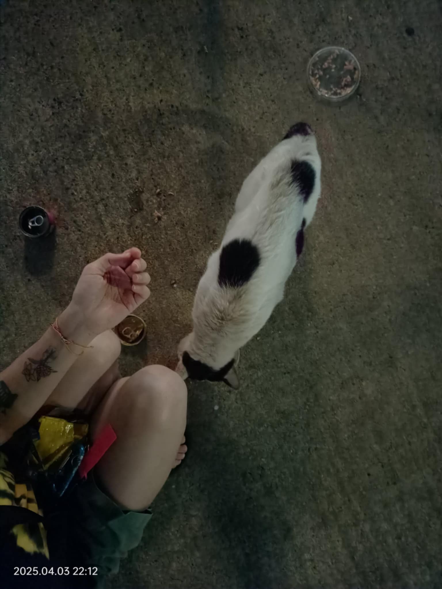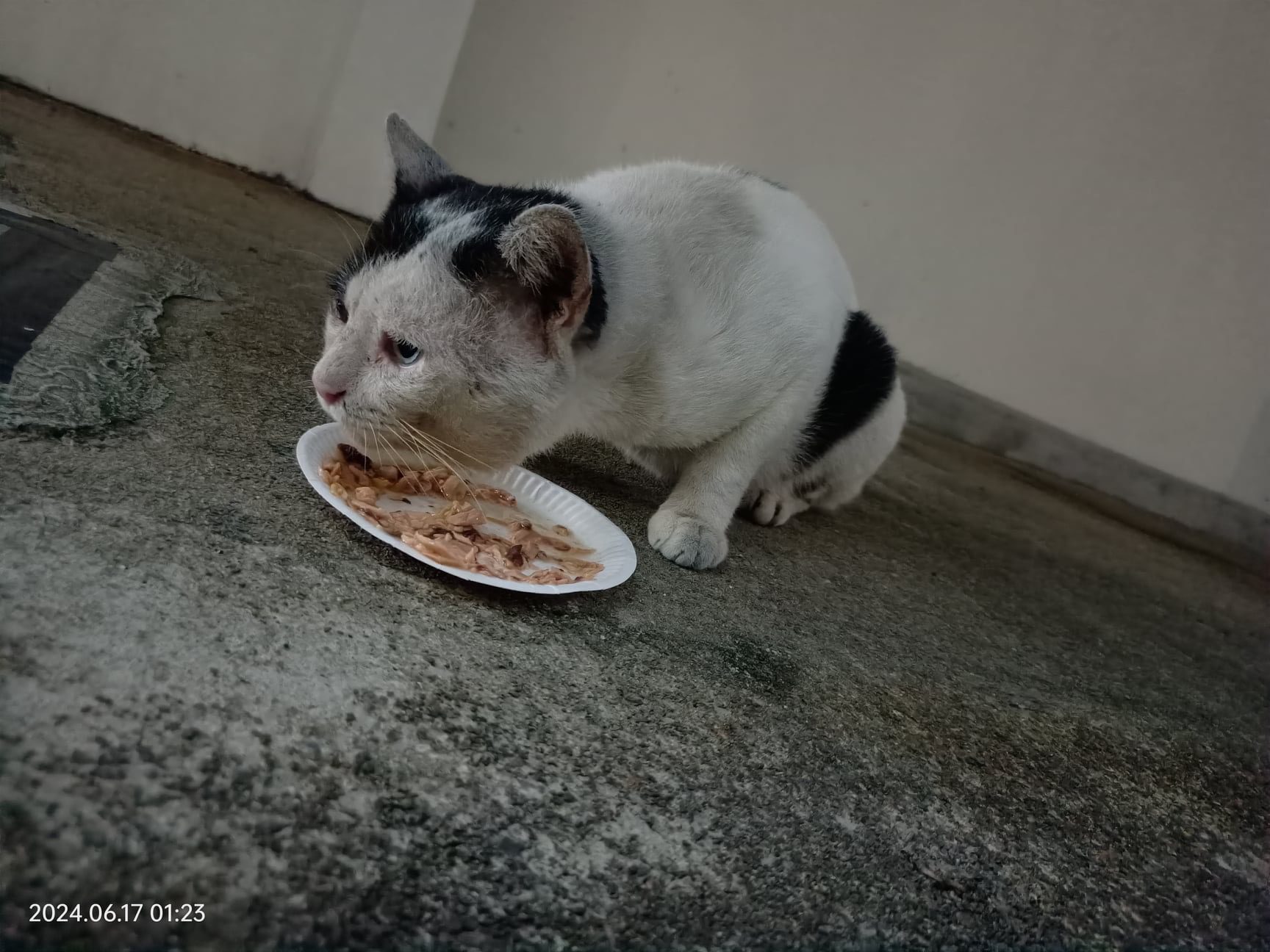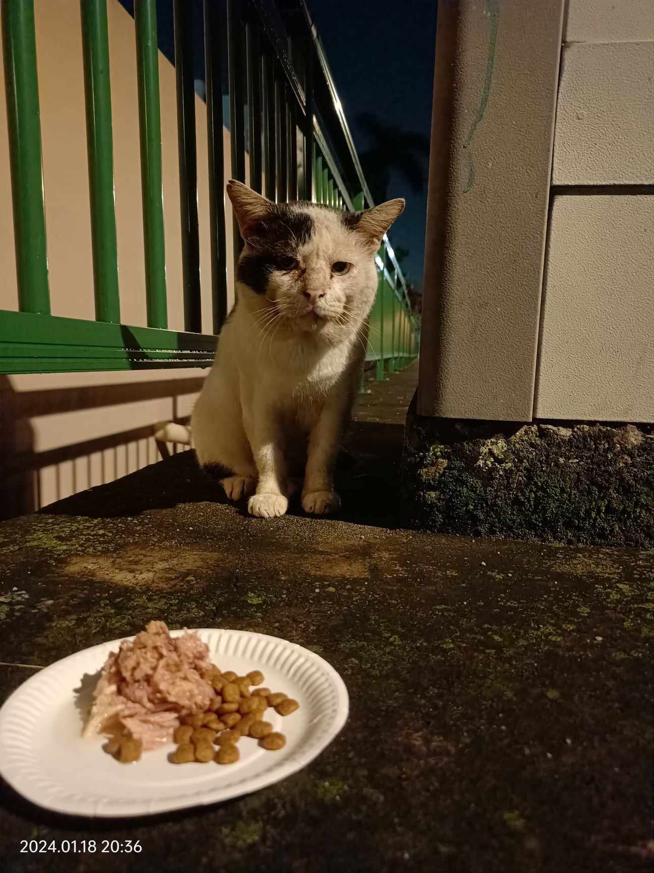 • 9pm saw xiao bai sitting outside 60a, so I give him a can of tuna and salmon