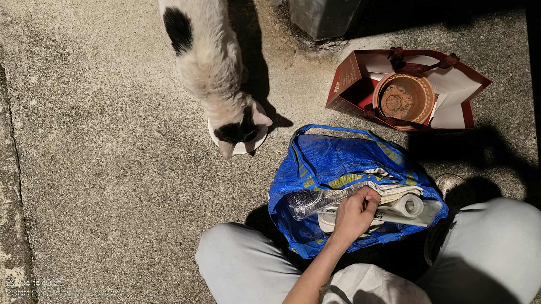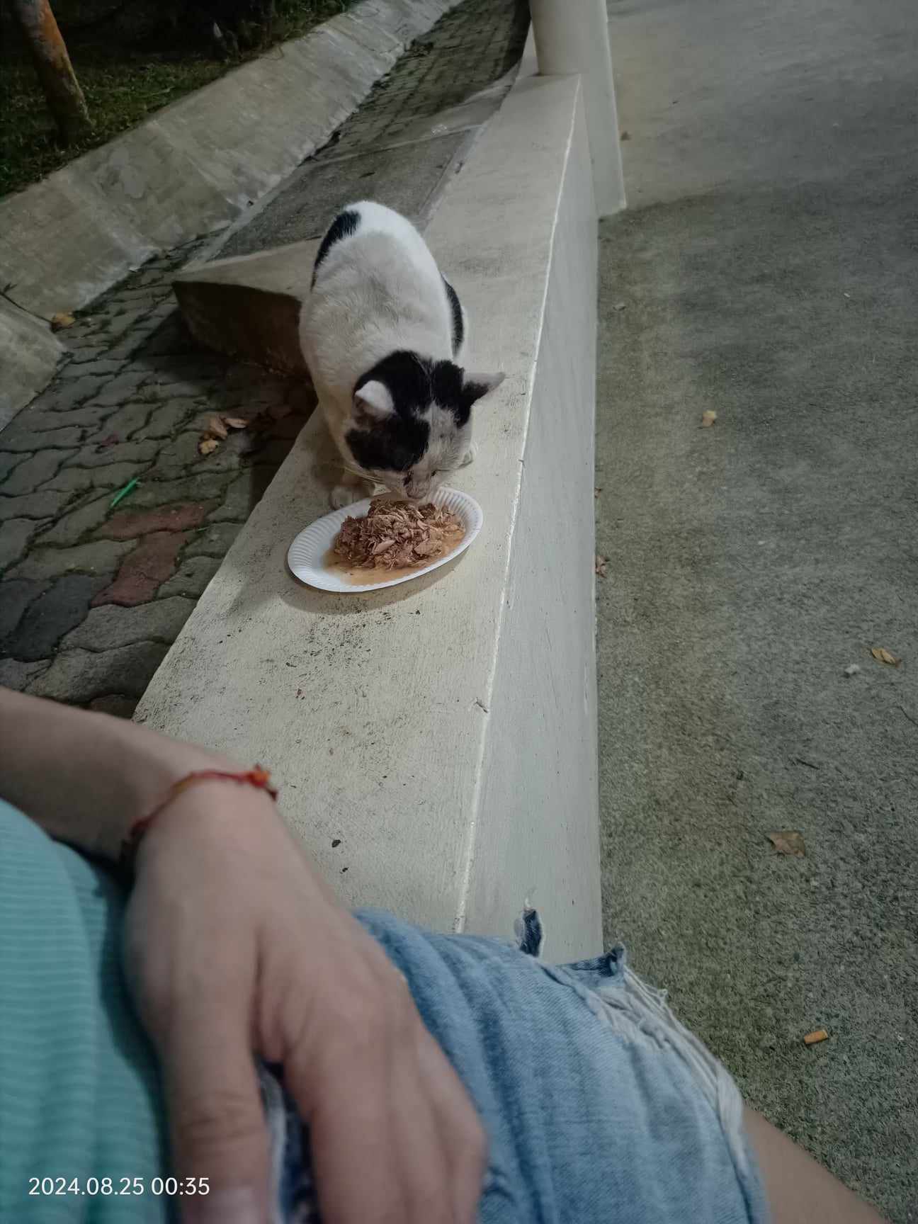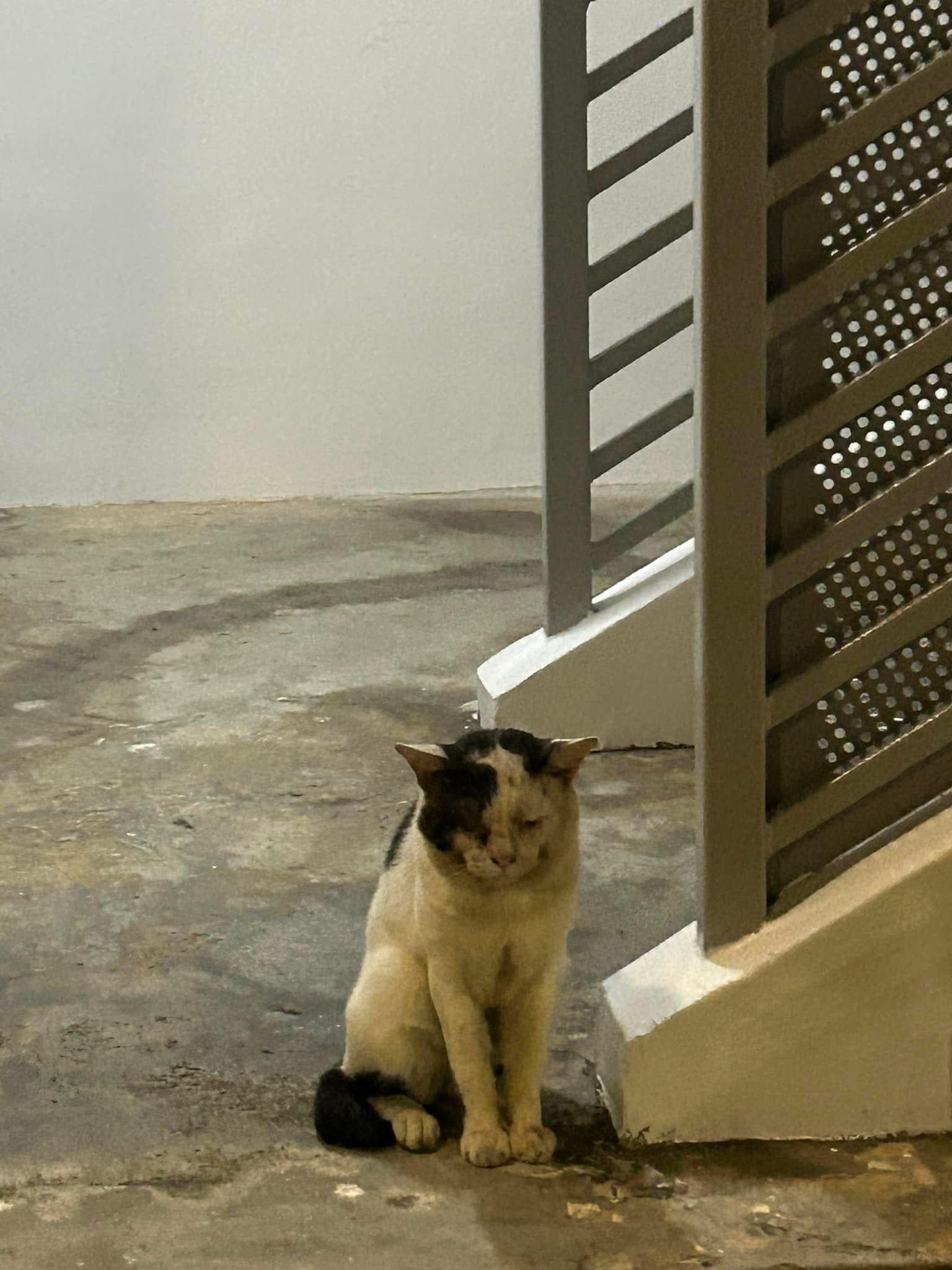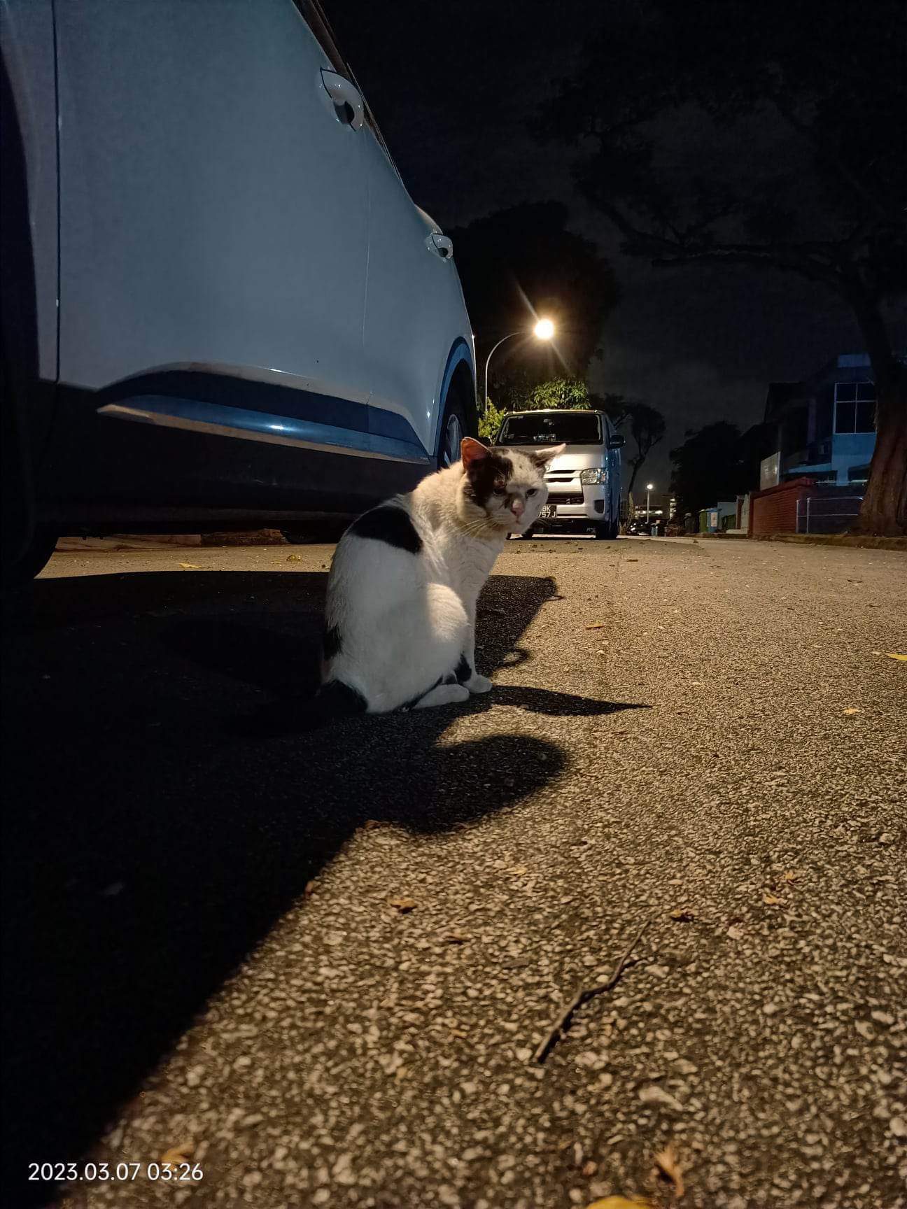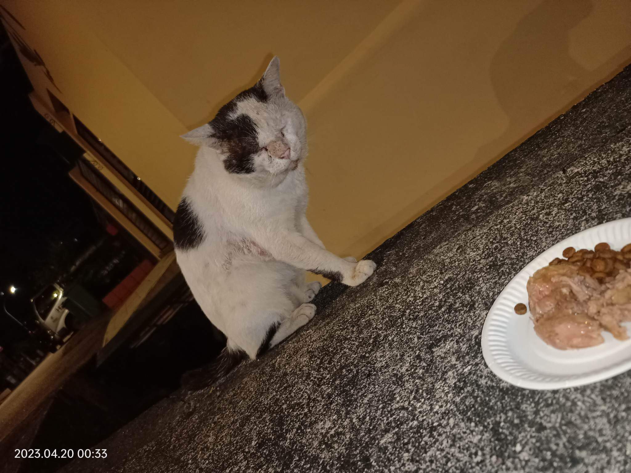• 9pm saw xiao bai sitting outside 60a, so I give him a can of tuna and salmon