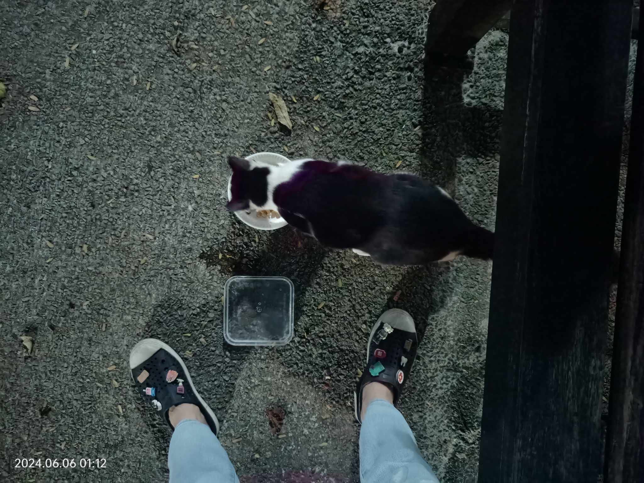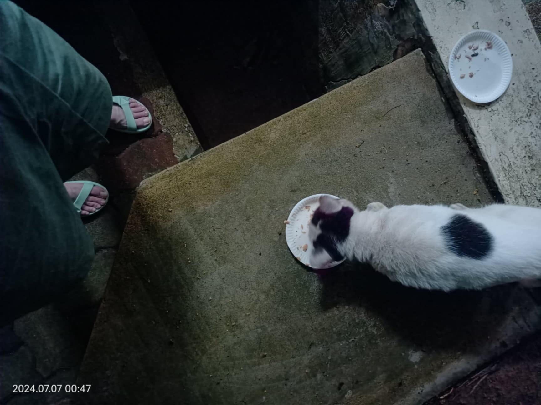 • 12.33am: didn’t come 4 days so 小气 siak Xiao bai – today saw him gave him food, now waiting for him fo finish b4 I can throw