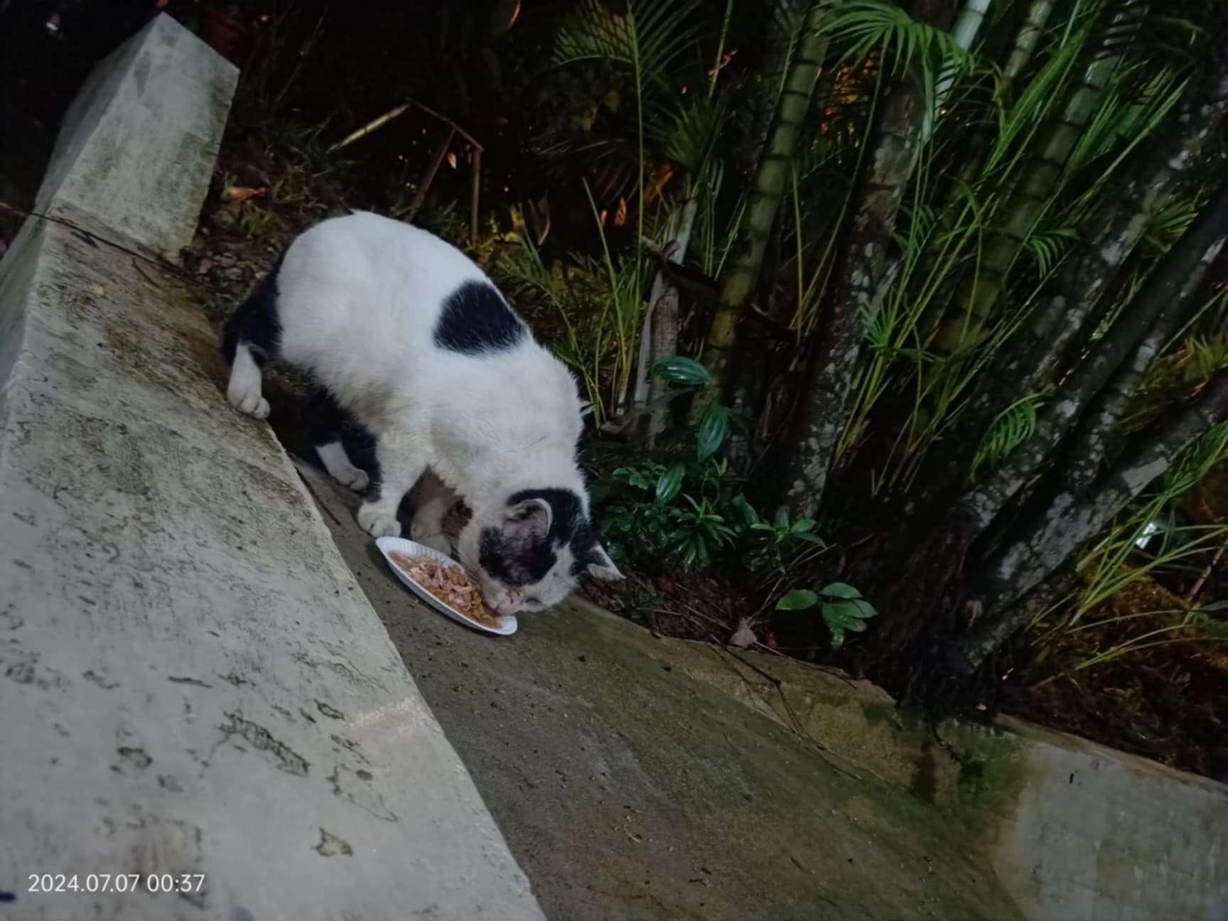 12-2pm: went back to old hood to call for him, can’t find him at all. Xiao Don aka momo is at his usual hide out. 7pm+ got pple comment on my posting that xiao Bai appear 🙂 I only get to know from LS that xb enter his house to steal food the day b4. He is still safe n sound