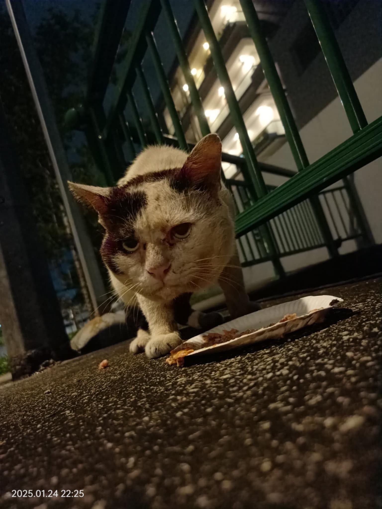 11.22pm: lf:”His face covered with dirt. He is eating well and polished two cans” – Always think that last time if he was catch indoor, maybe he won’t live so long