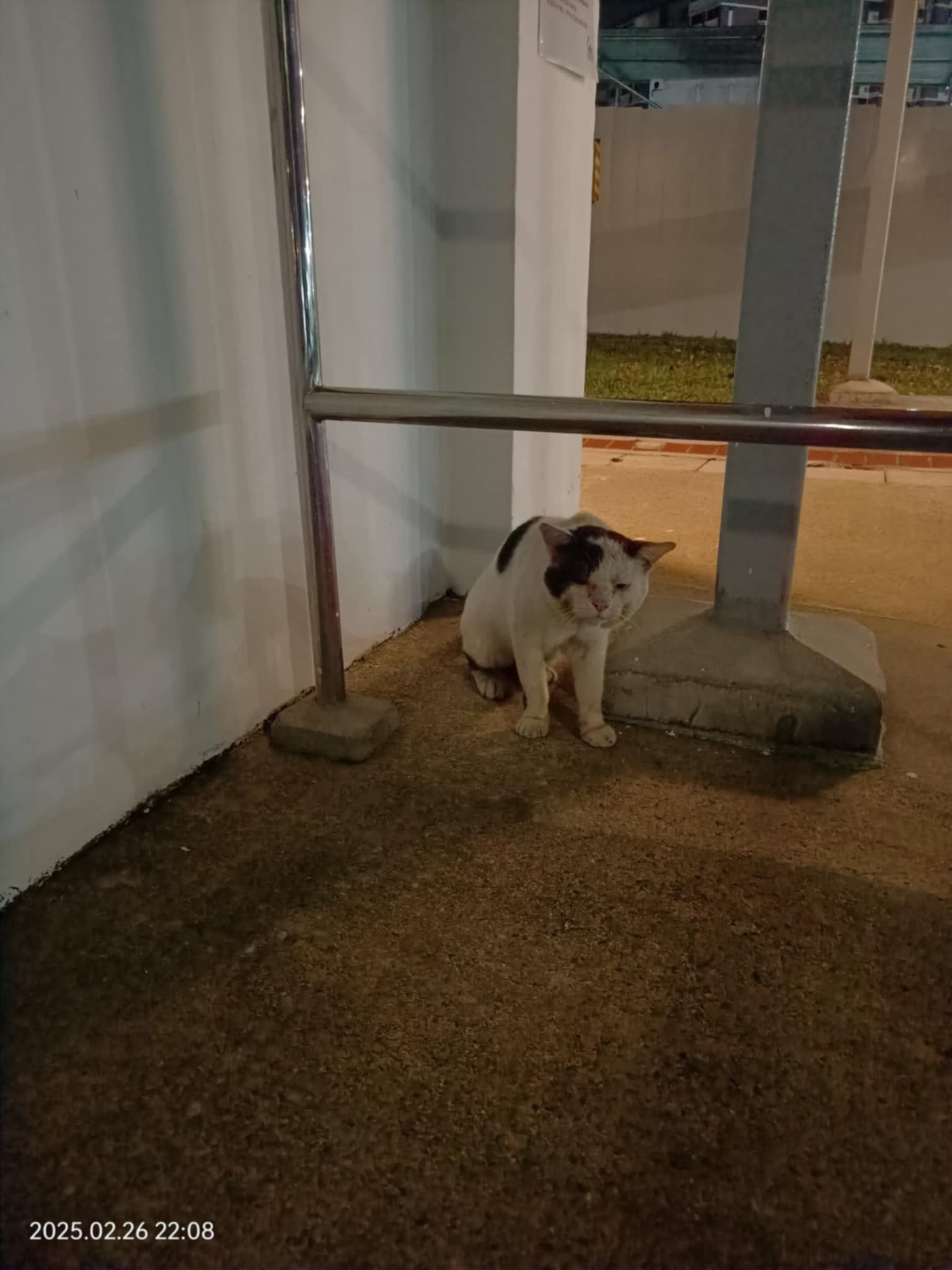 • Xiao Bai came late and damn it I notice his left hind limping … observe tmr n the day after n he gonna be coming into 猫房 Liao … headache