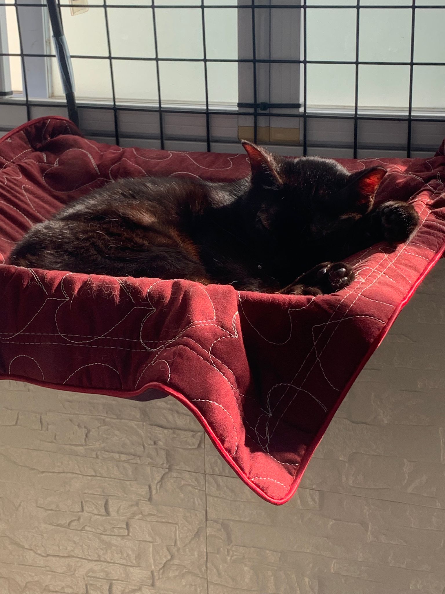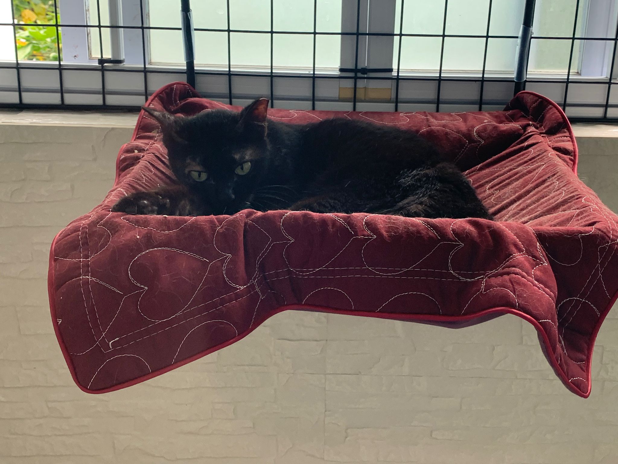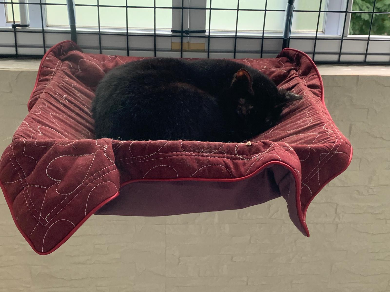 Status: still serving the higher deck, like hanging bed. grumpy old cat.