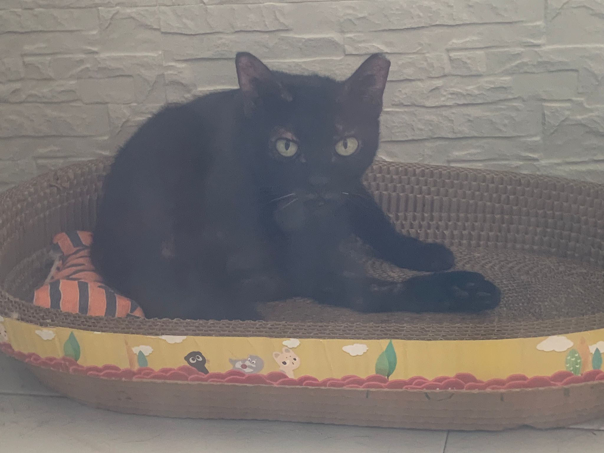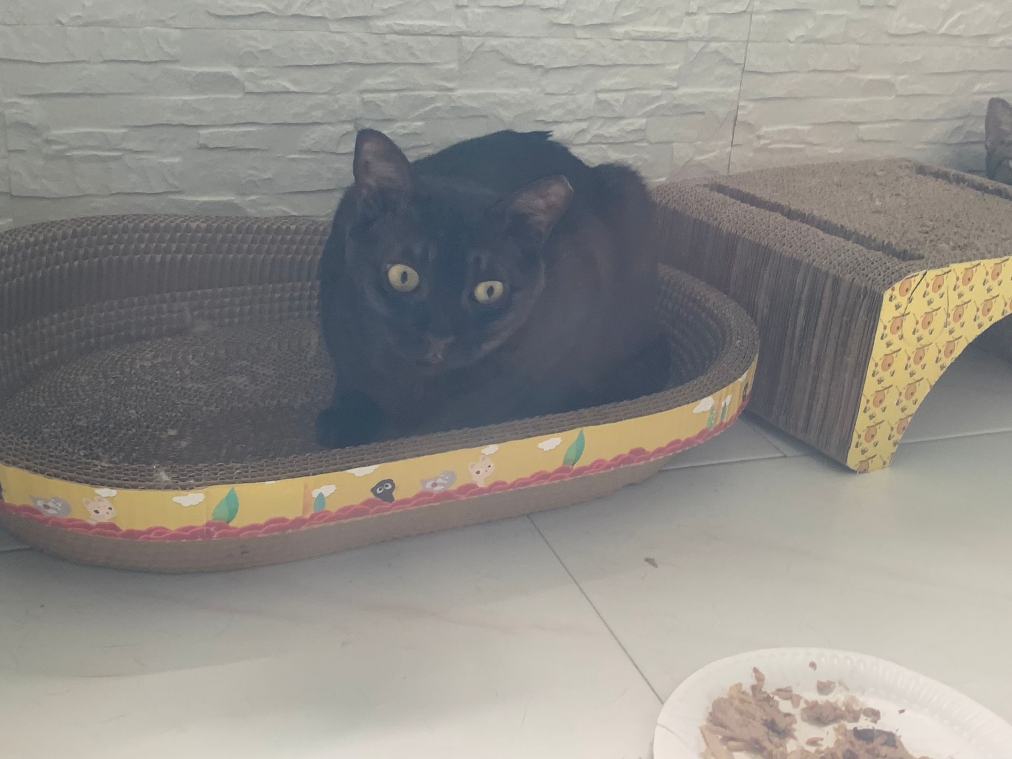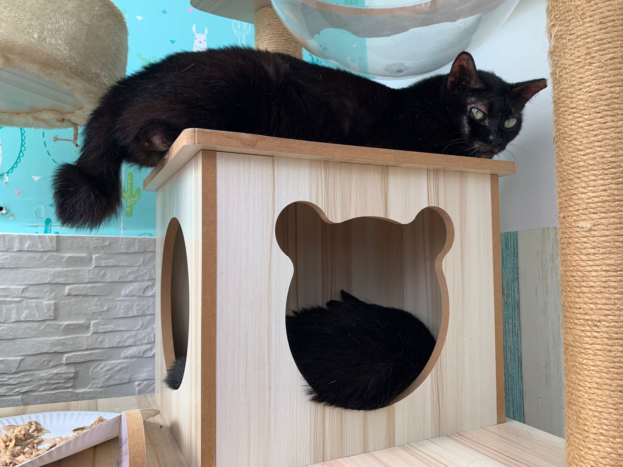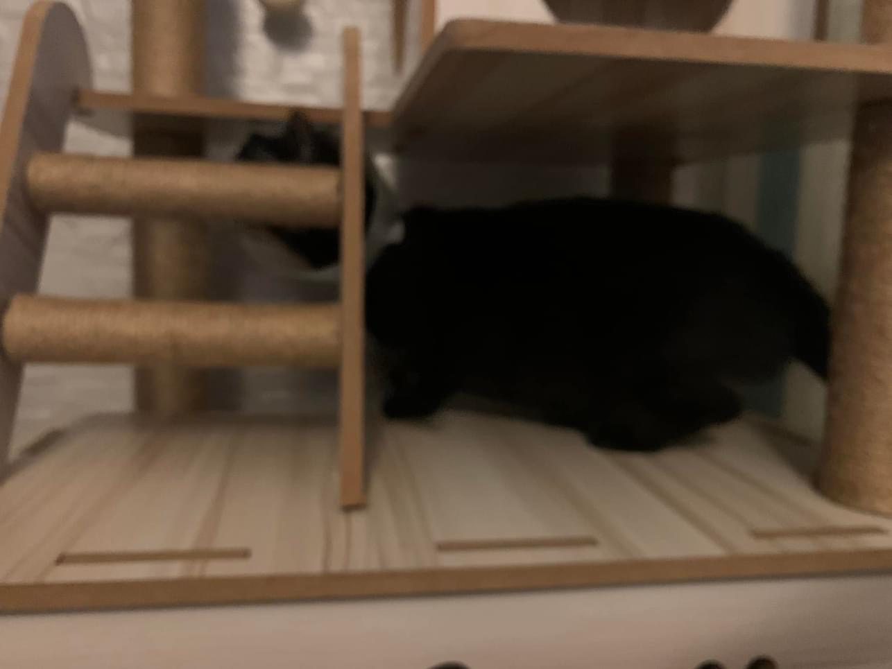 10.50am: cleaning day. Their room condo dirty cos of the stains made by mainly Blackie. They like totoro comfy room so much that they don’t want to move to kitchen, so big can roam they don’t want move. Hide behind the food cartons, generally like to growl. Will show displeasure.