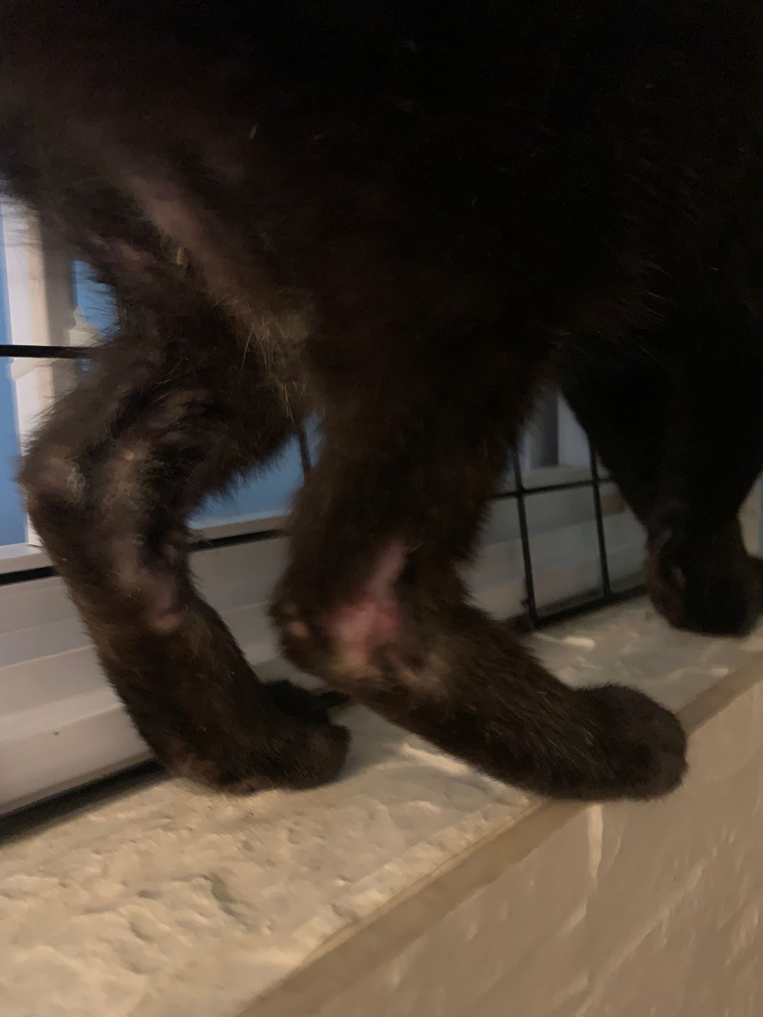 And her right hind leg got more issue loh. Raw spot. Tmr day time I check that area more.