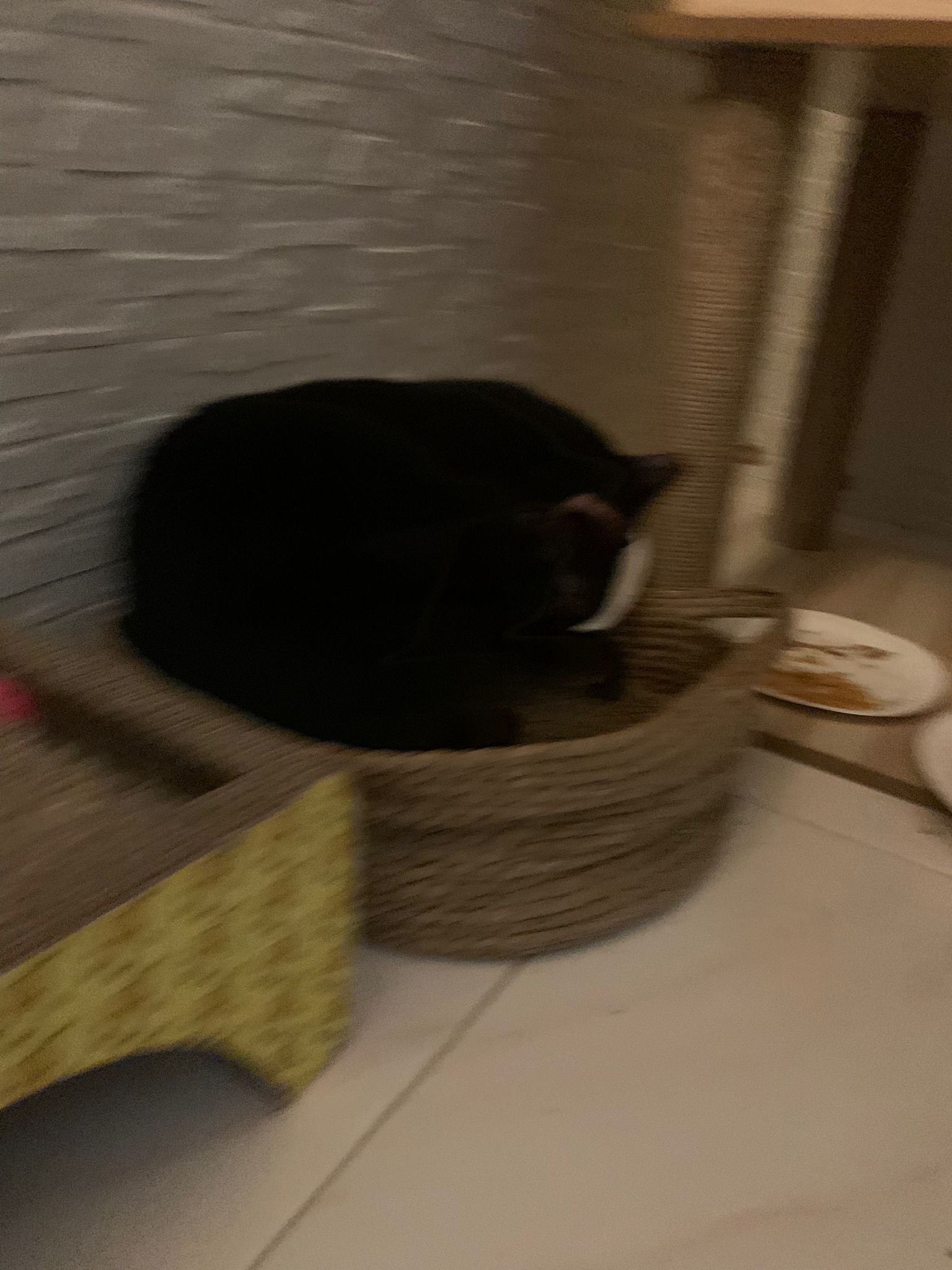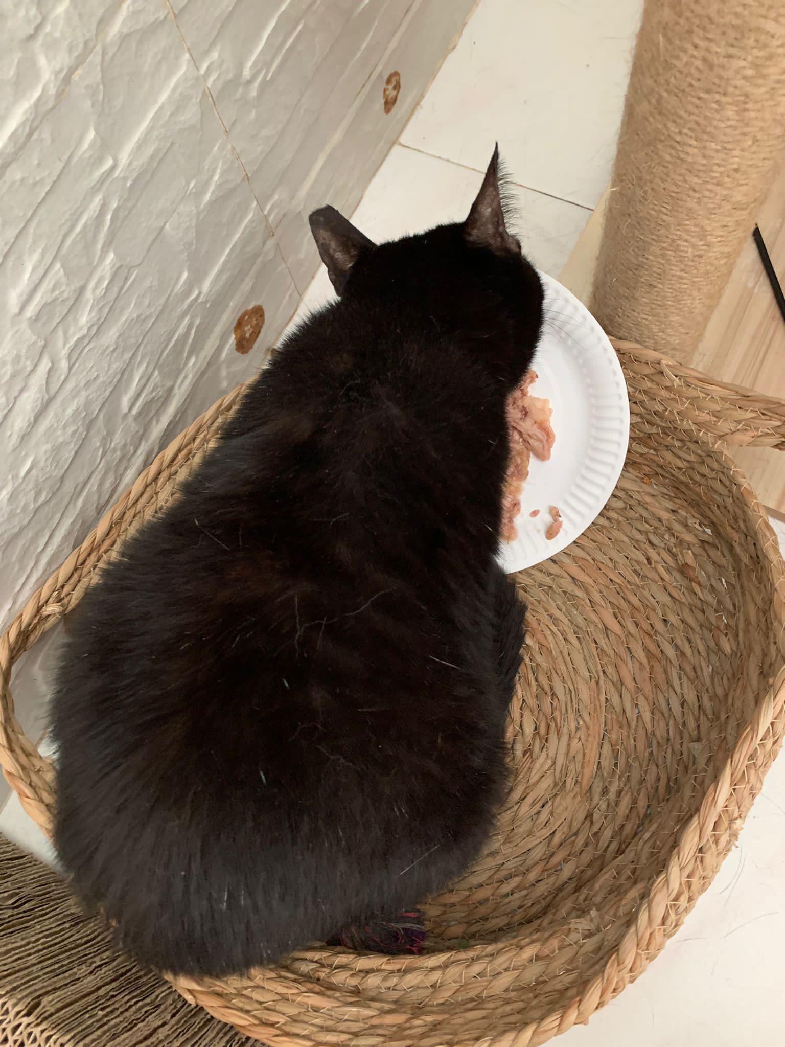 9pm+: hanging out w my floor managers. She is in the basket. Serve tuna w chicken. Everyone eat tgt. and told them Tmr we weigh n see if they lose or gain weight. By right will be lose cos they mainly eat wet food diet here. Didn’t touch much of kibble other than Blackie