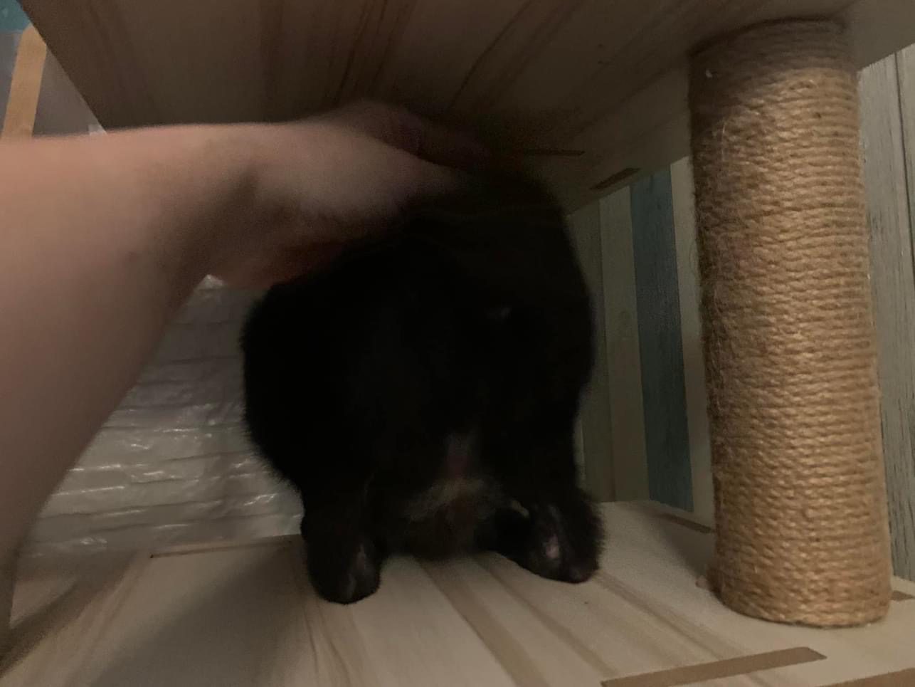 A v small sized frame black cat that lll get to know from 17-24 Dec due to home minor Reno. no other info given, unknown gender. No fiv felv tested. So default my record all will be male cats from this family. But she looks like a female. V old and cute small like Bessie. her nails super long, think they might have issue w ingrowth nails. Their mama is a 80yrs old feeder