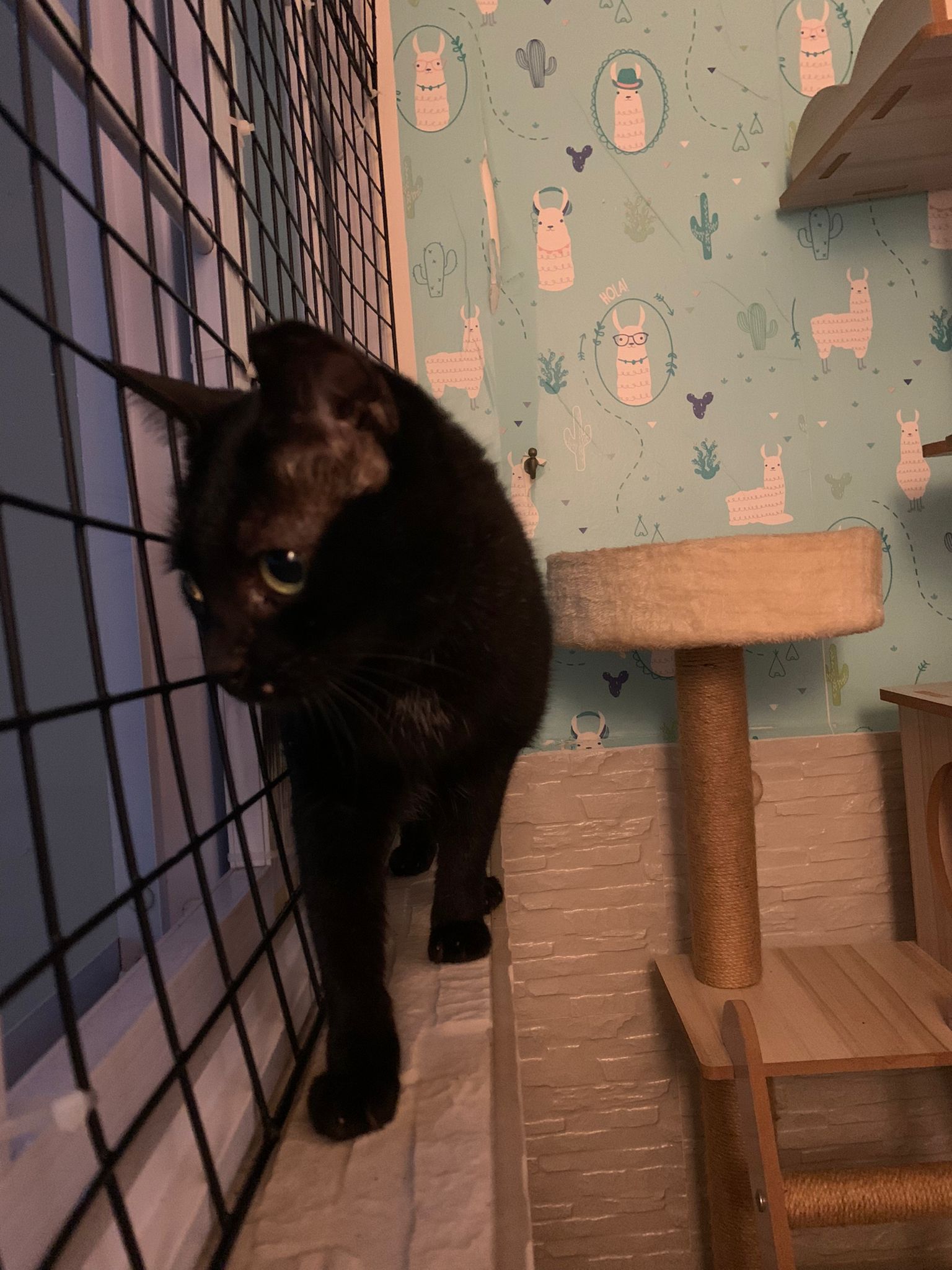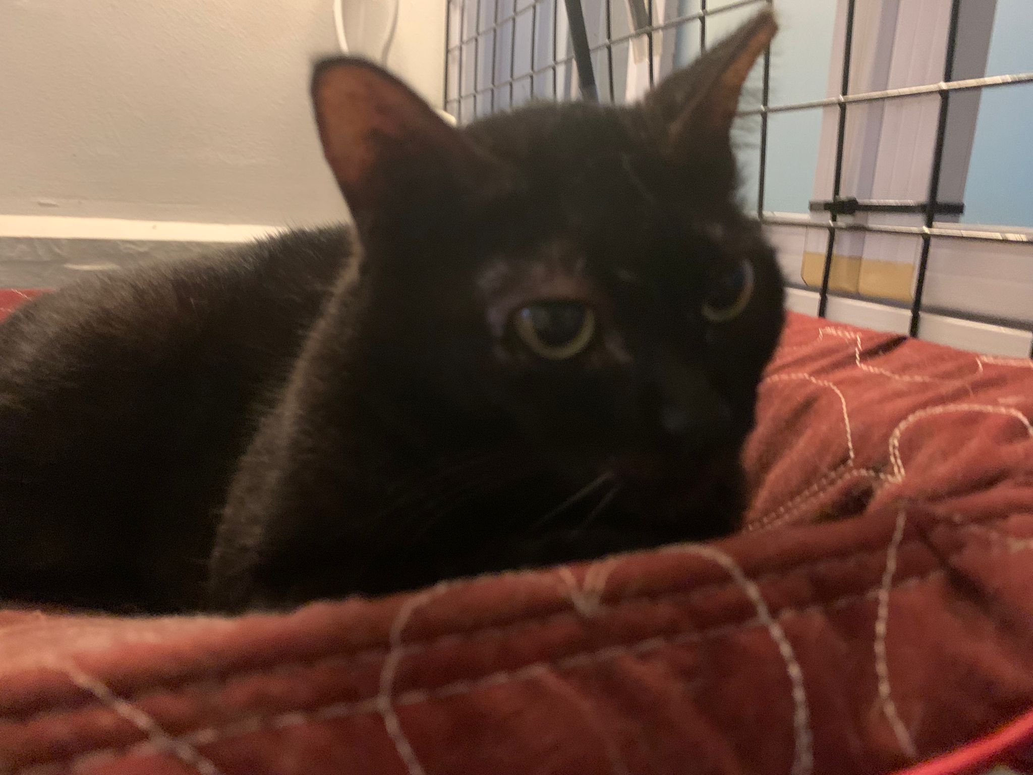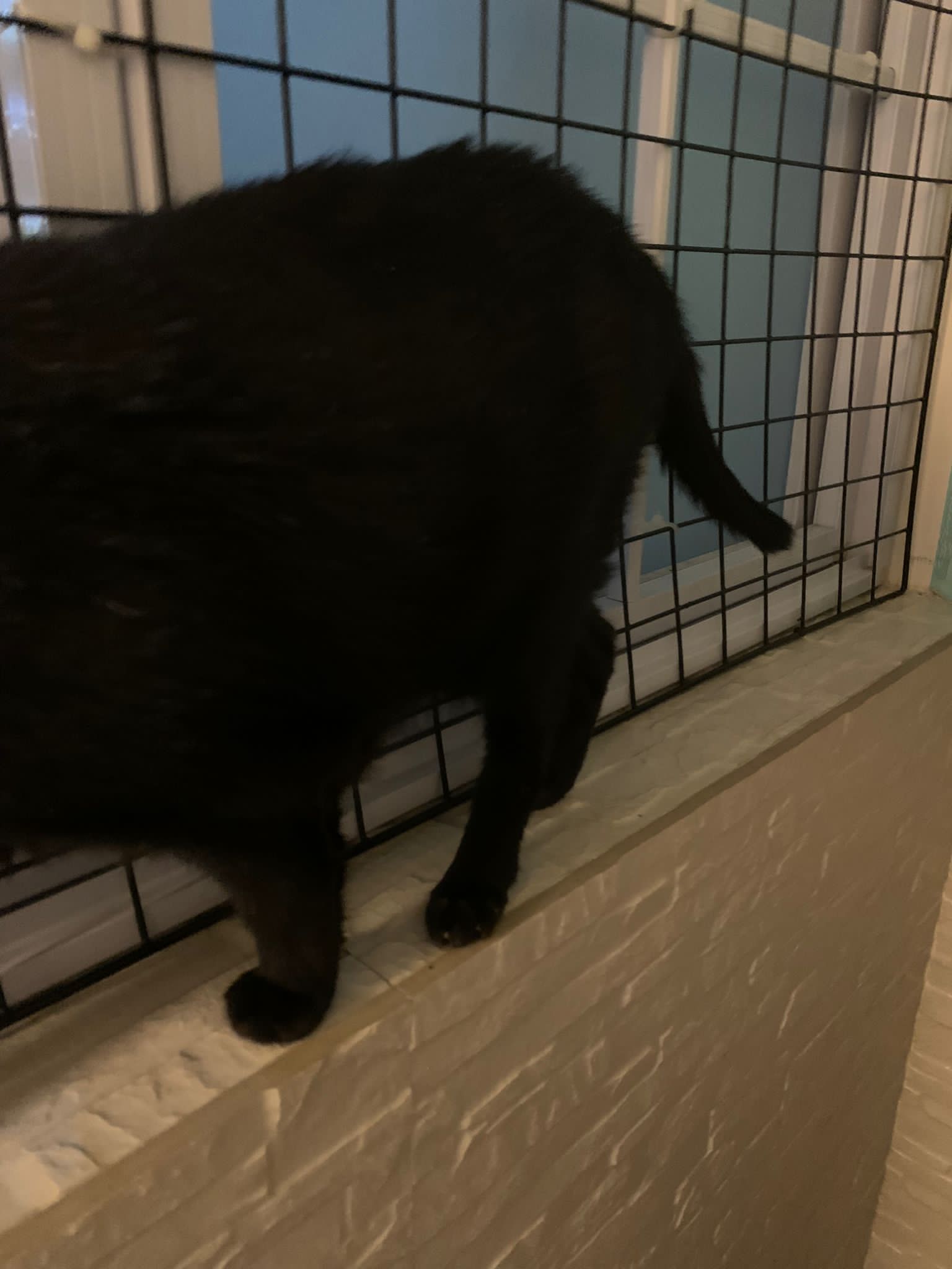 I put Jackie Chan in a playpen outside their room, keep meowing, and xiao Hei is v curious about him