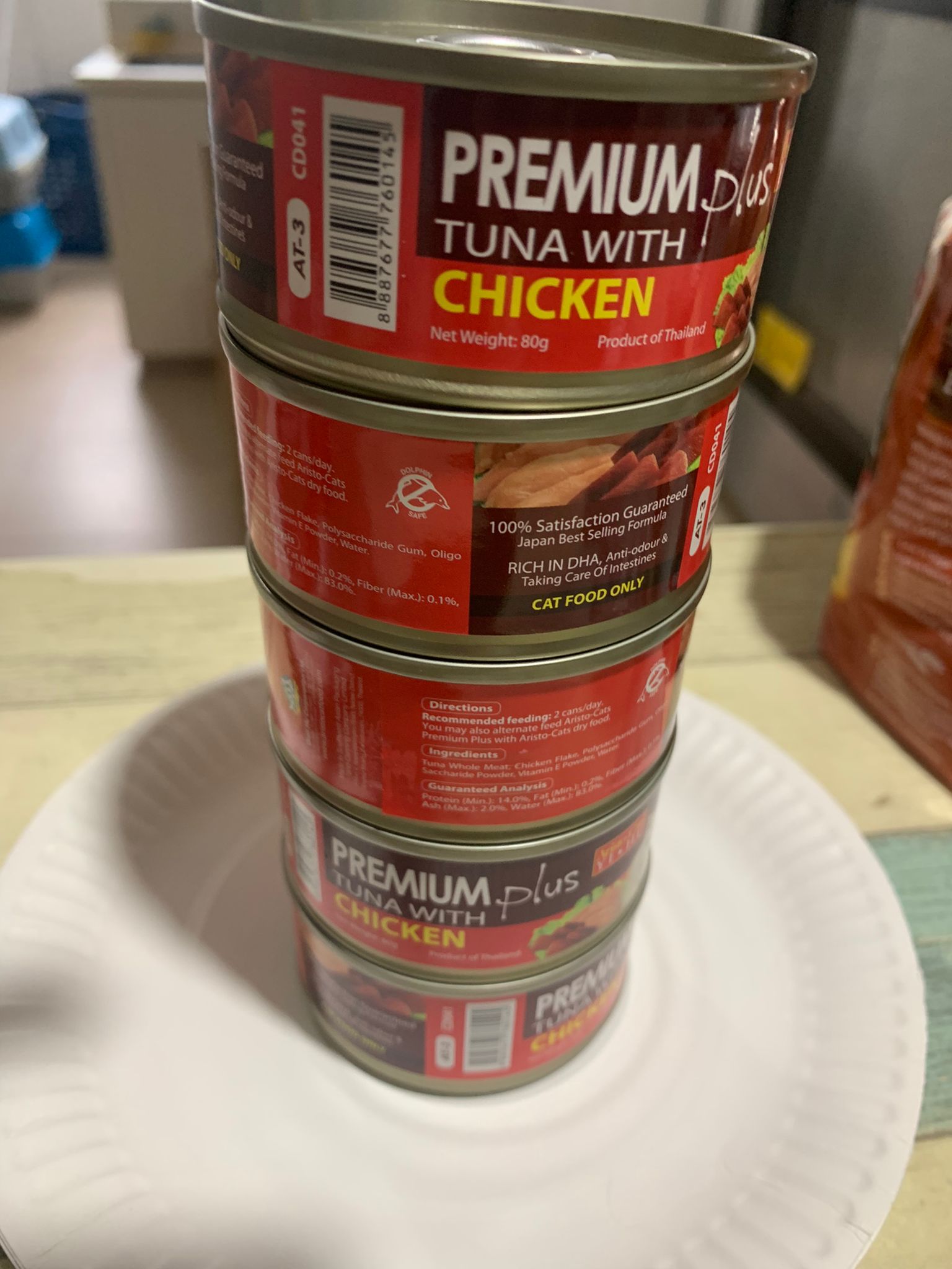 serve tuna w chicken ham and sparkles tuna w crab, she got eat instantly.