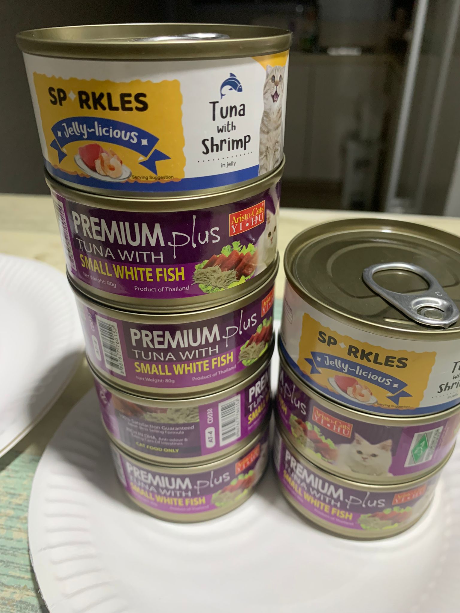 8pm+: Serve tuna w white fish (they obviously prefer this flavour) and sparkles tuna w prawn.