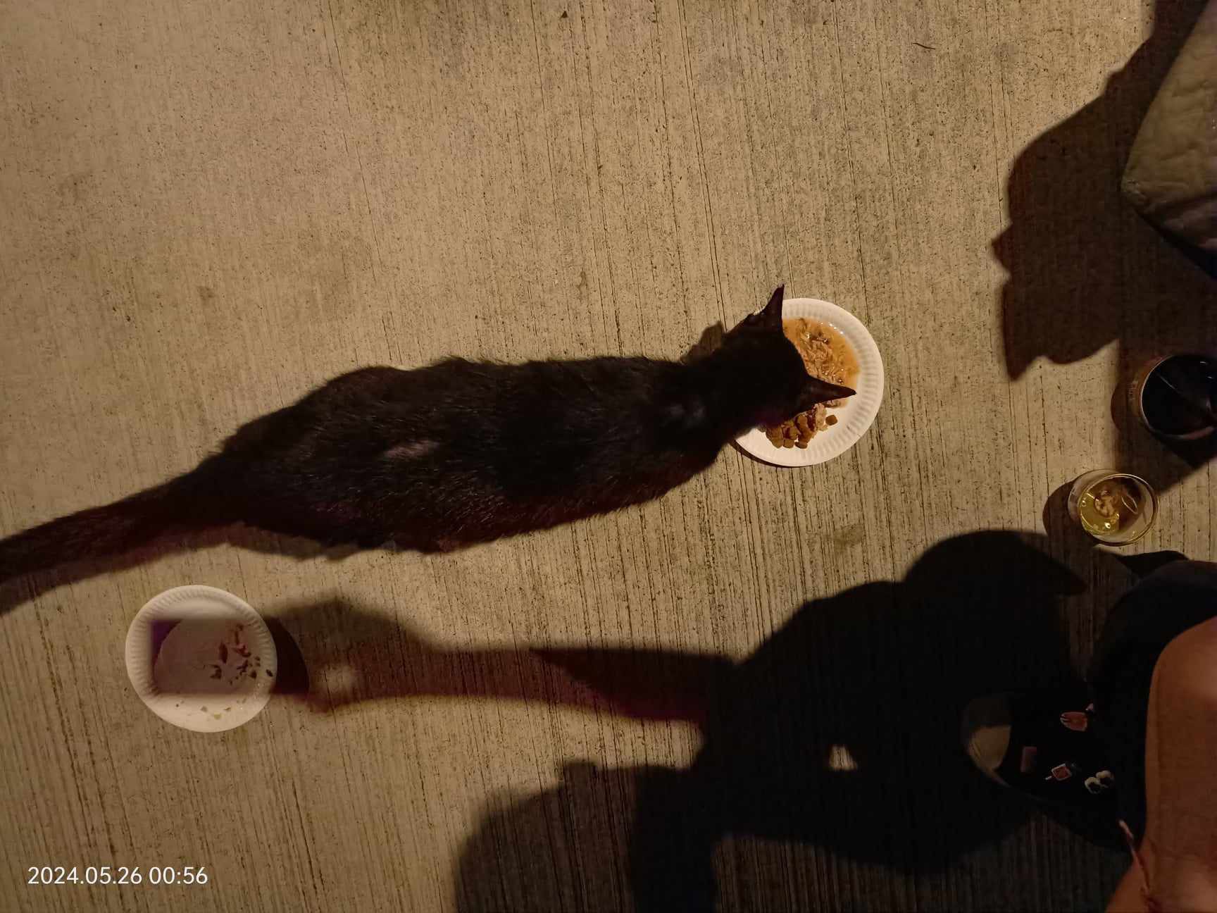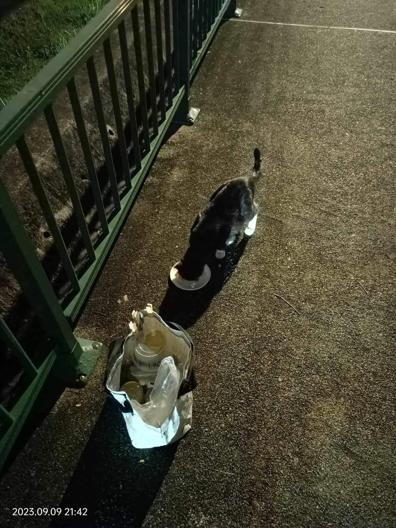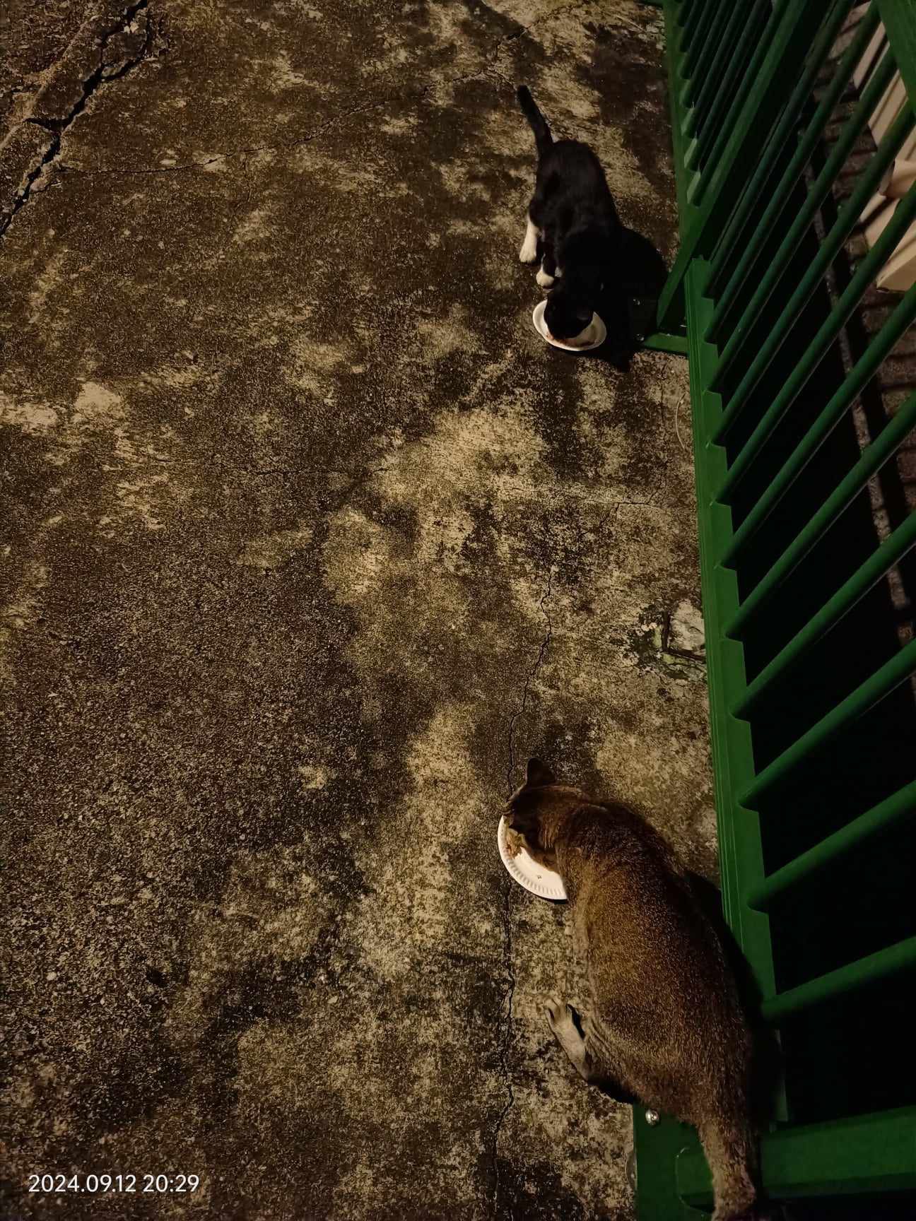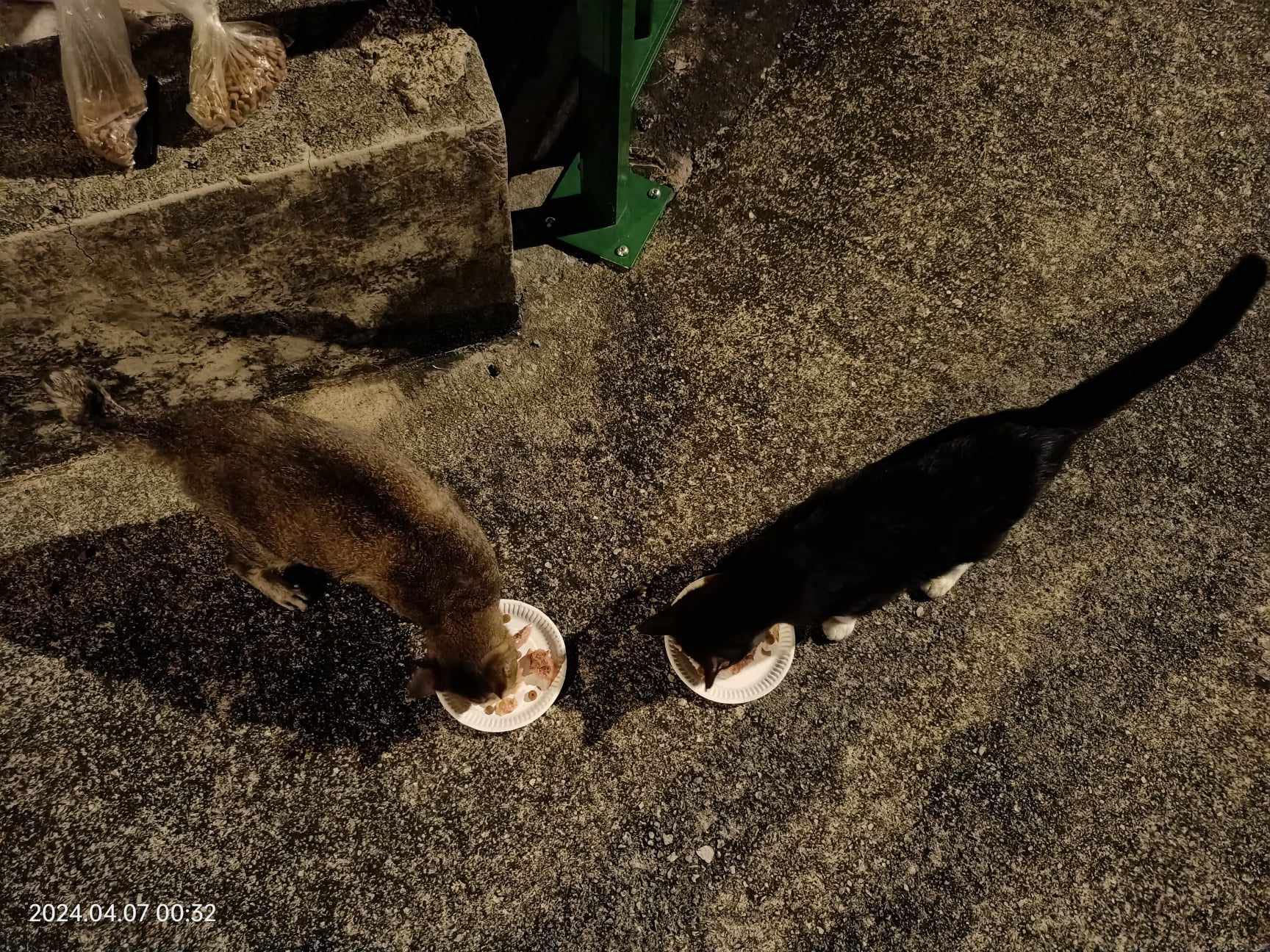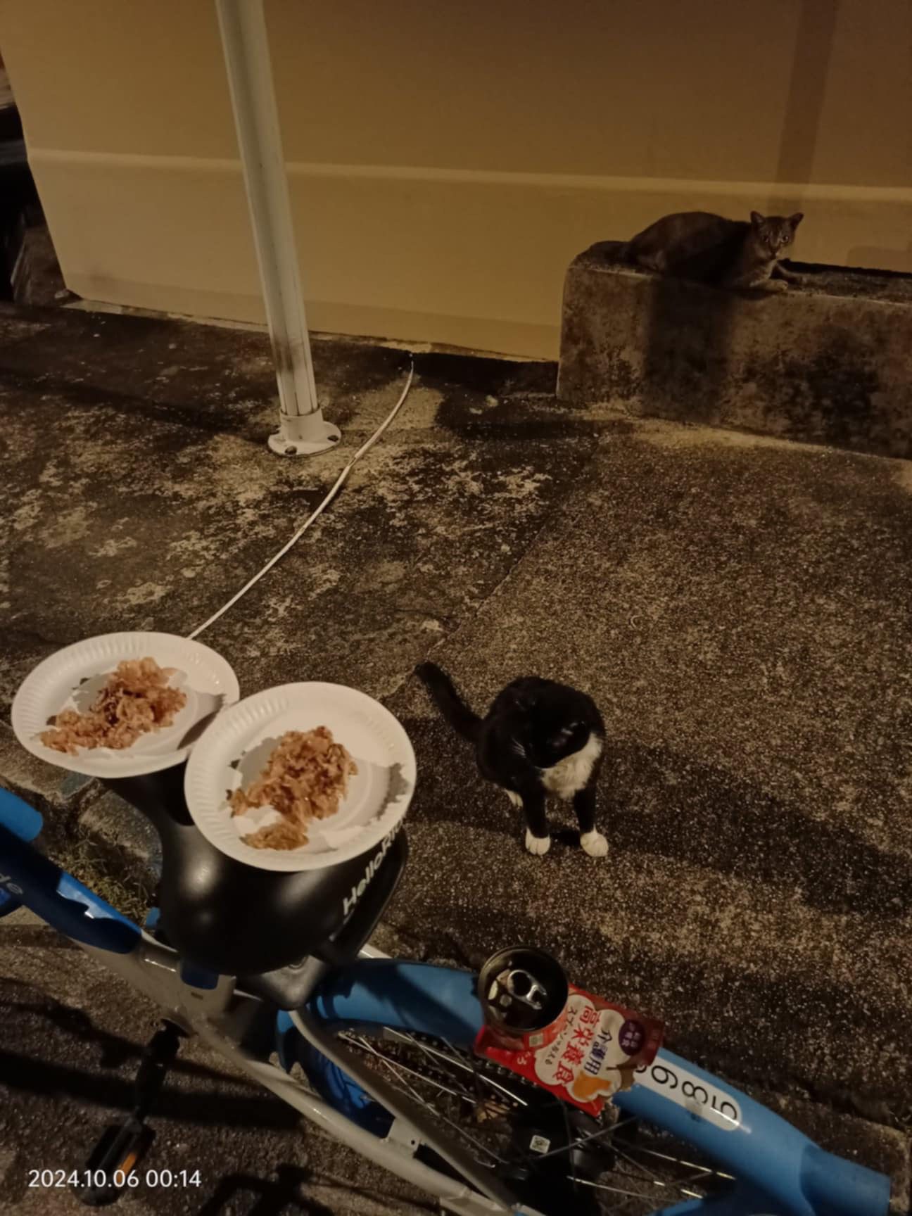 Just a community cat i get to know while looking for snow. not close. he come out sometime if really hungry. Normally he eat those rubbish food on floor i think. scare of human