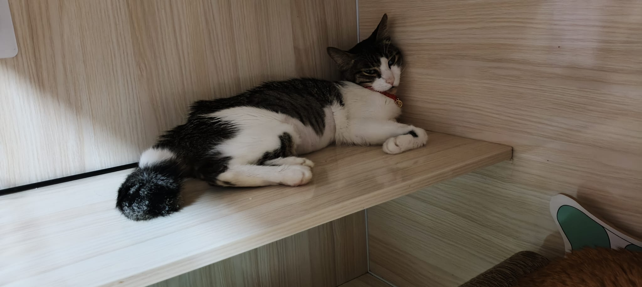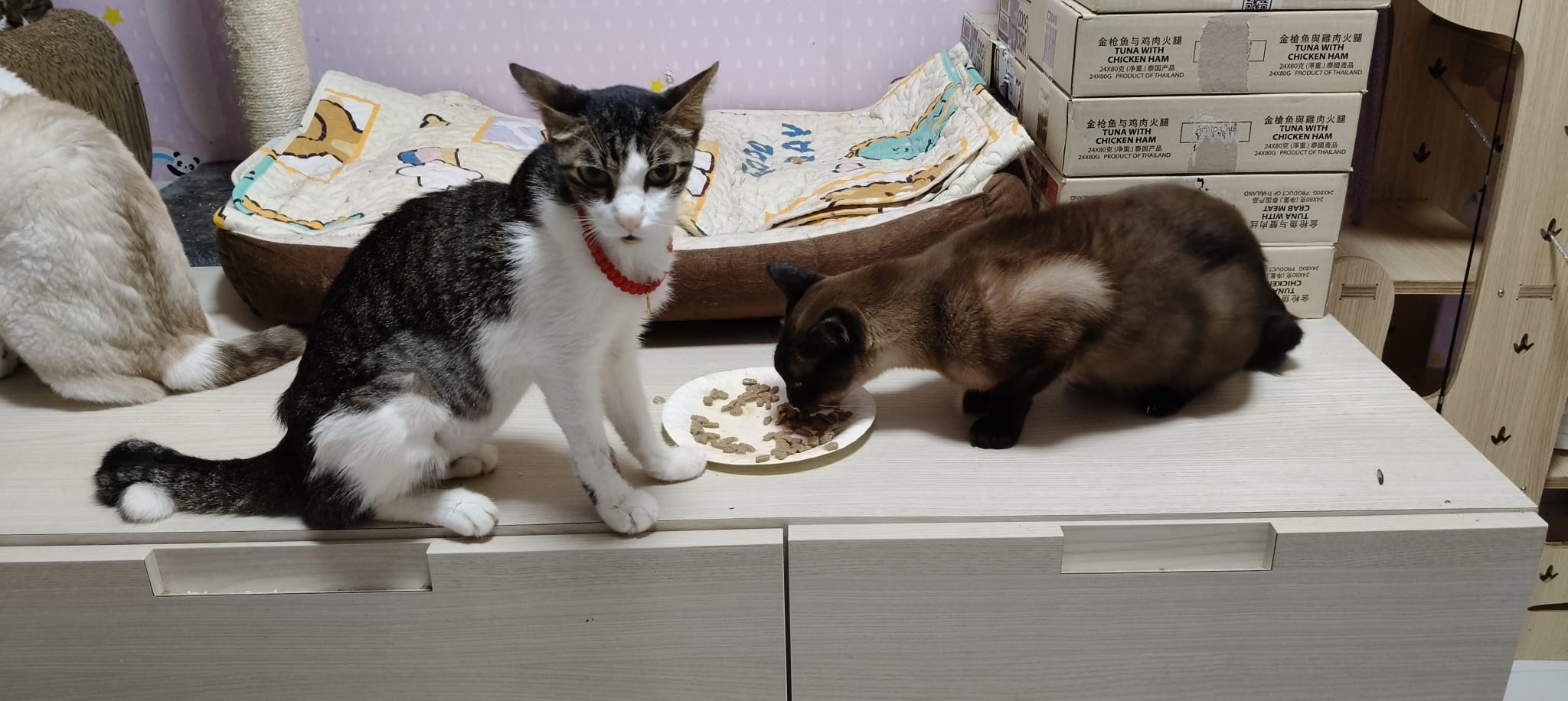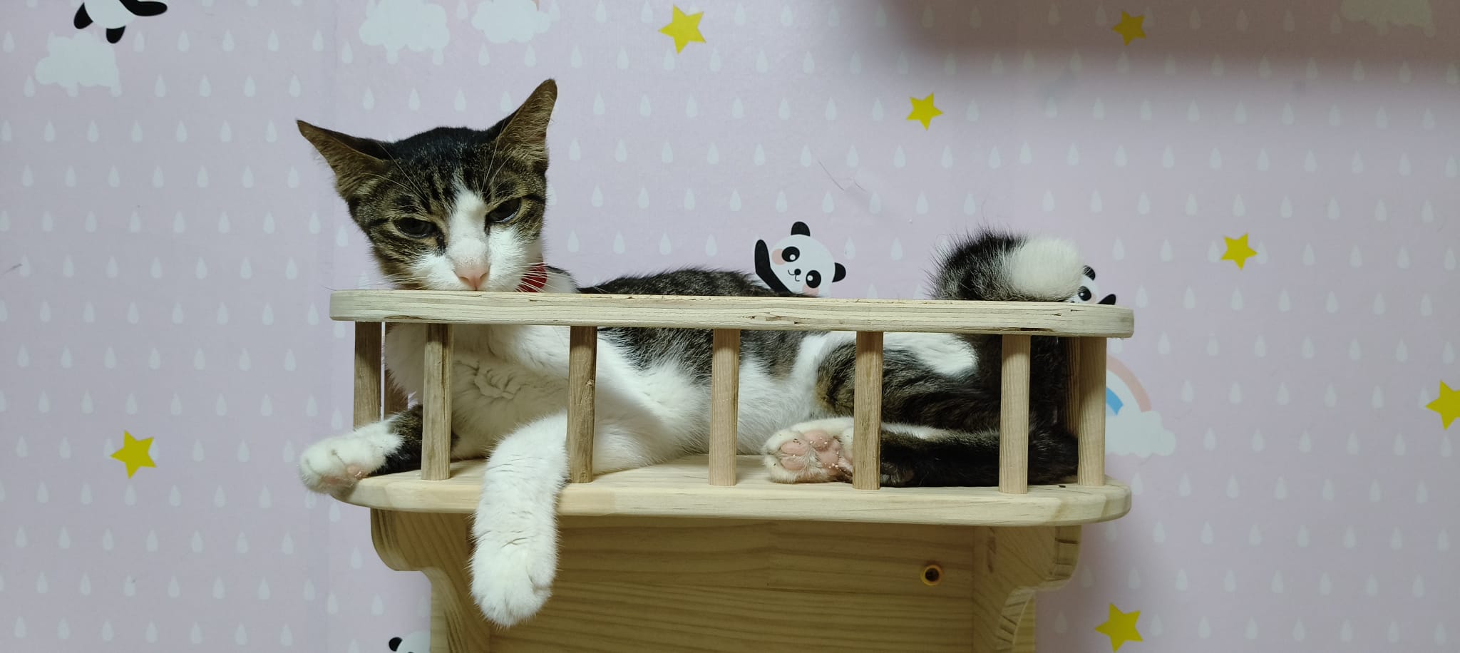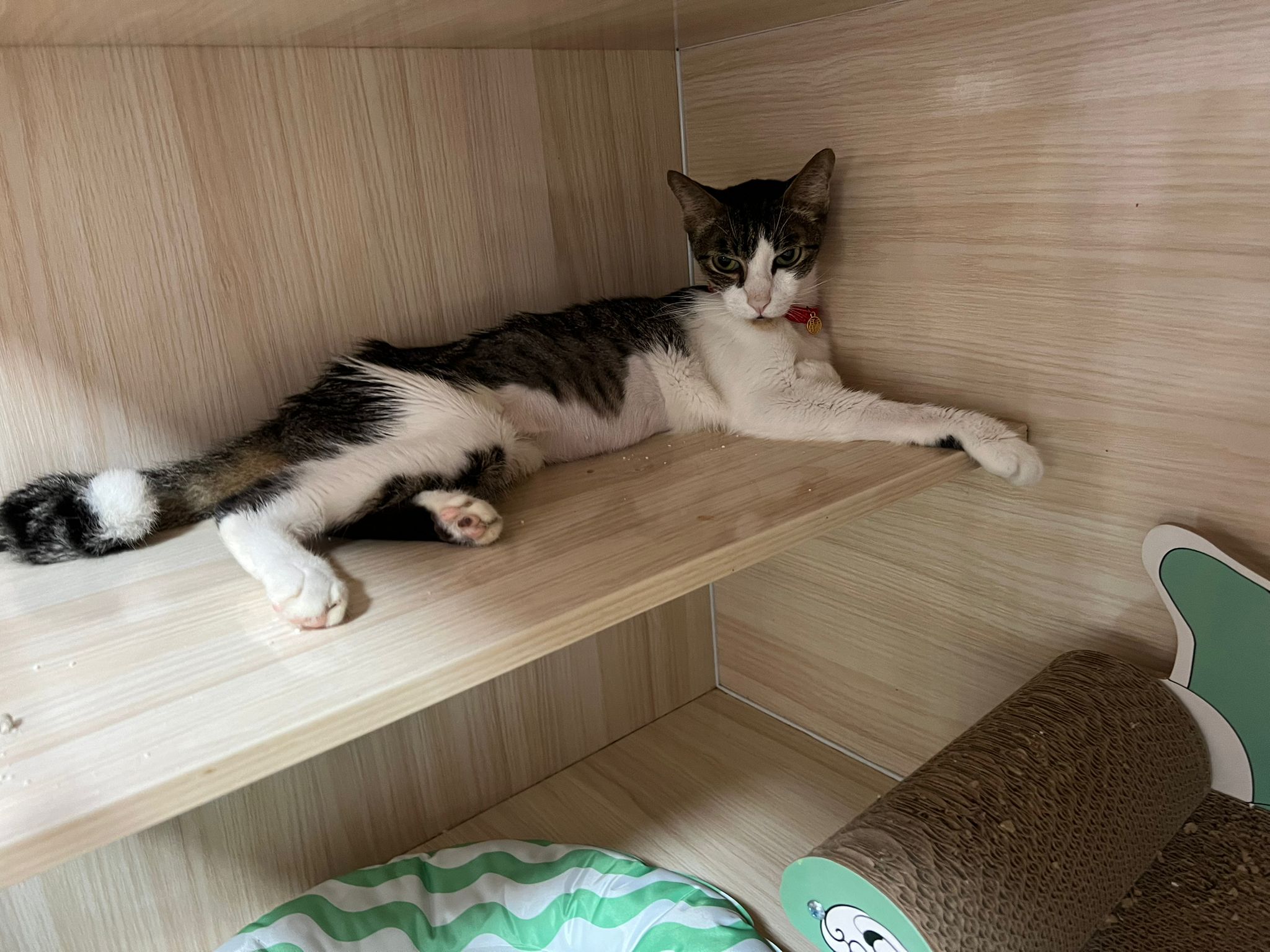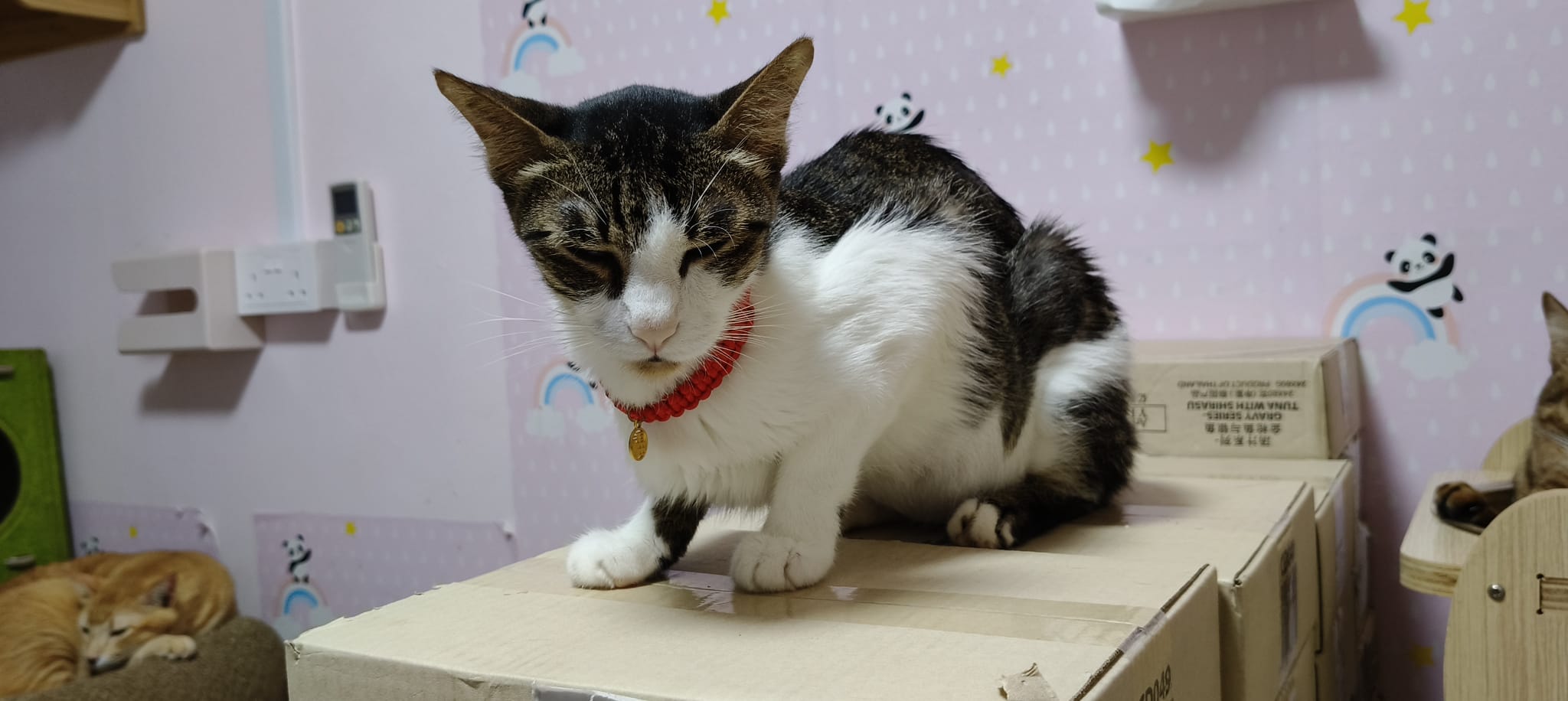 • merge well w 猫房 cats – a lot of bro like him … know how to stay calm in front of non interested sisters