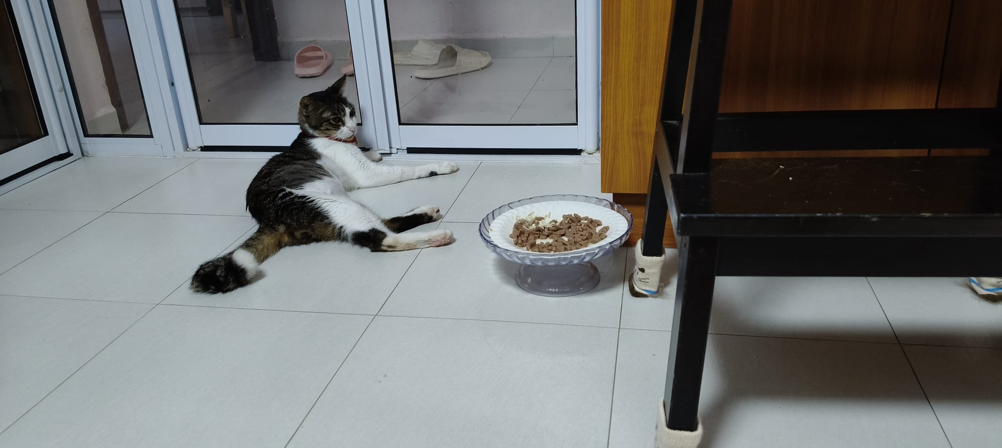 8am+: mmm;”Ears very sharp. I got out of bed n he came calling at the door. 1 handful of freeze dry n 1 packet of instinctive…. Gobble so fast, then lay down to rest.” – these days like to stay in living room