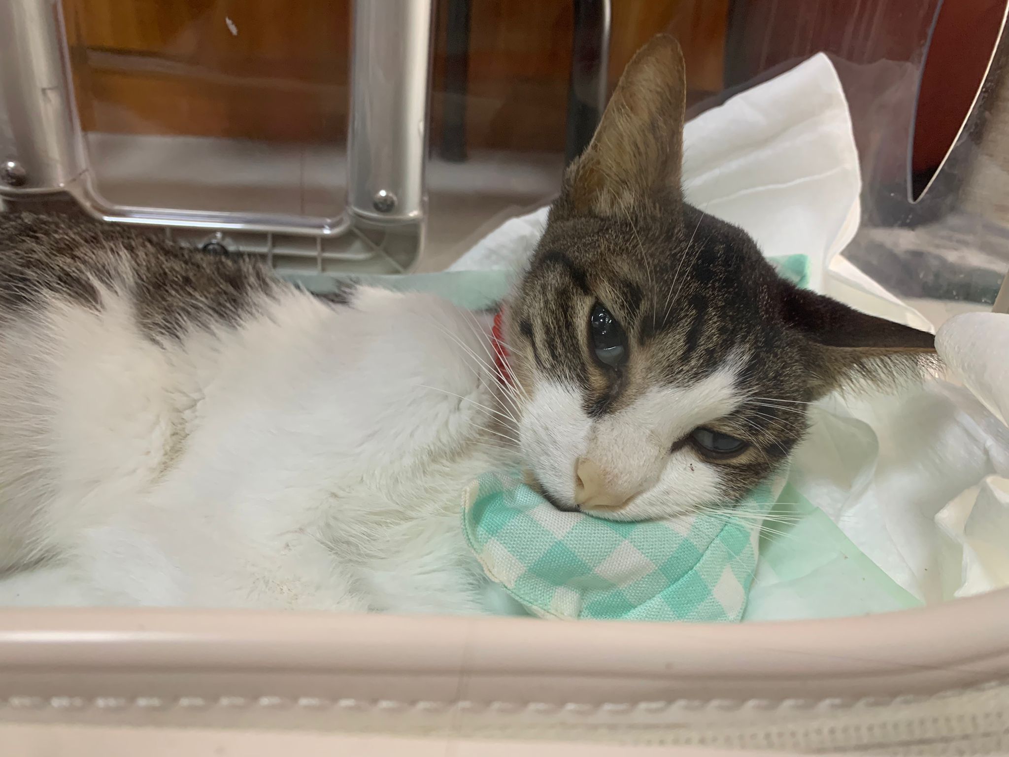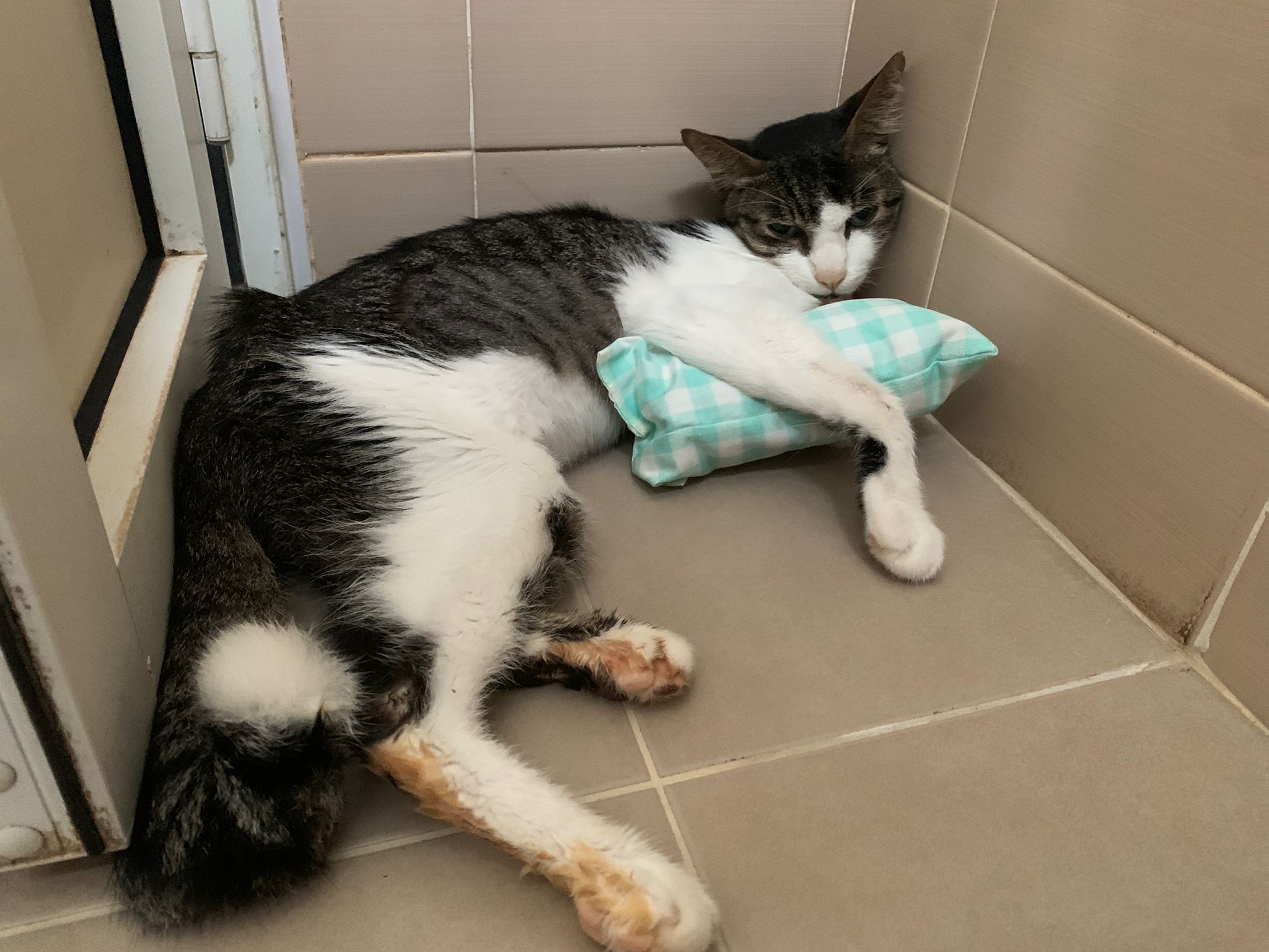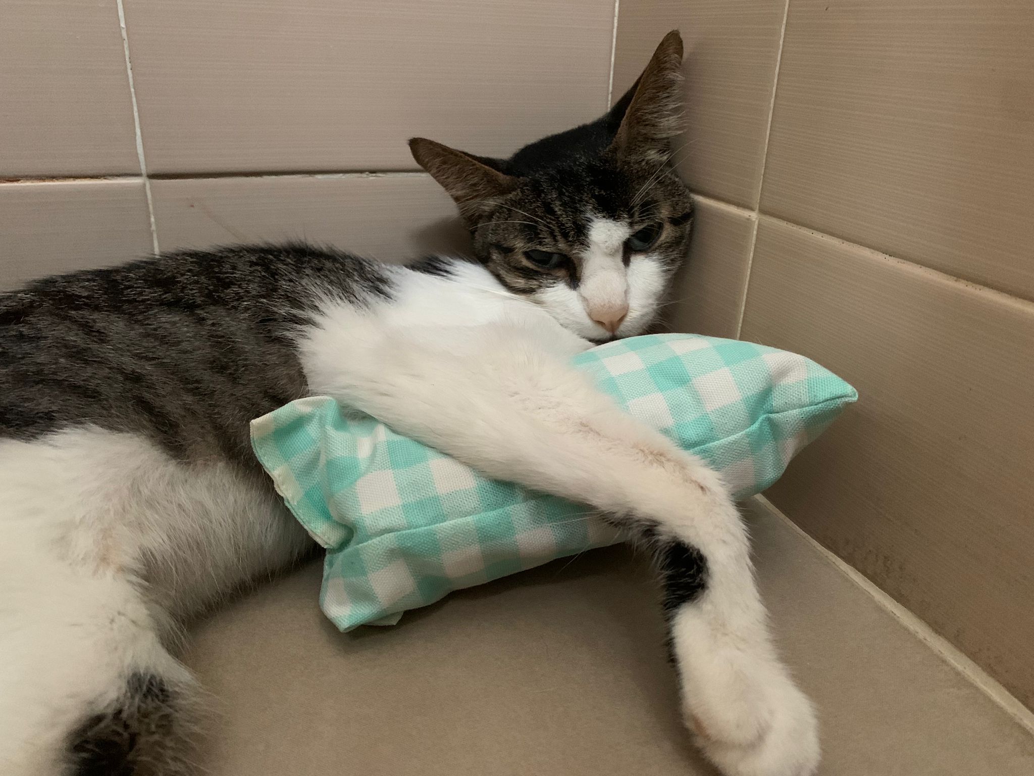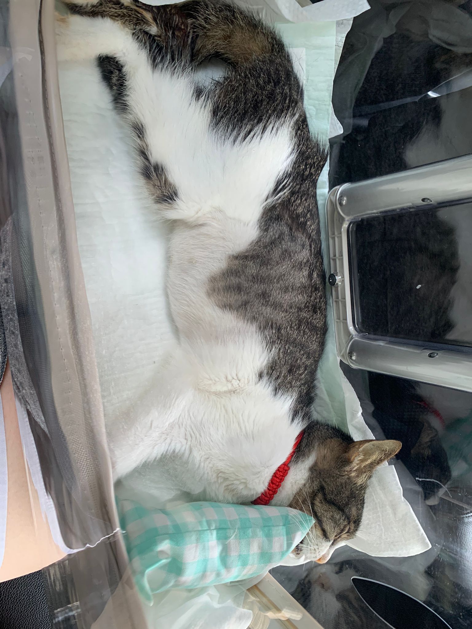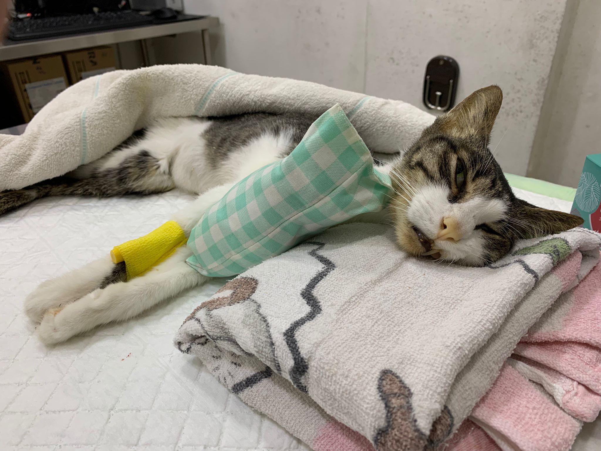 She do it without sedation cos not necessary le, less than 10s. I take out his iv cath n Brought him back to 猫房.