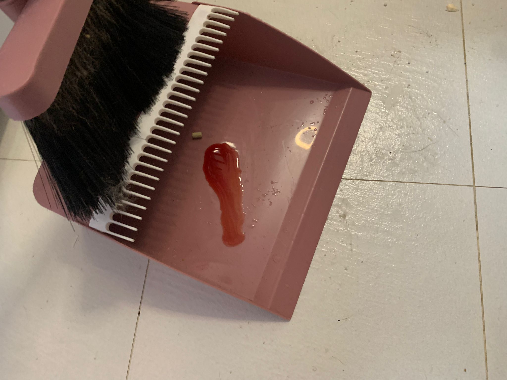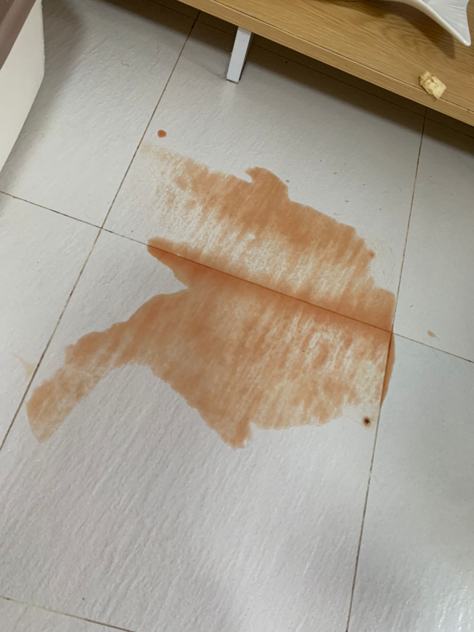 1pm; bin wash n he is a good boy cos I put the top layer alr he didn’t know I didn’t put the tray yet, he pee, still got blood. Mushy blood.