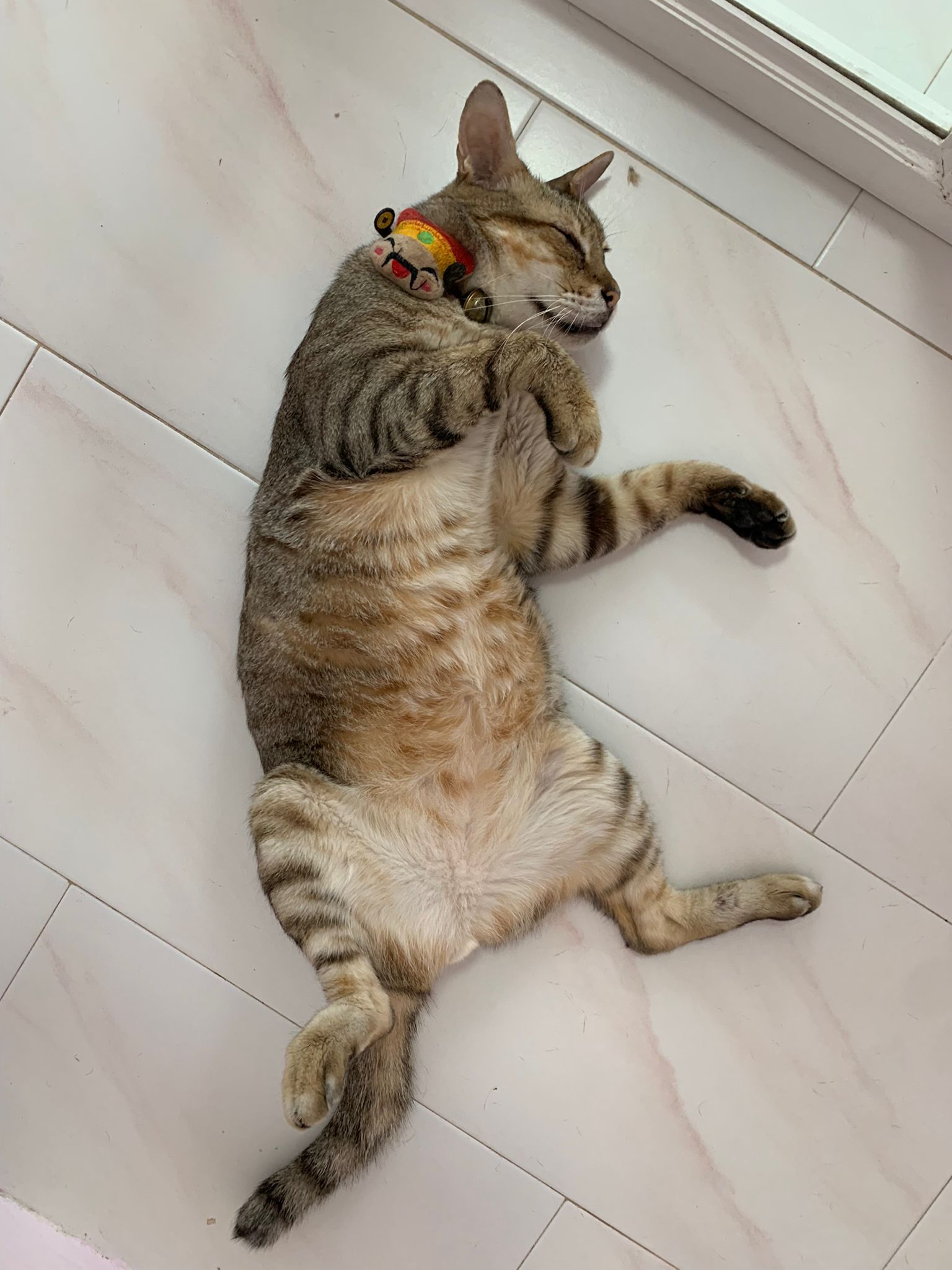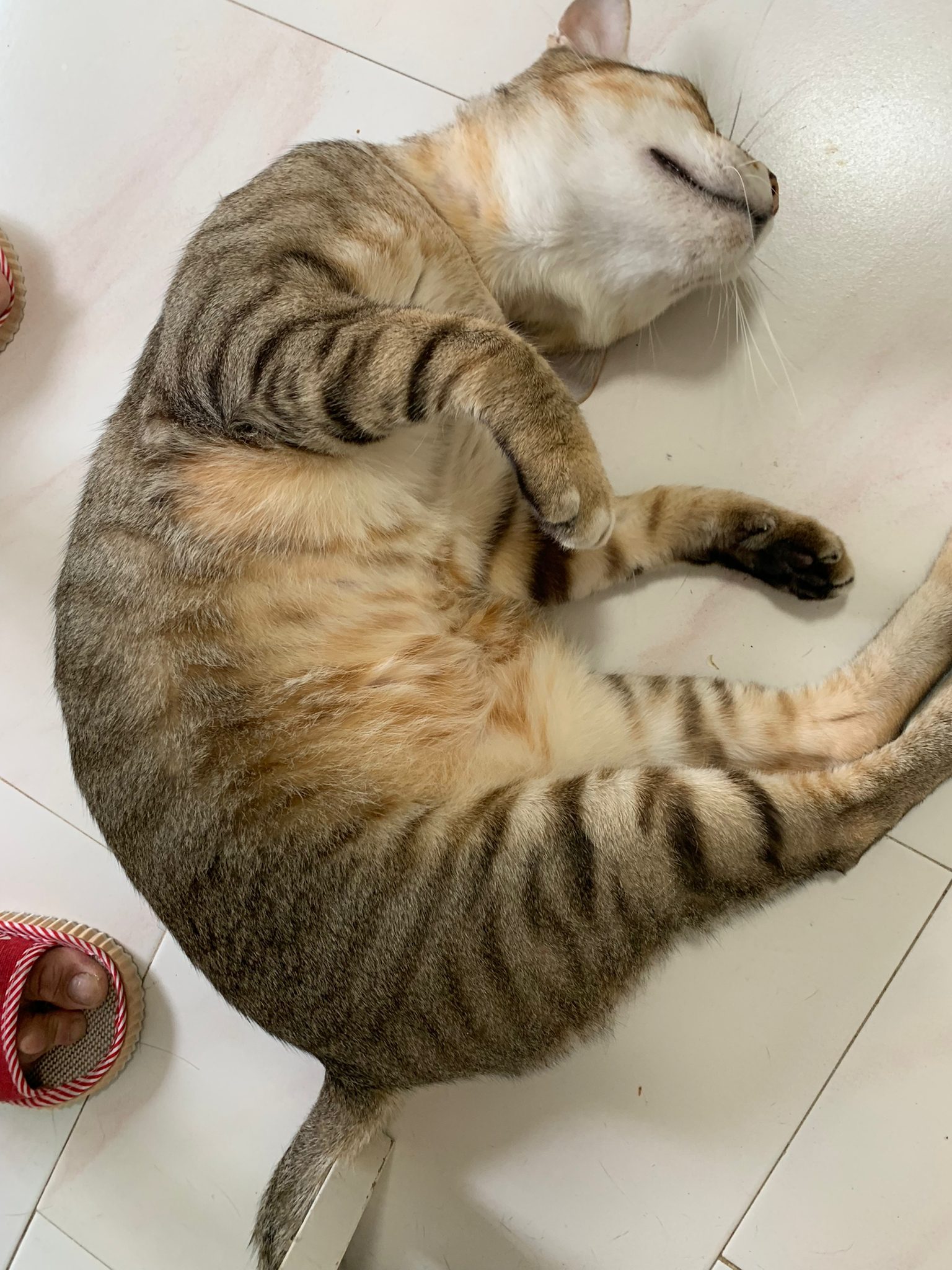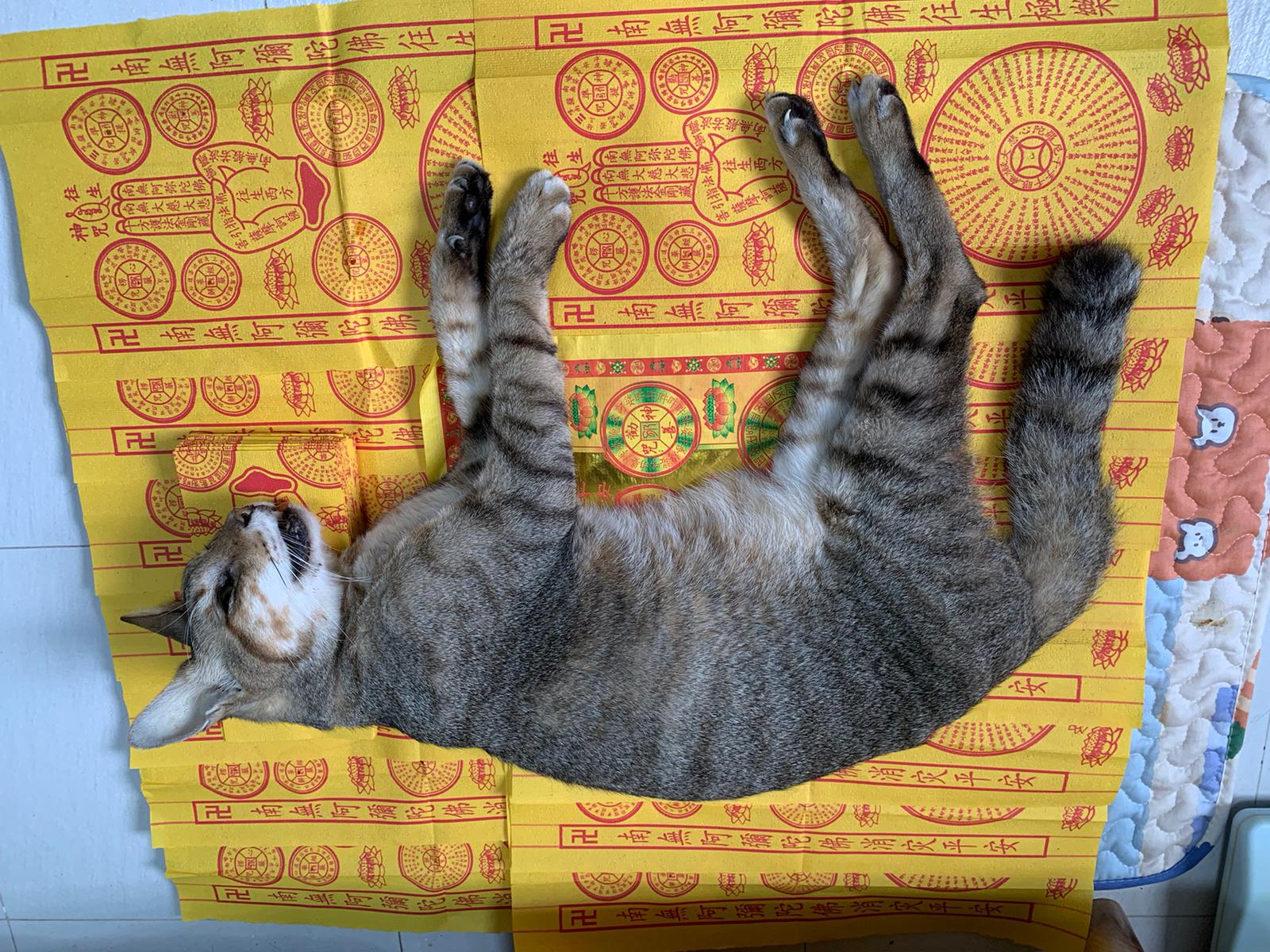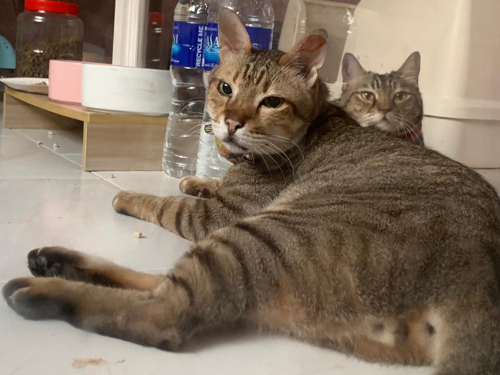 10.29am: from Ip: he sleep beside Xiami bin, scary pose, check 1015am: he is at the front kibble buffet area.