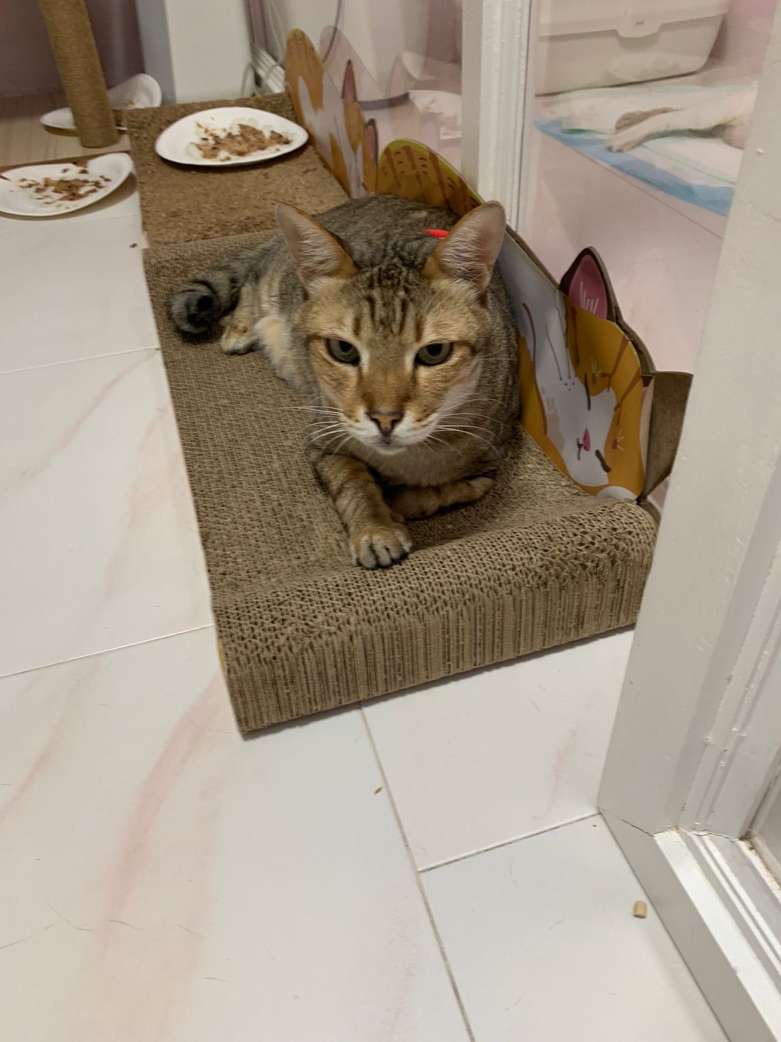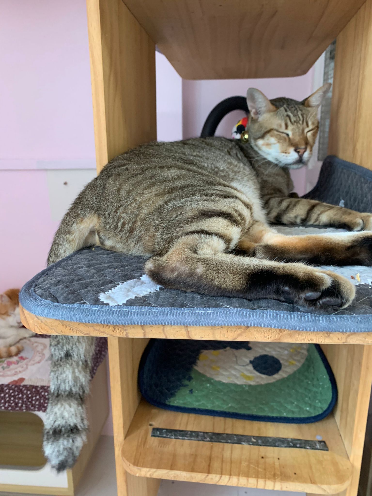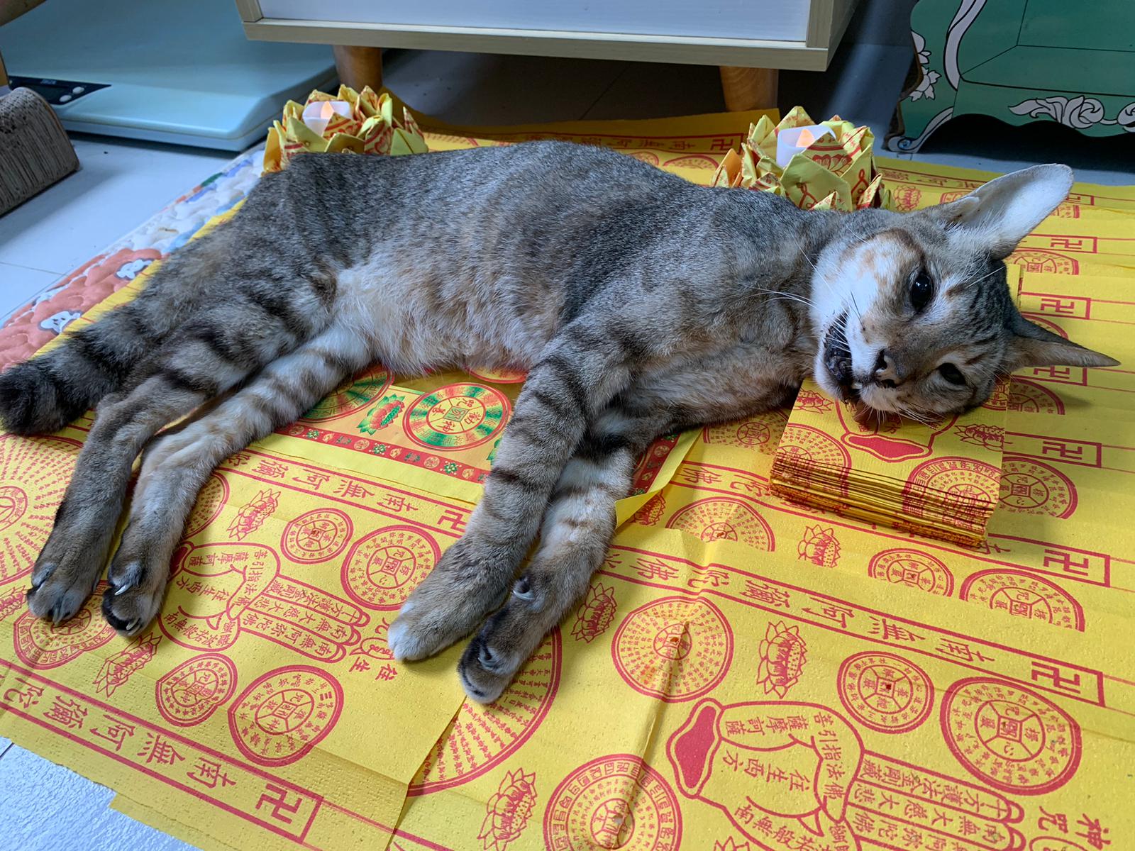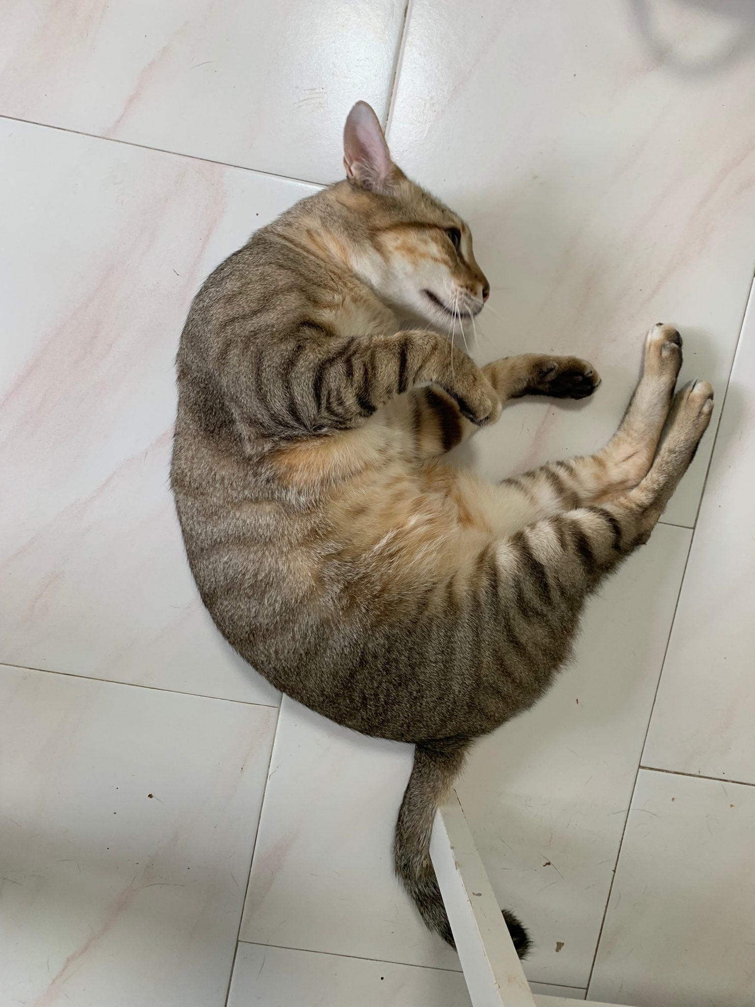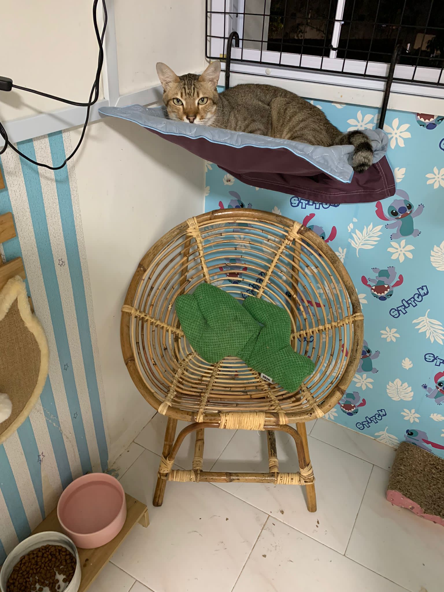 10.29am: from Ip: he sleep beside Xiami bin, scary pose, check 1015am: he is at the front kibble buffet area.
