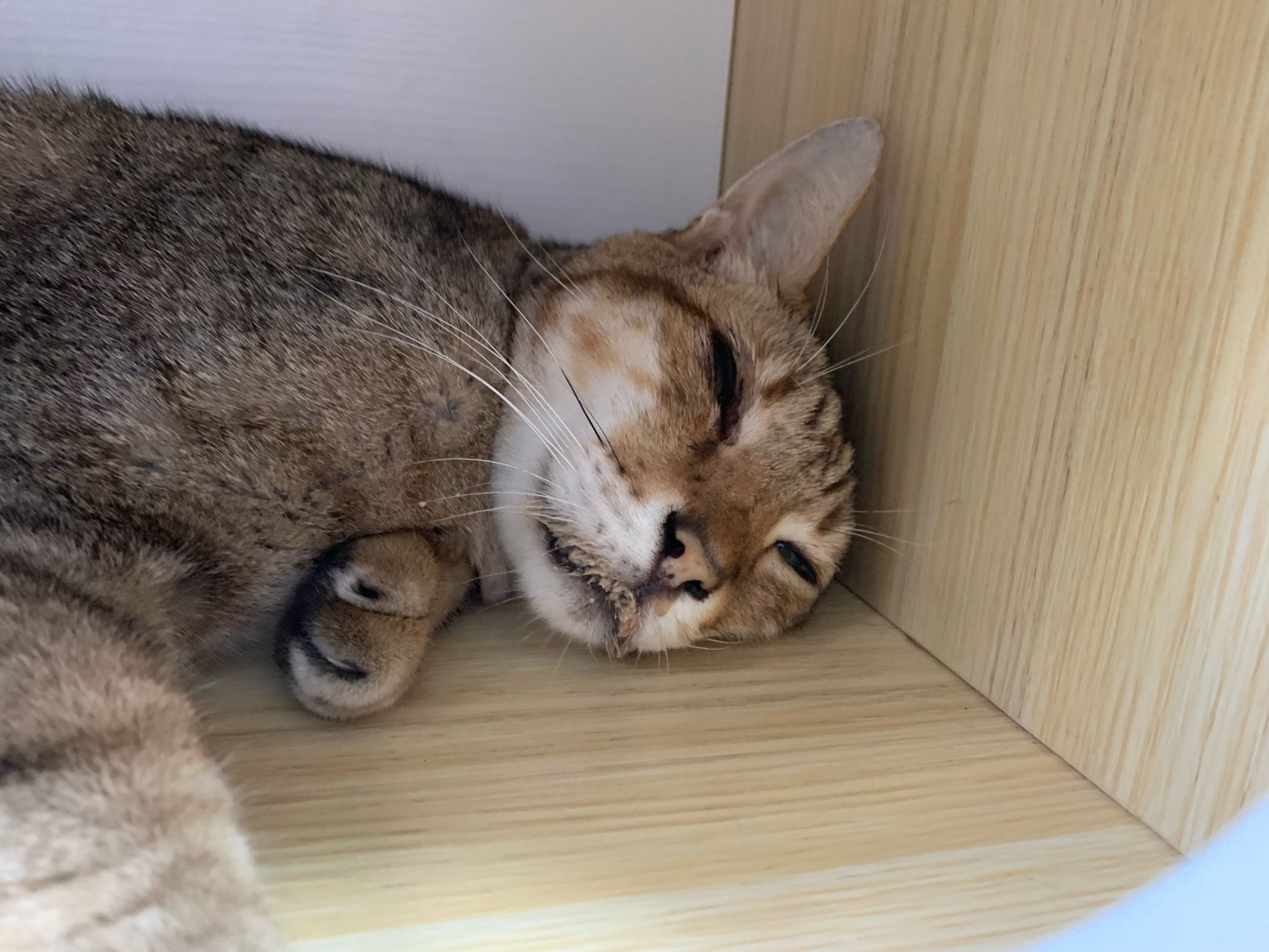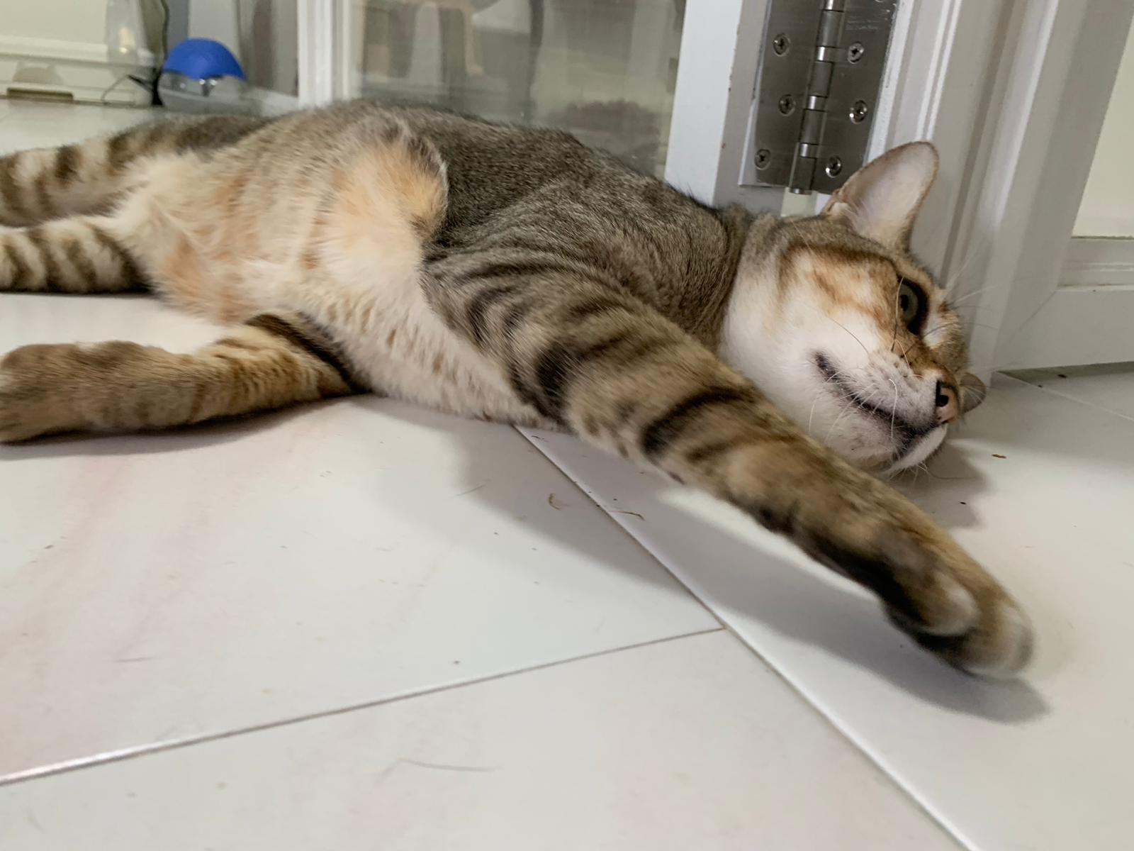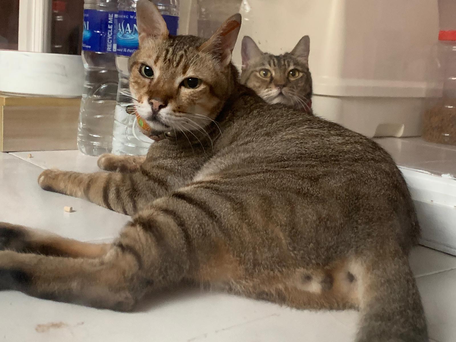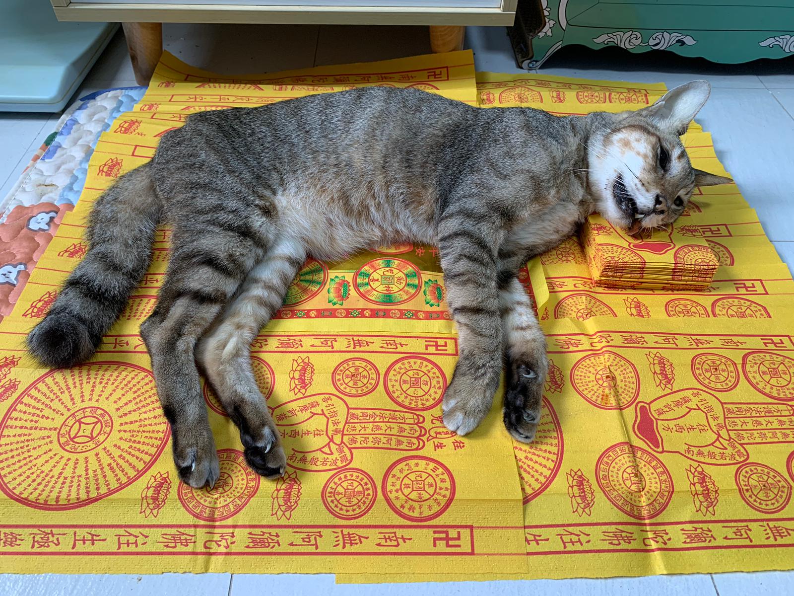 10.29am: from Ip: he sleep beside Xiami bin, scary pose, check 1015am: he is at the front kibble buffet area.