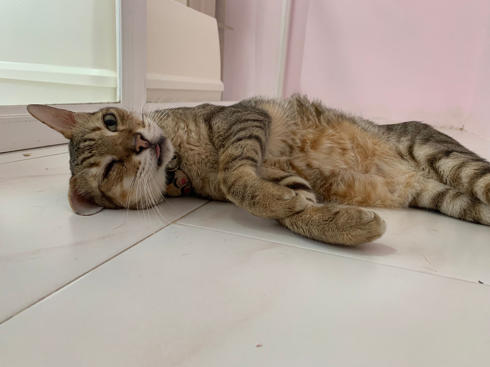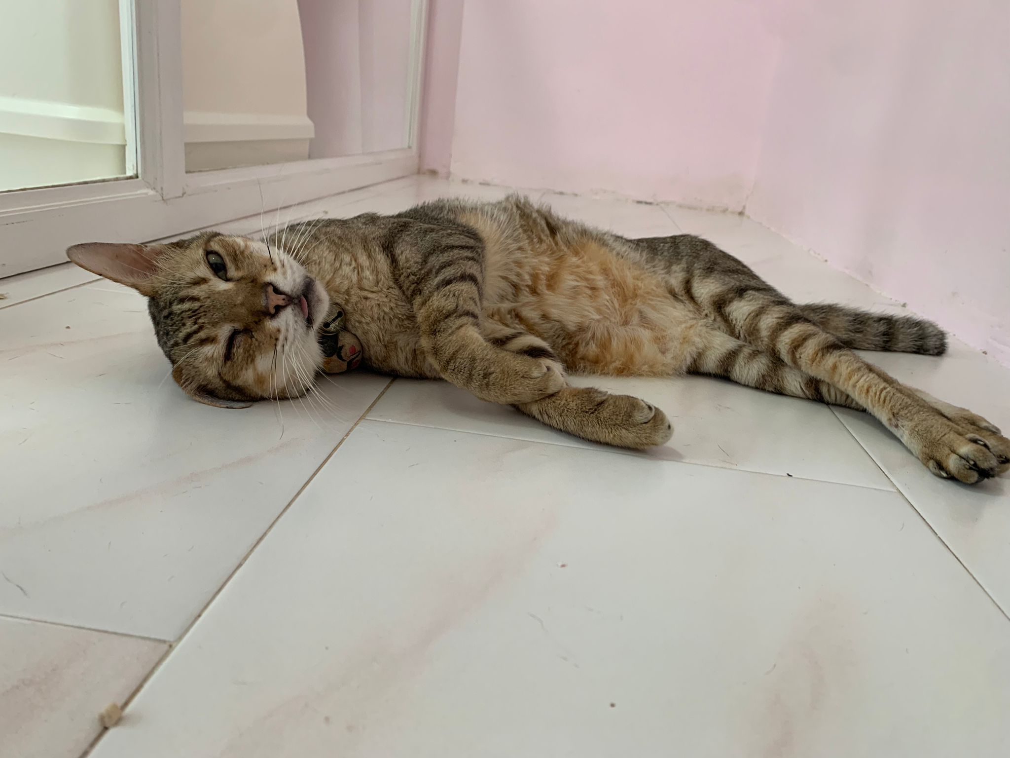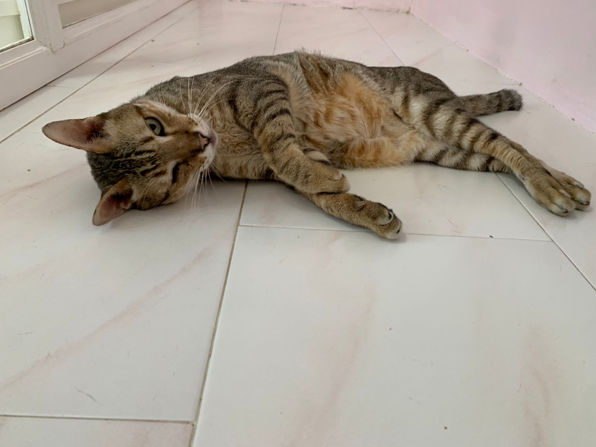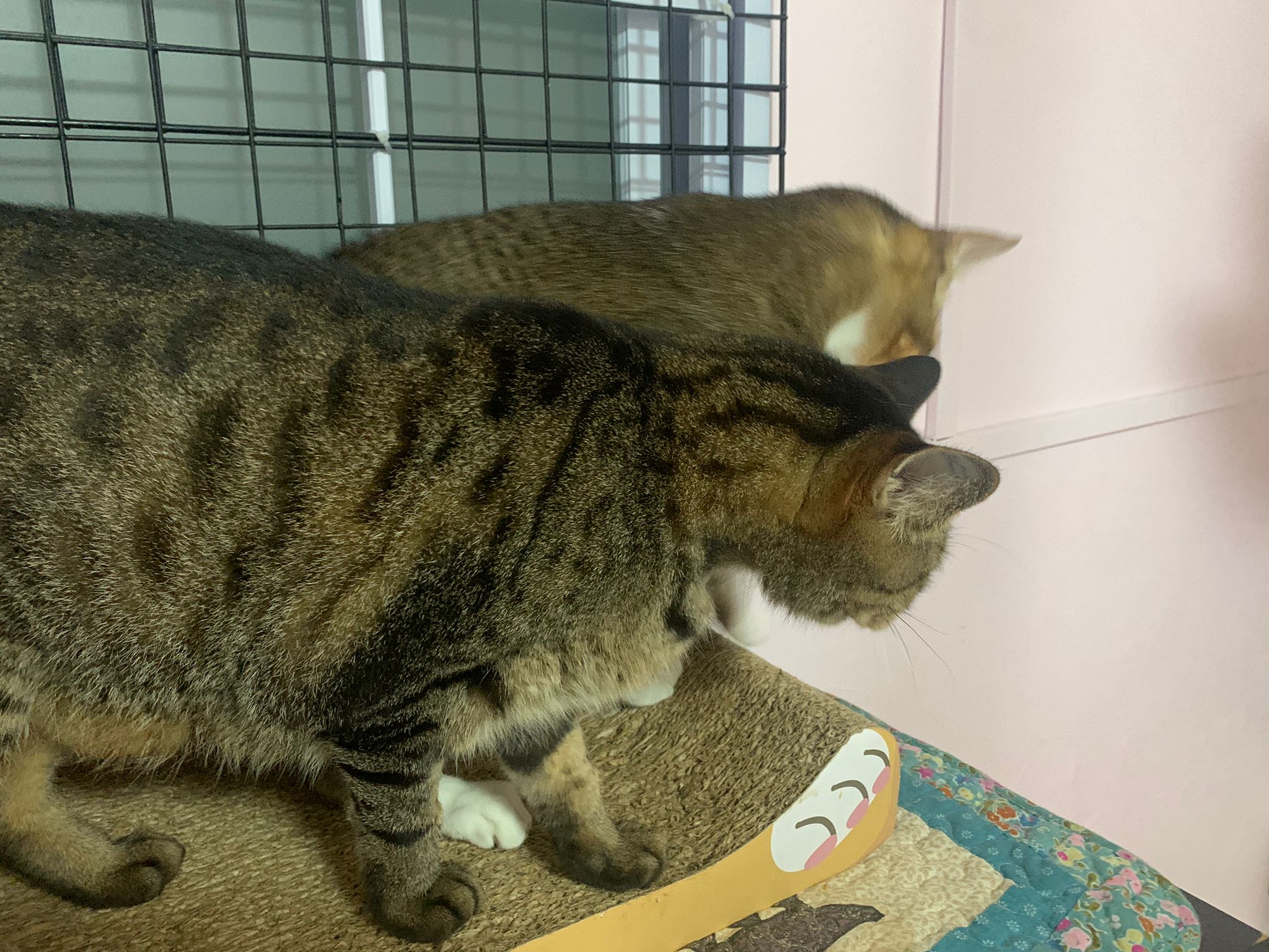 10.29am: from Ip: he sleep beside Xiami bin, scary pose, check 1015am: he is at the front kibble buffet area.