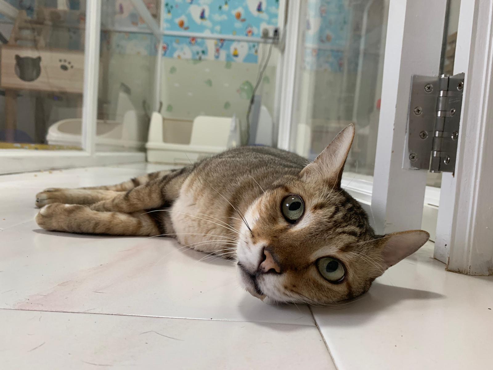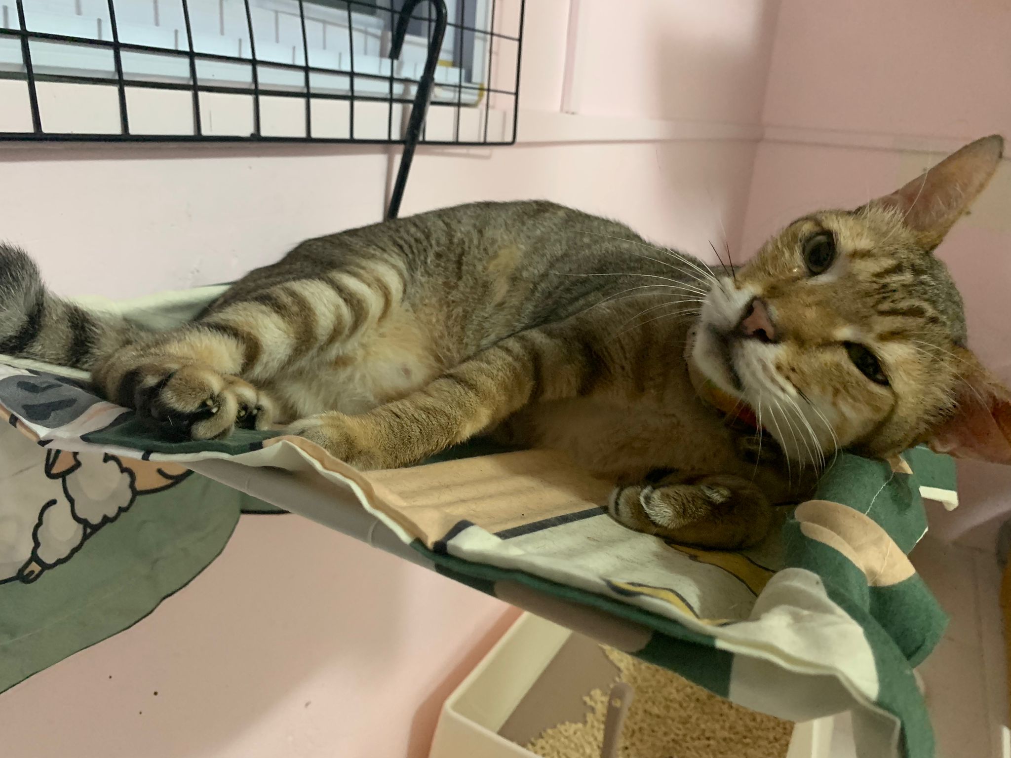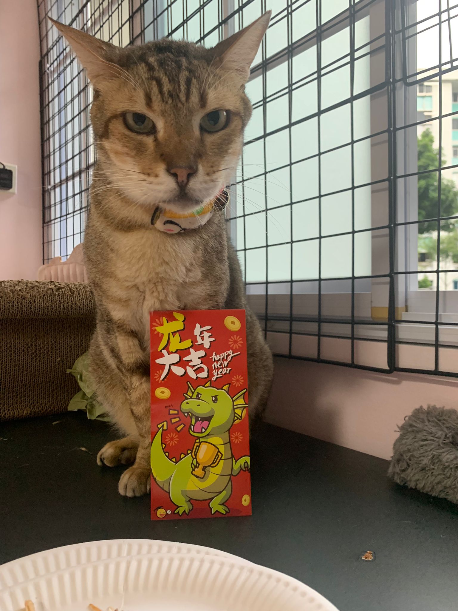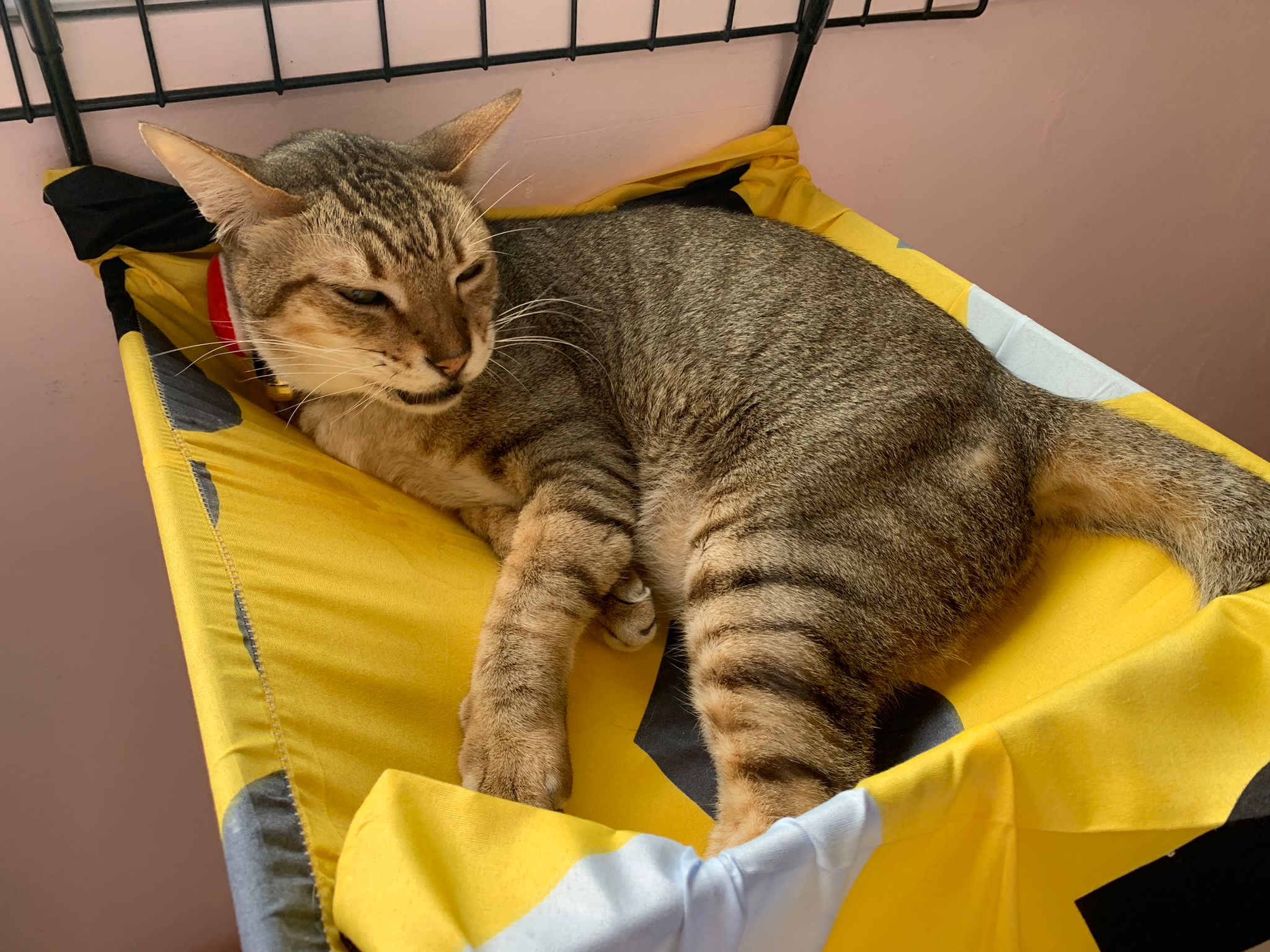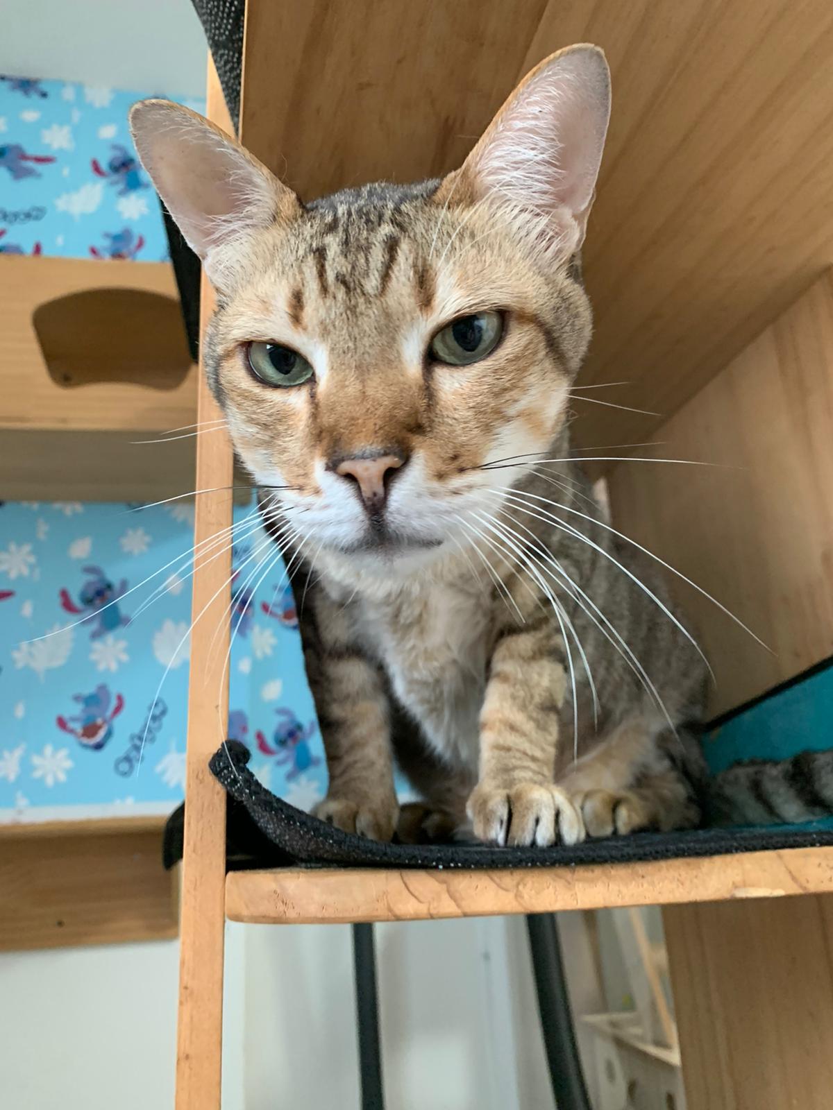 A very muscular boy, can be bad tempered, tend to eat food fast and vomit thereafter. Love me sayang n kiss him, can belly rub but again, have to be careful in case he got angry n his attack can be scary cos he is really strong. To be adopted with his brother Daring.