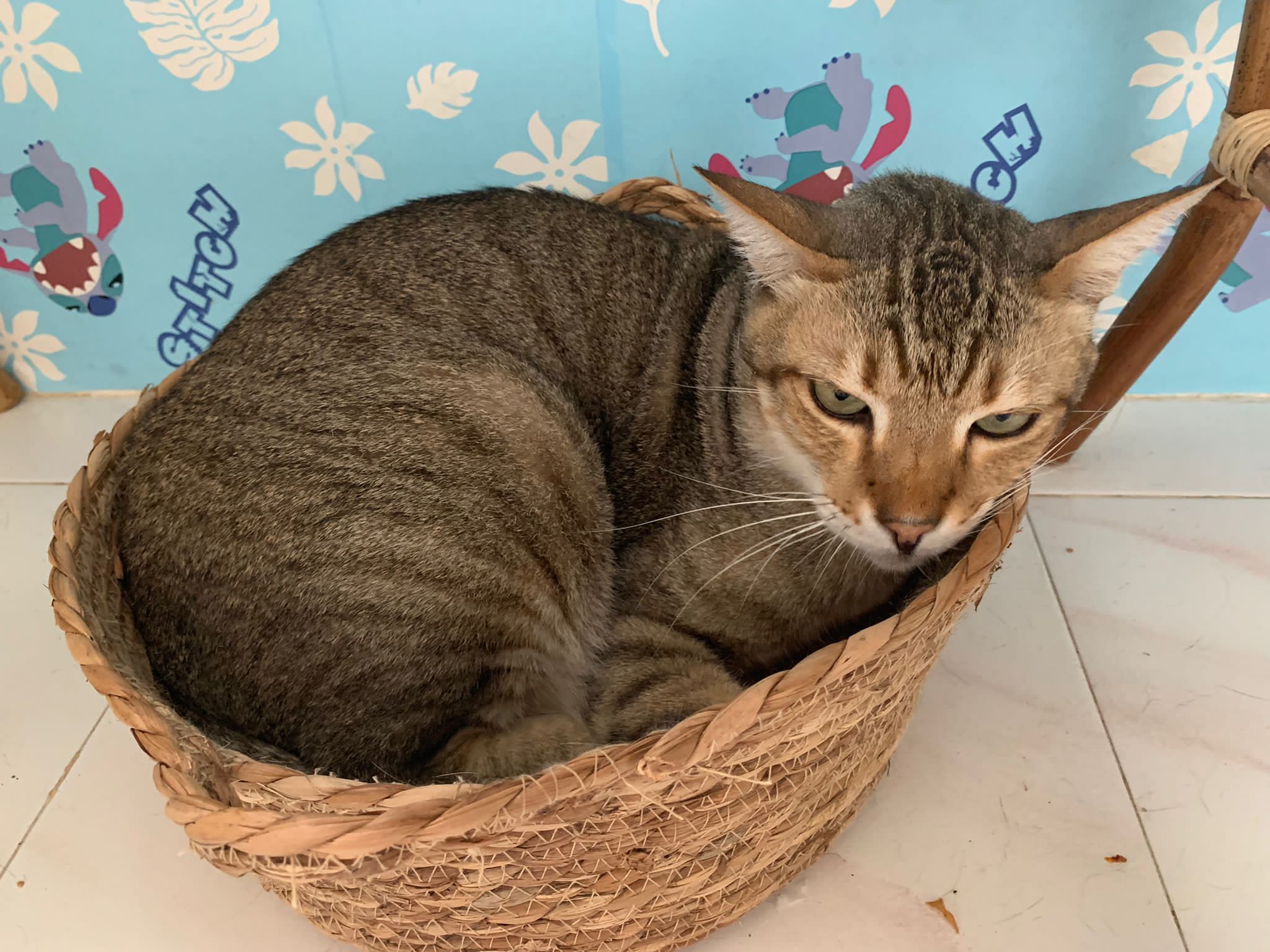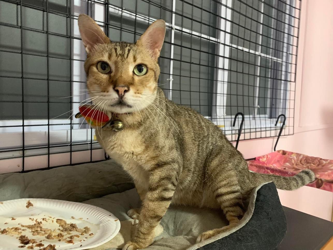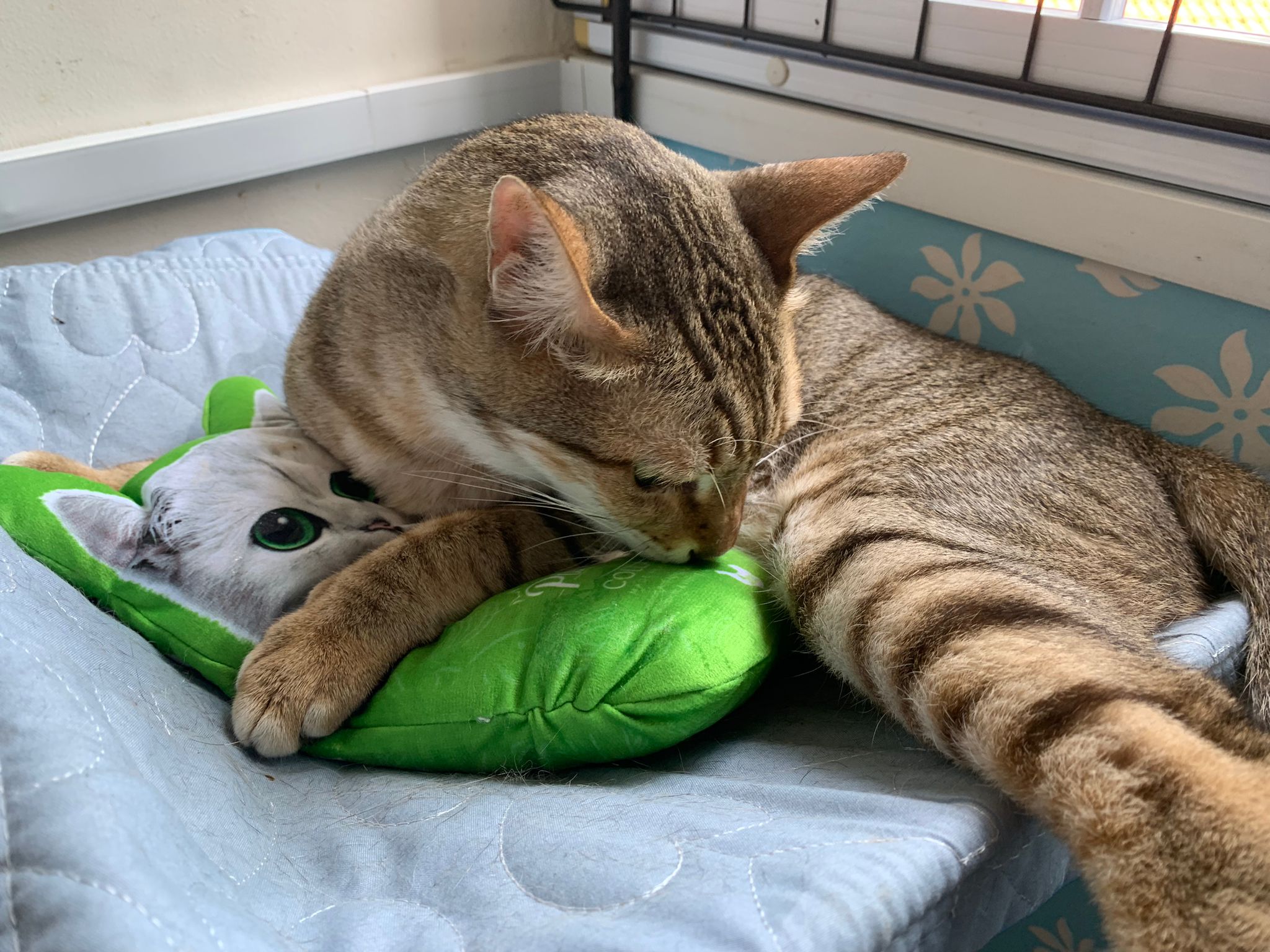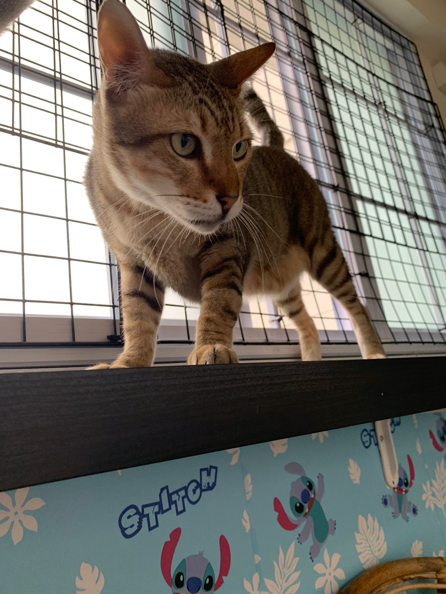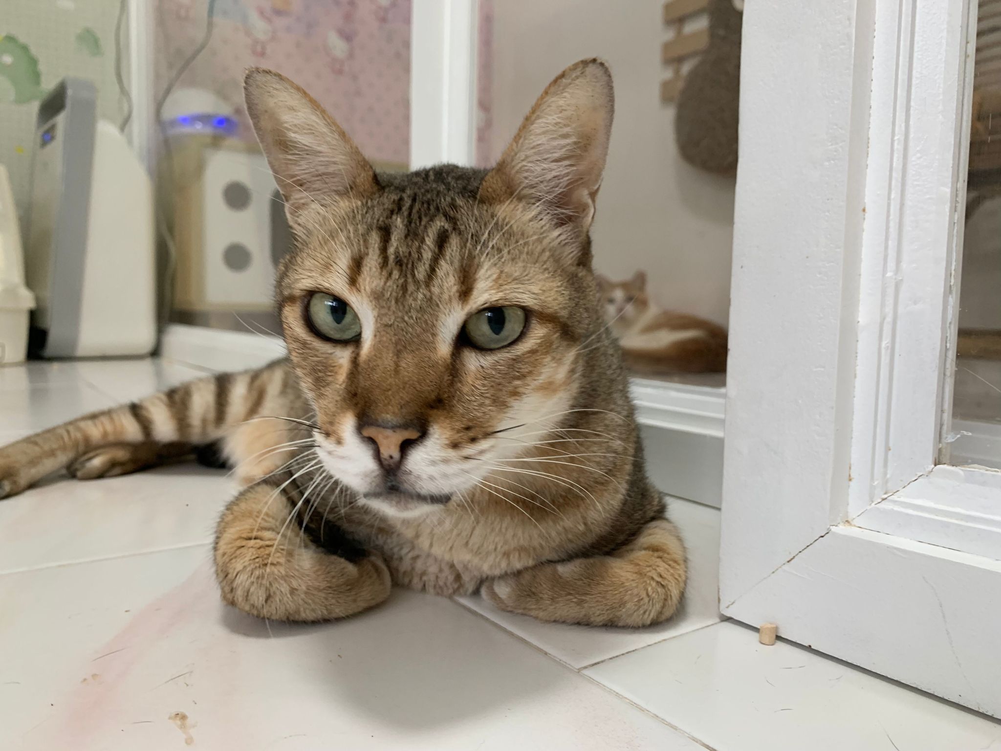 A very muscular boy, can be bad tempered, tend to eat food fast and vomit thereafter. Love me sayang n kiss him, can belly rub but again, have to be careful in case he got angry n his attack can be scary cos he is really strong. To be adopted with his brother Daring.
