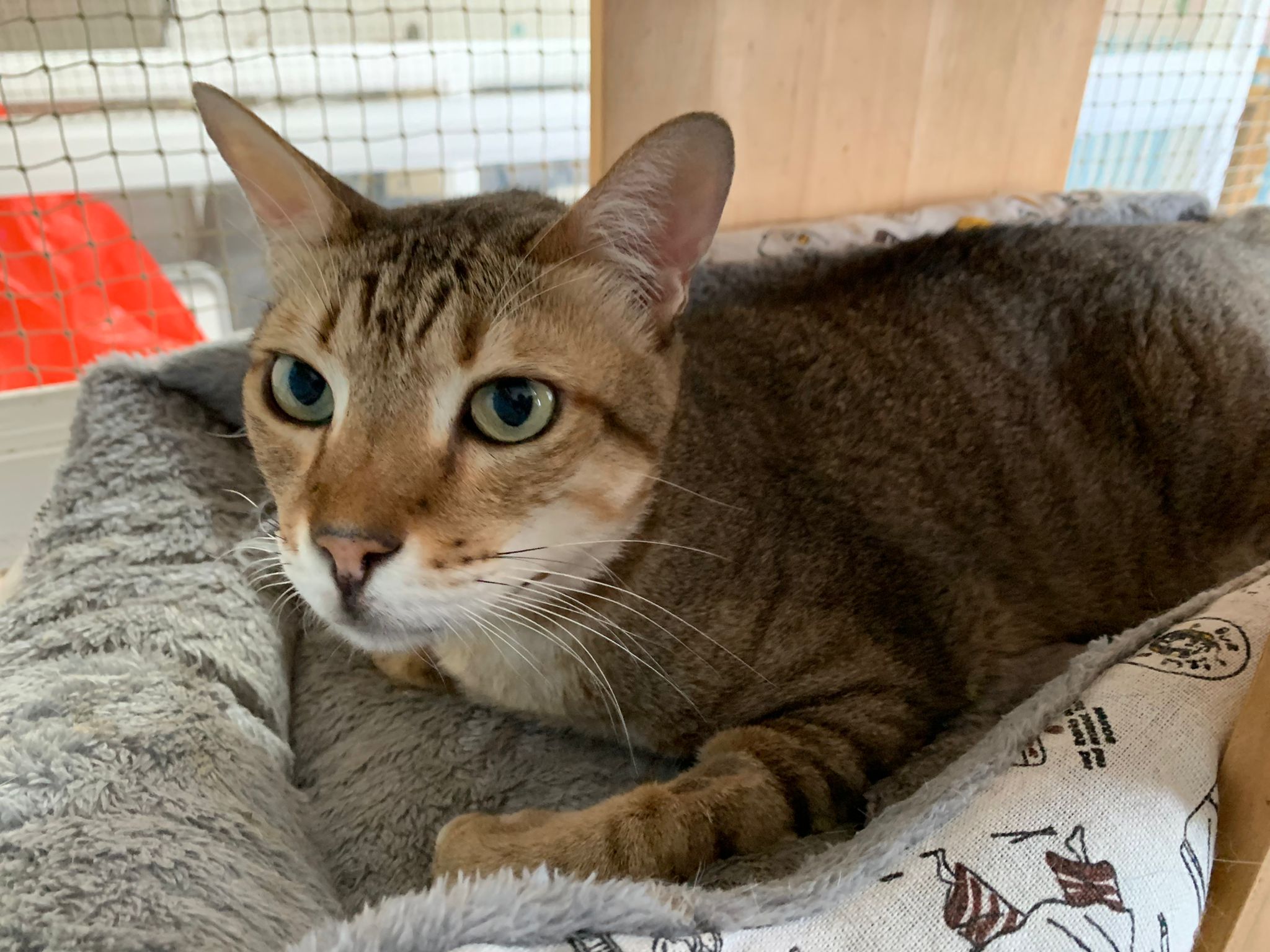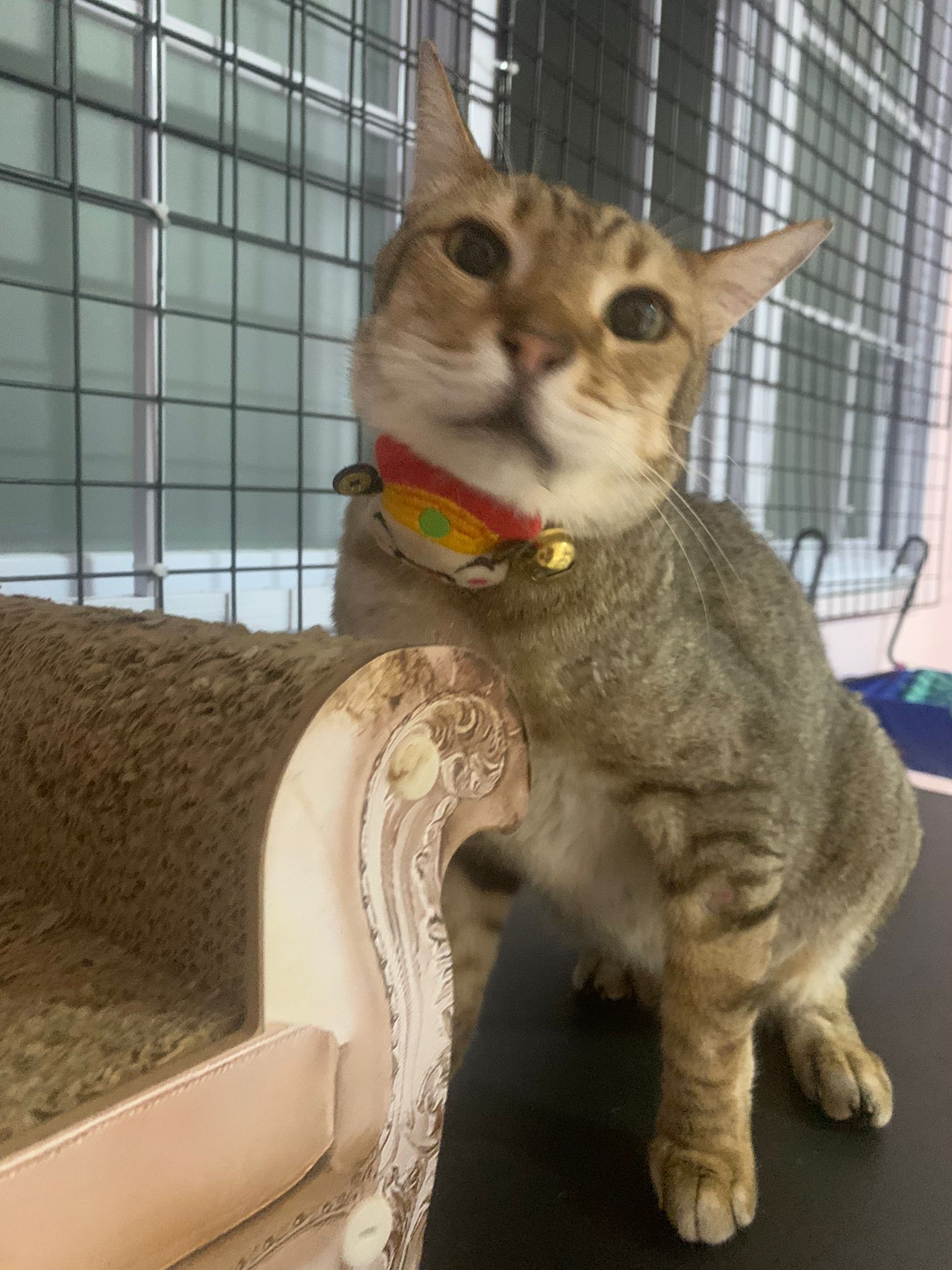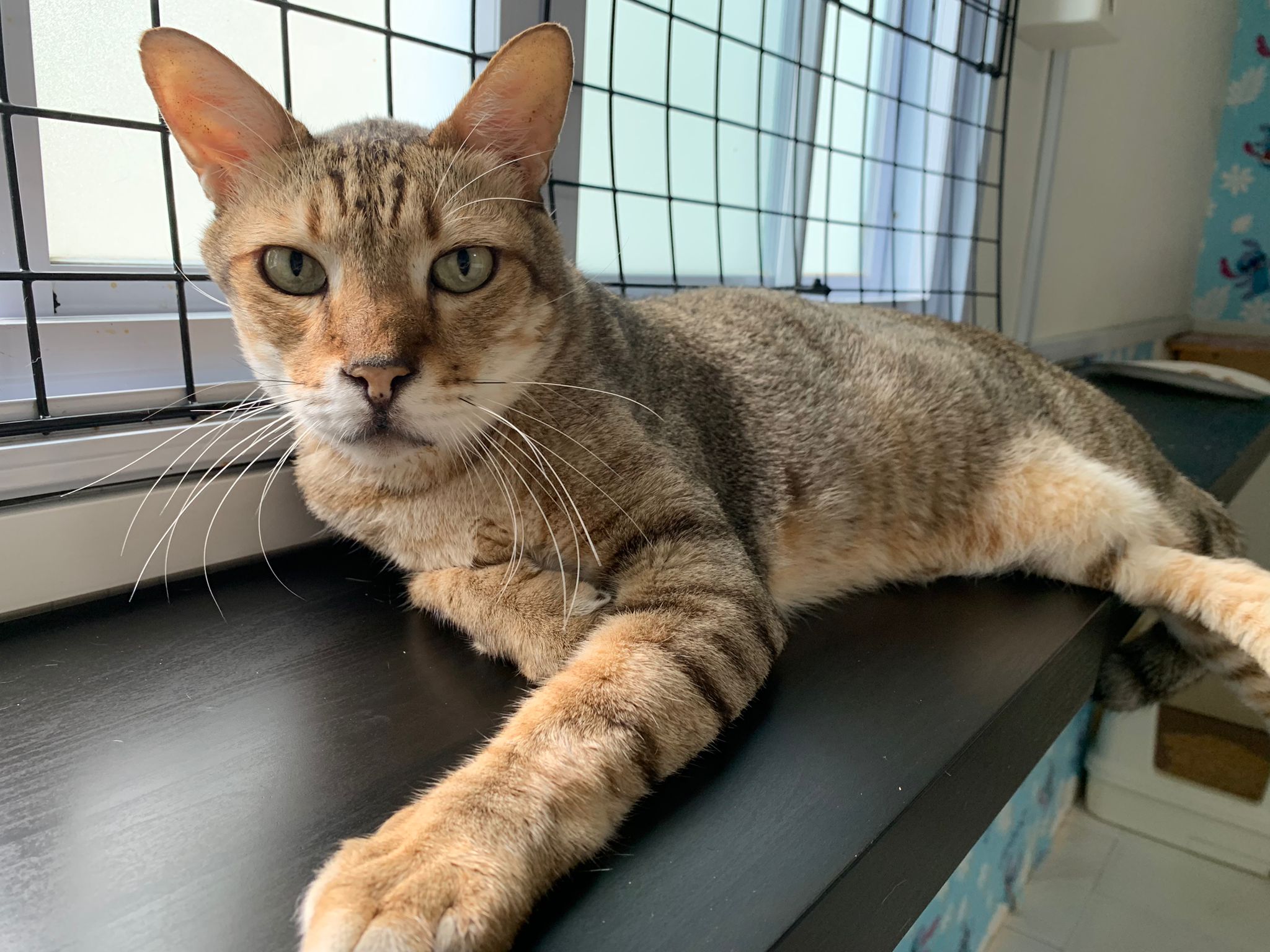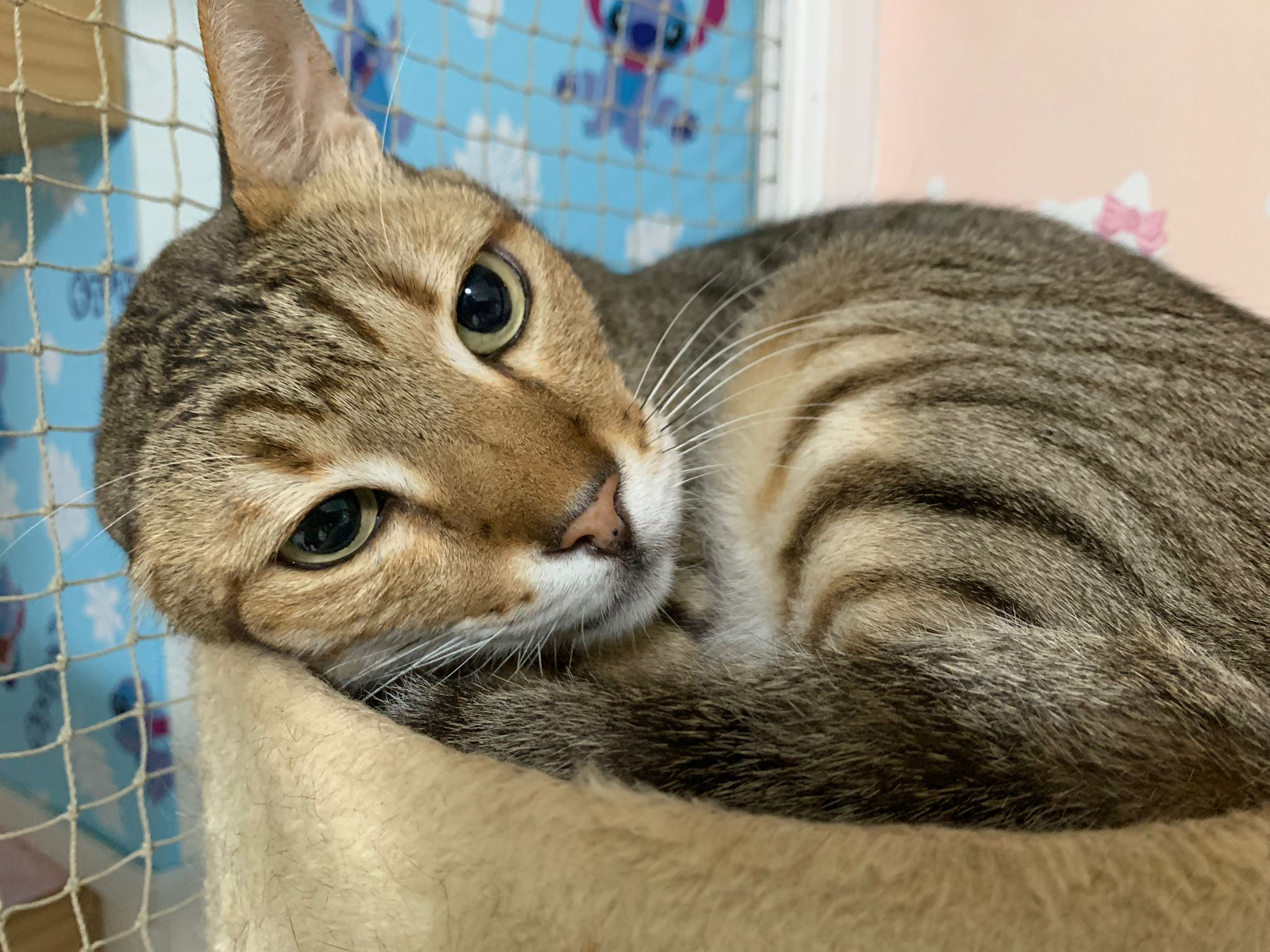 A very muscular boy, can be bad tempered, tend to eat food fast and vomit thereafter. Love me sayang n kiss him, can belly rub but again, have to be careful in case he got angry n his attack can be scary cos he is really strong. To be adopted with his brother Daring.