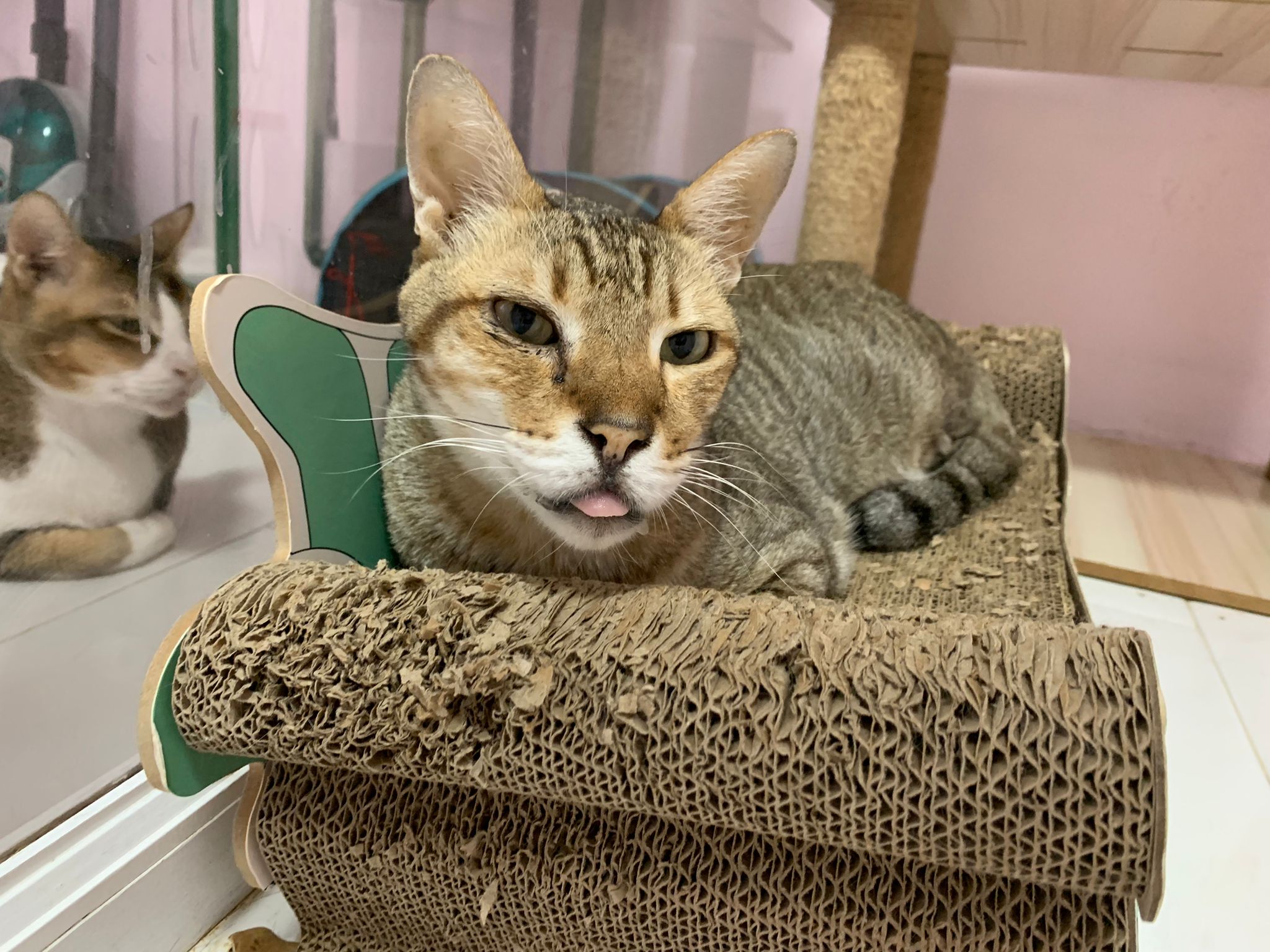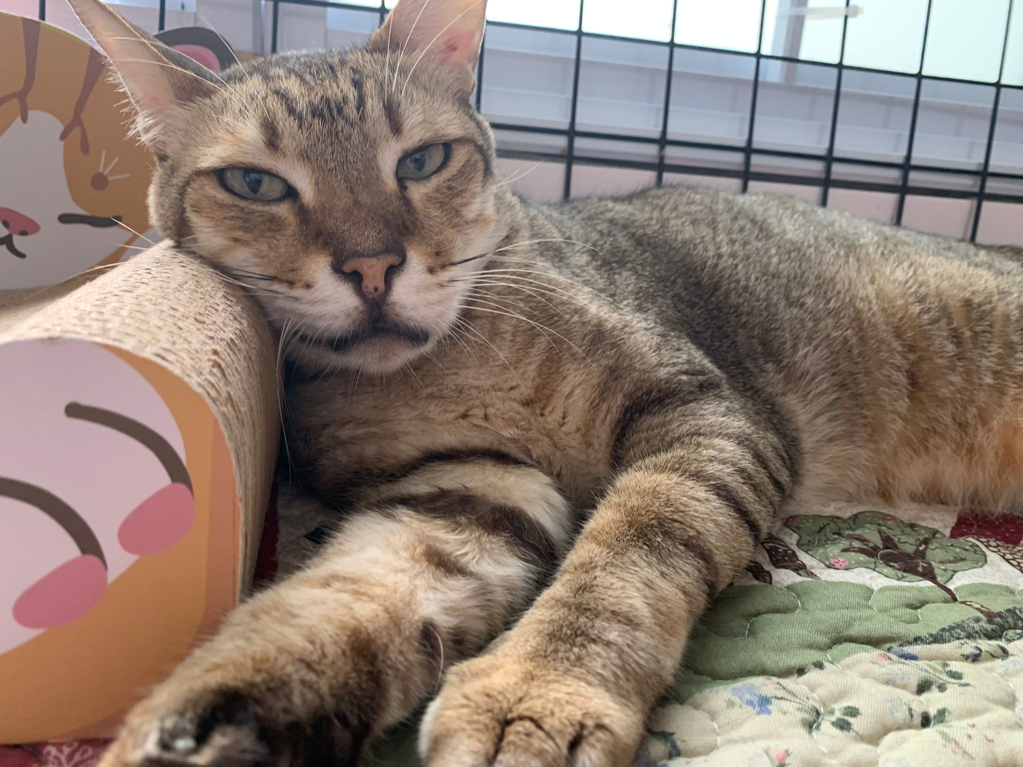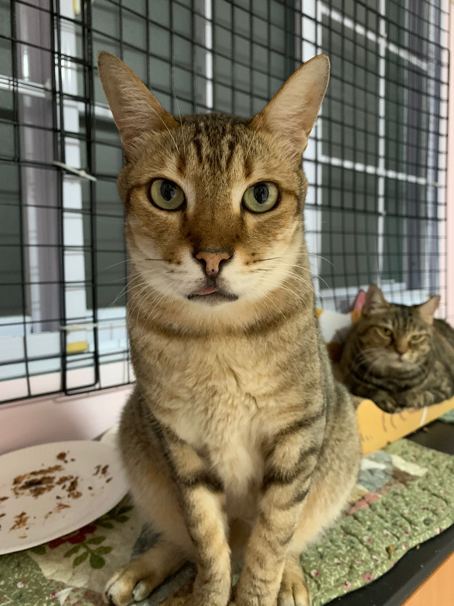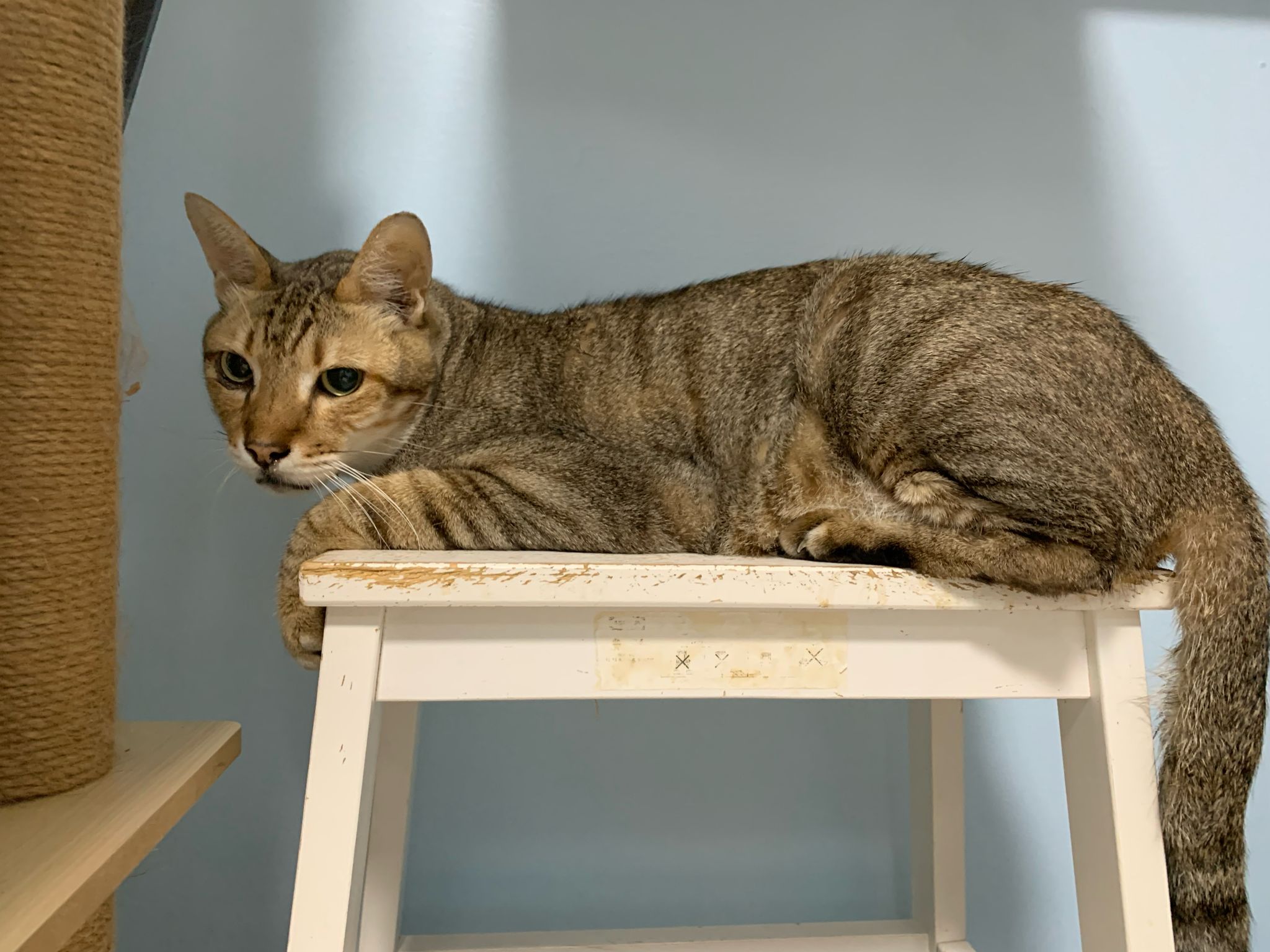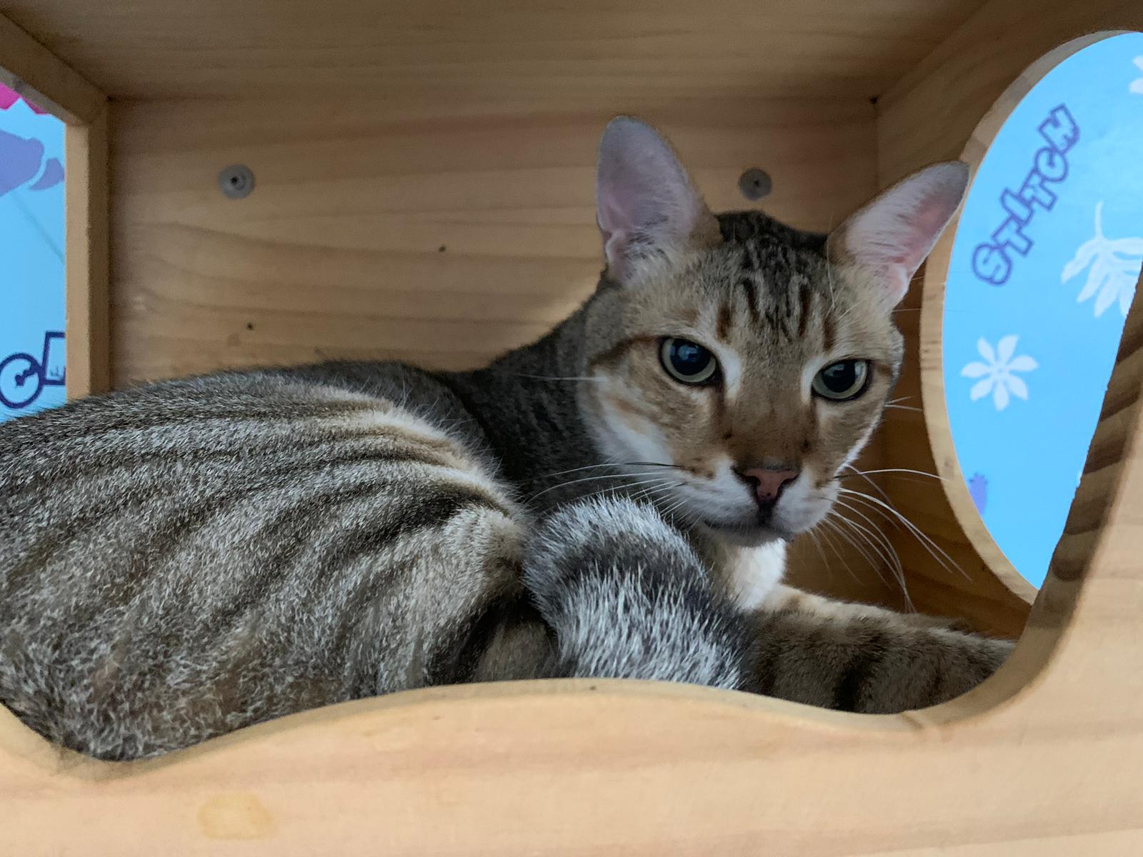 A very muscular boy, can be bad tempered, tend to eat food fast and vomit thereafter. Love me sayang n kiss him, can belly rub but again, have to be careful in case he got angry n his attack can be scary cos he is really strong. To be adopted with his brother Daring.