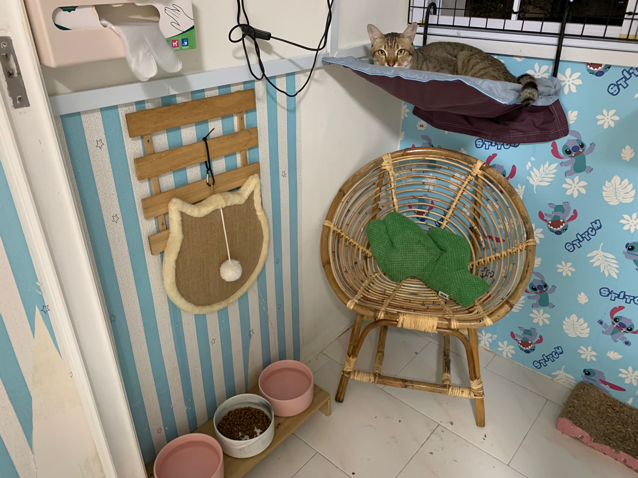 9Am+: he stand at door for me. But I can’t sayang him told him I’ll go some food for them first then later then can come in, then he go hide in the tv condo. Didn’t come out for food