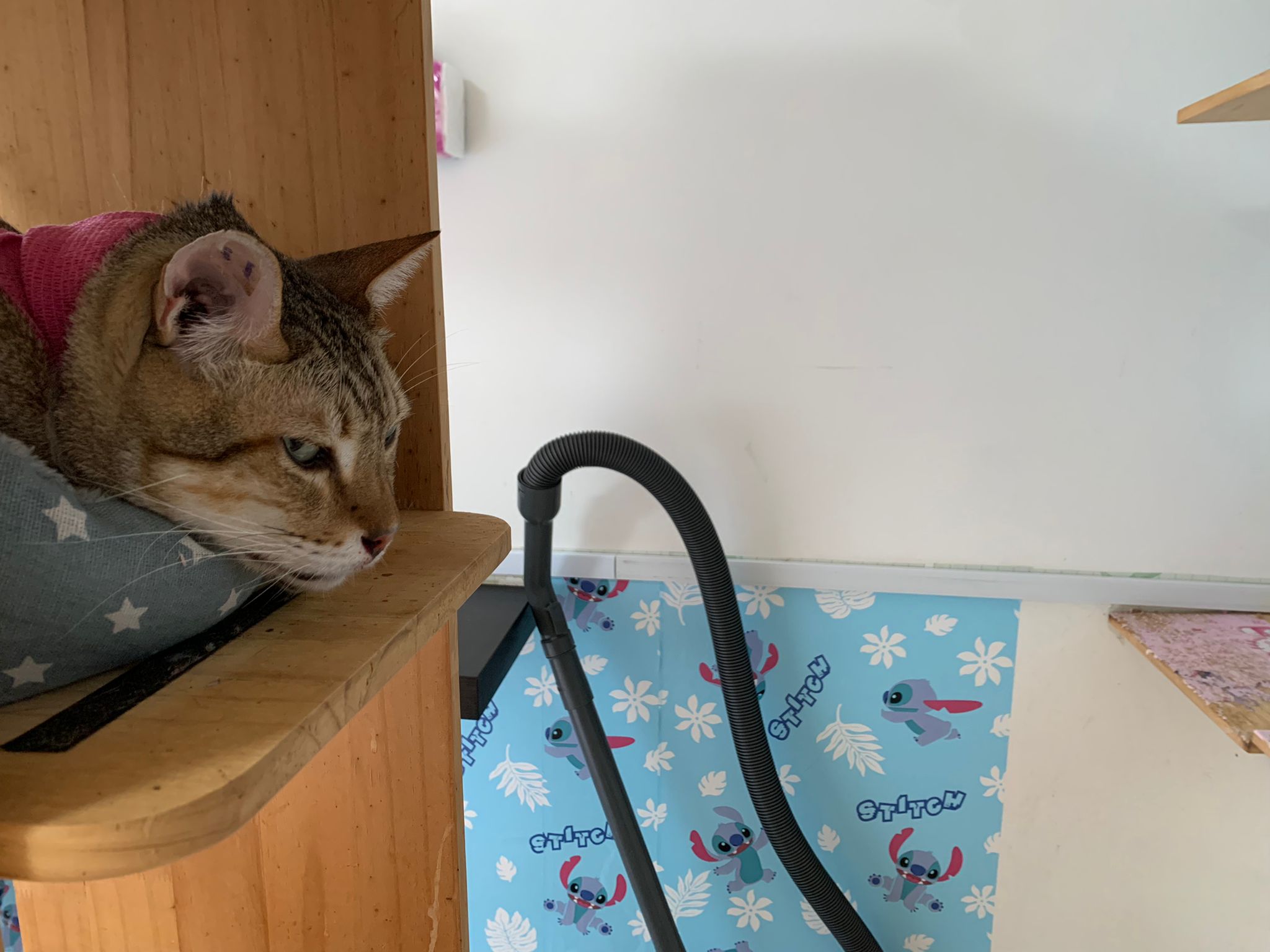 3pm: I’m back and he didn’t move at all yet. Food not touched at all. I have to use vacuum scare him out so I can Subcut him and given bupre n meloxicam.