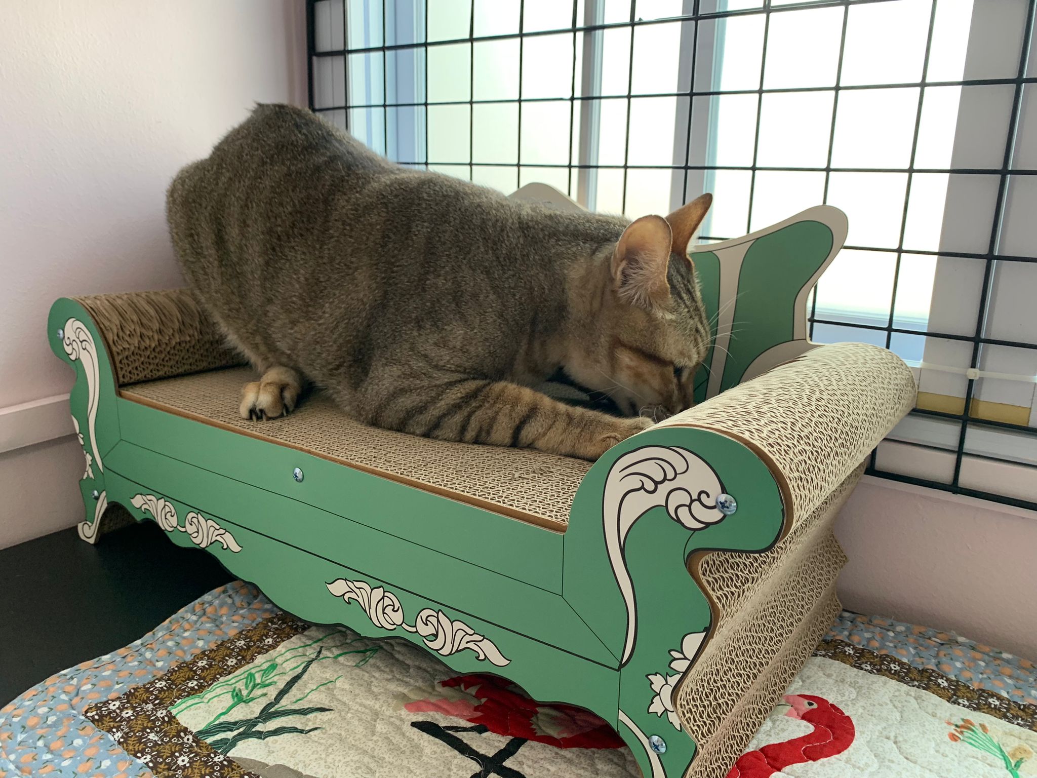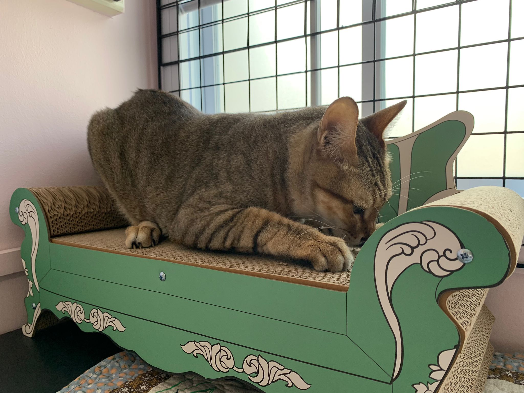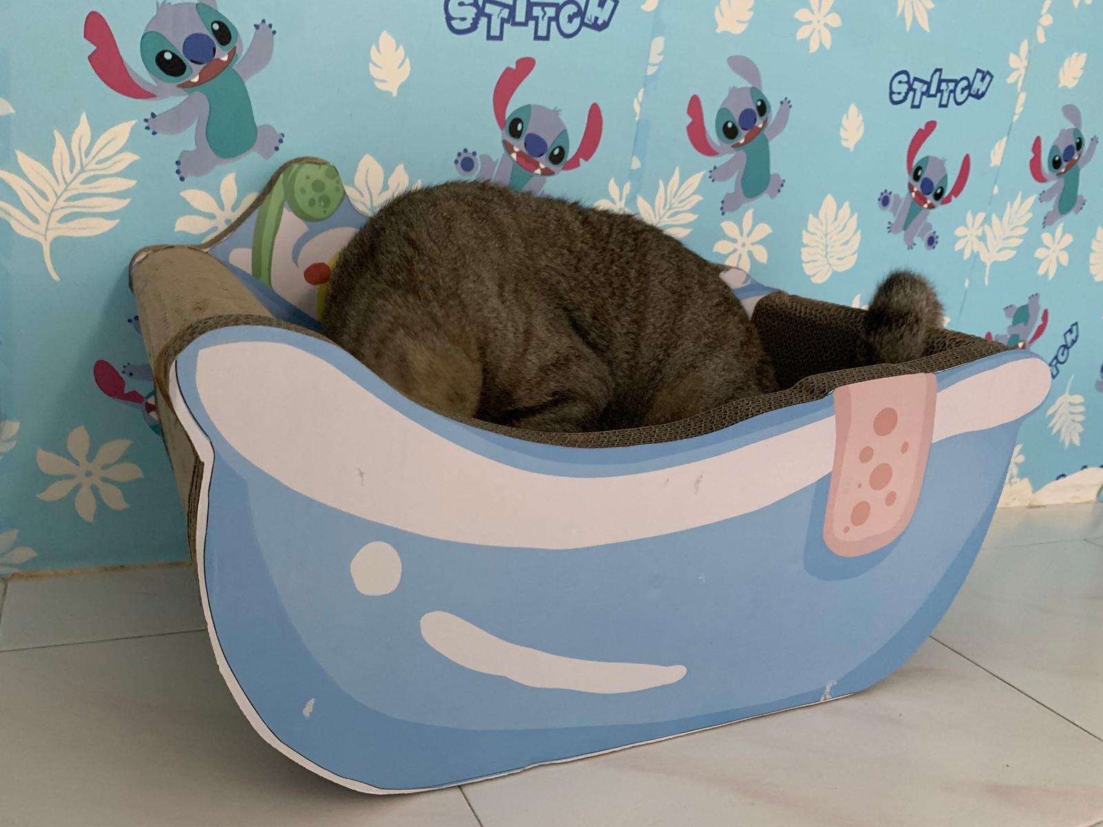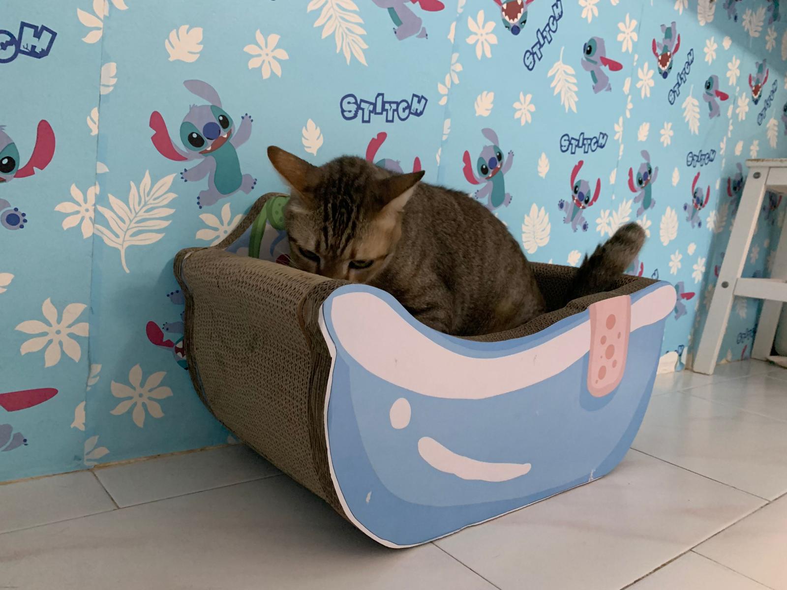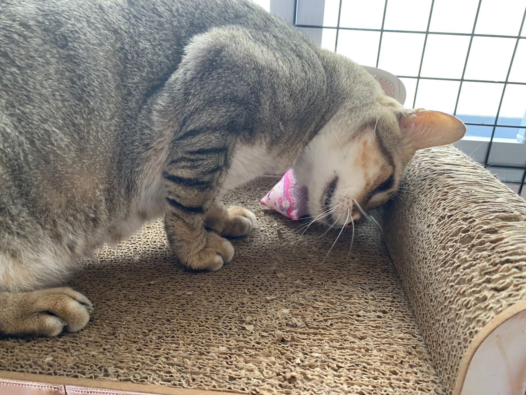 * Hide in cardboard I got A scare – look sianz n blur – think is Cos of the can of catnip inside