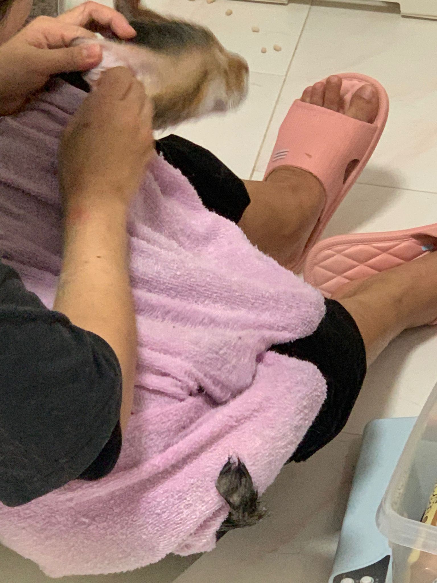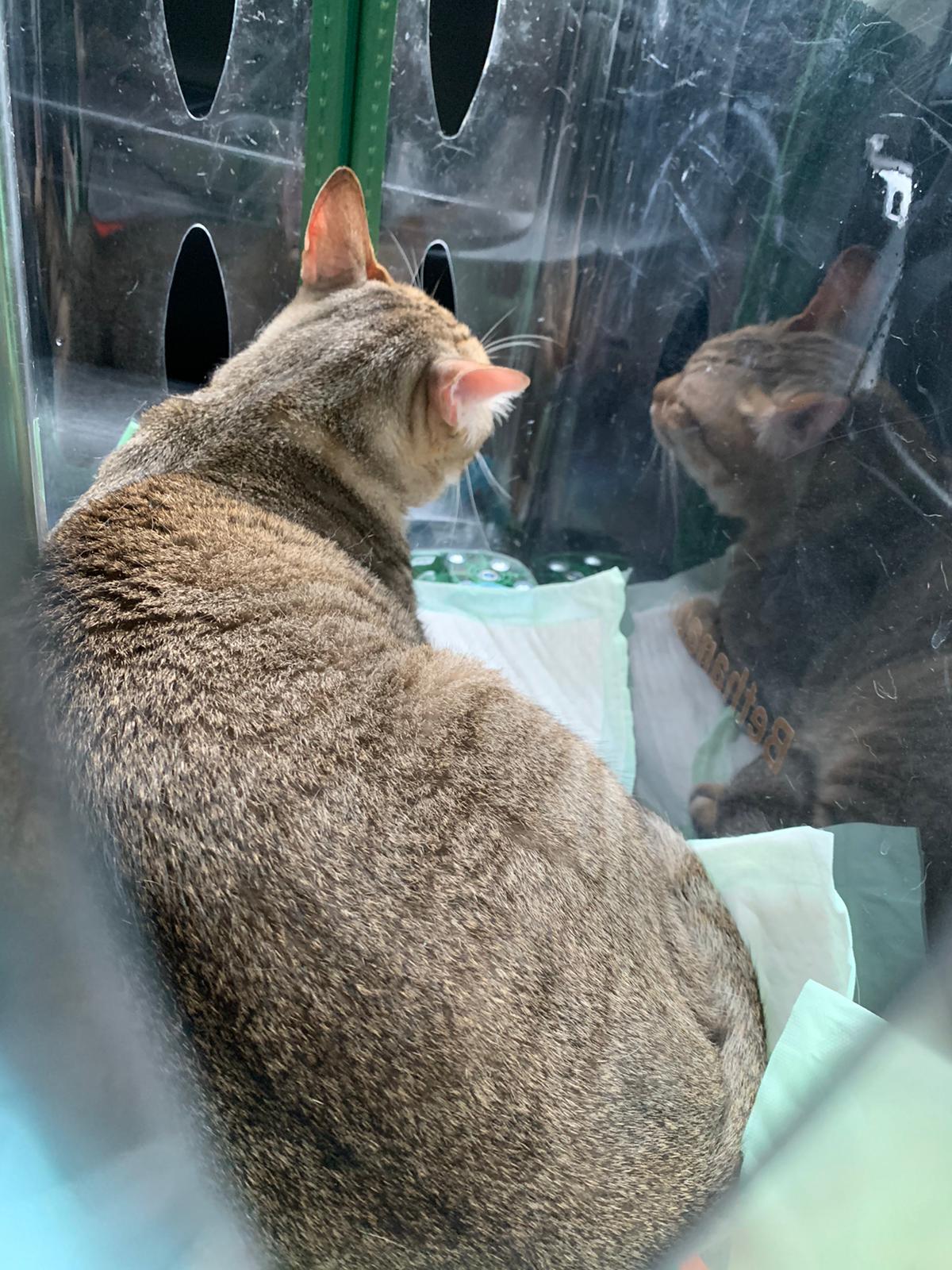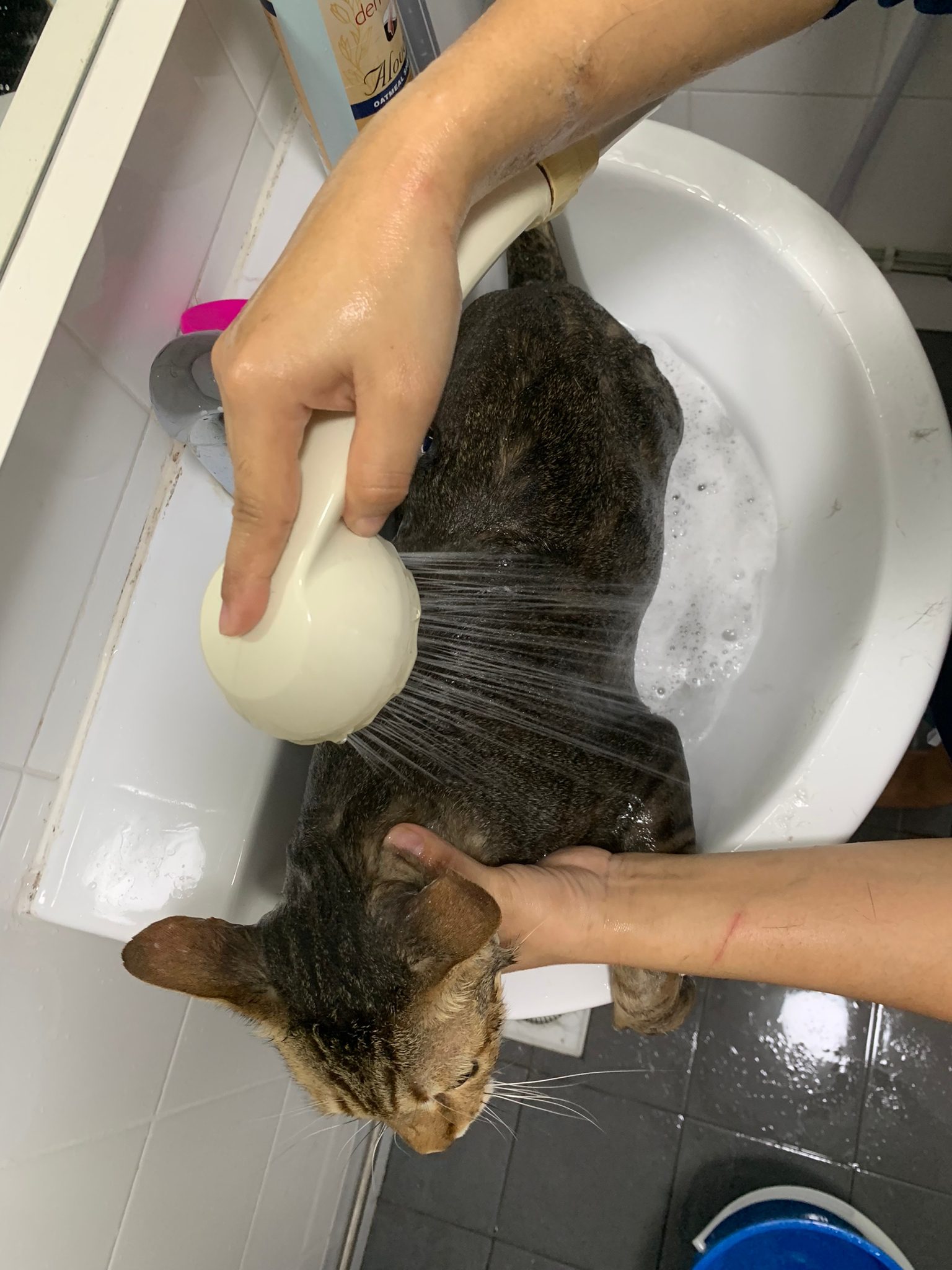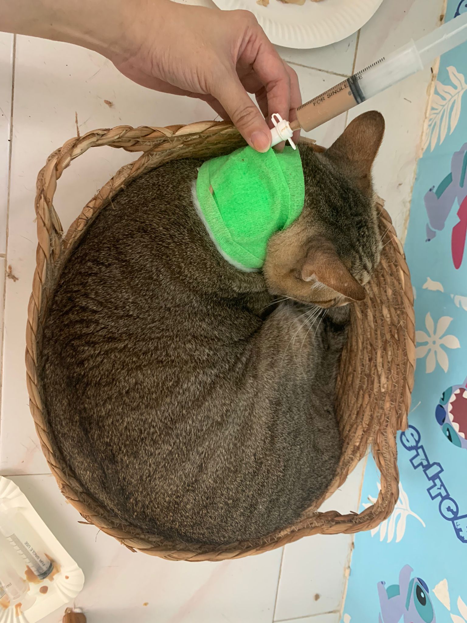 9.15pm: I’m back, but I know he is alive, I go sayang the rest for a while and I go in clear their bins, and sayang him and hug him. Clean his right eye w discharge for him. Given a bupre jab.