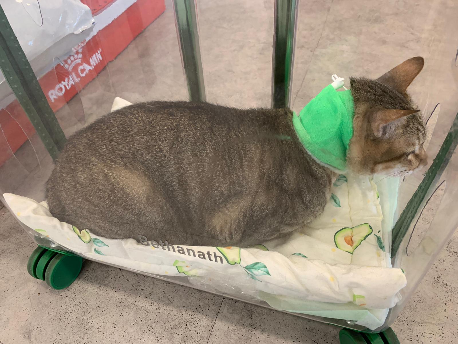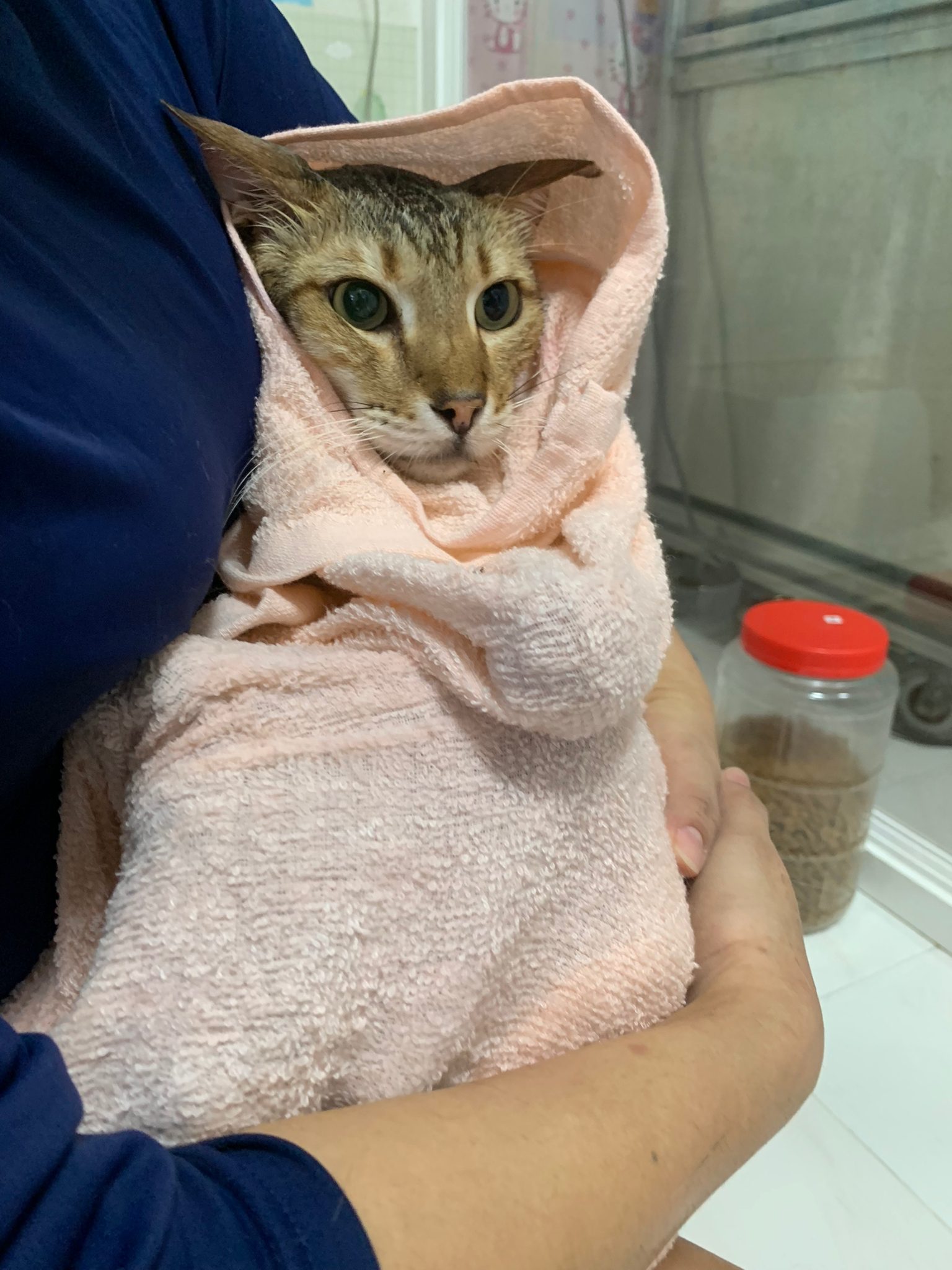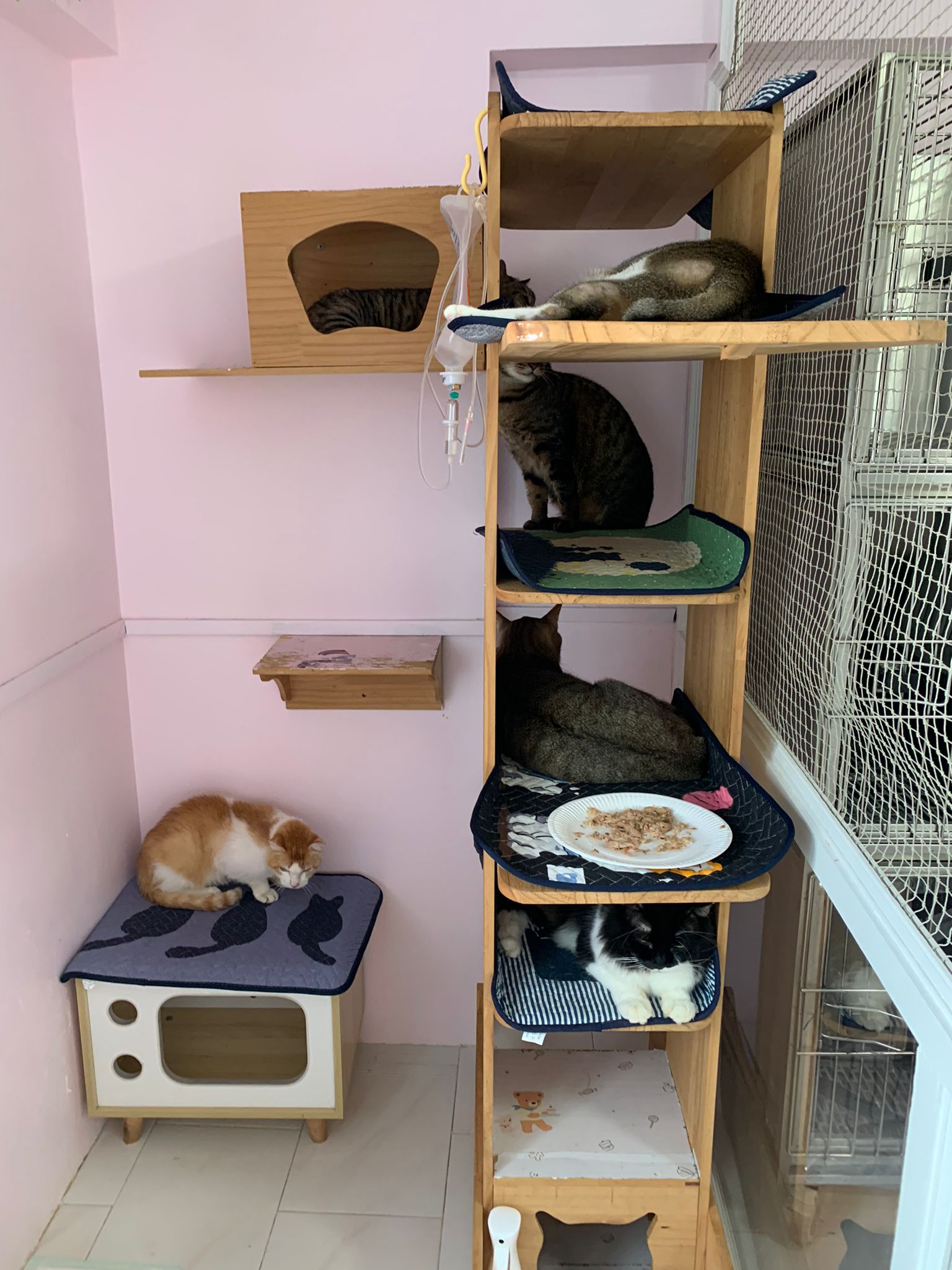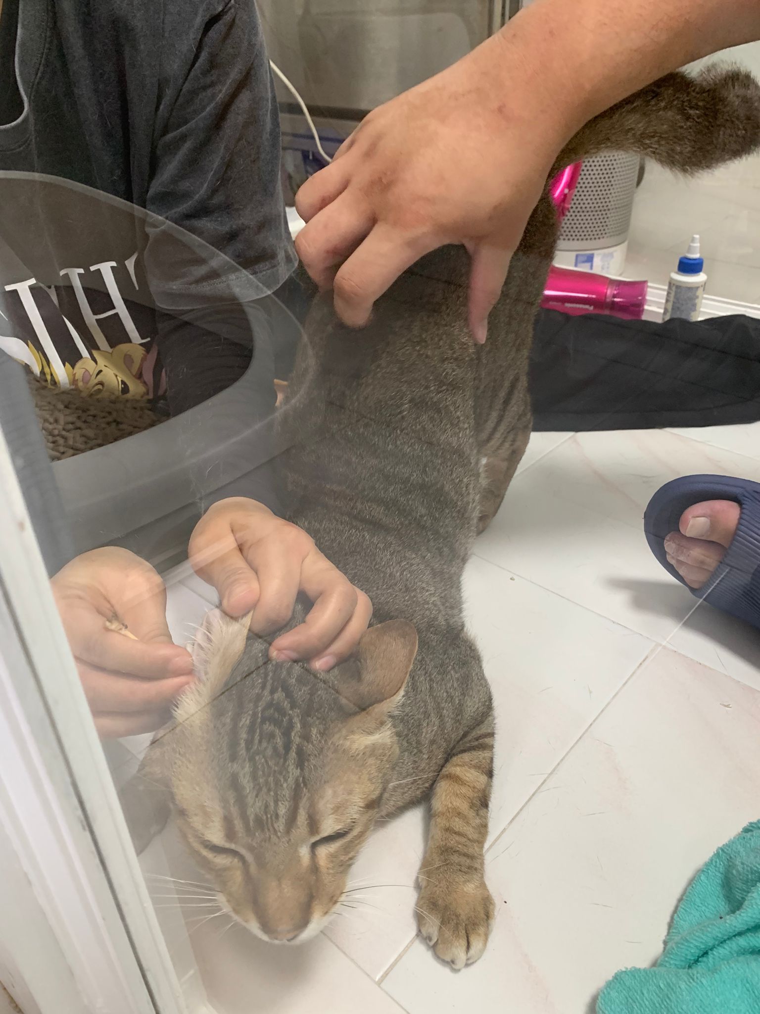 9.15pm: I’m back, but I know he is alive, I go sayang the rest for a while and I go in clear their bins, and sayang him and hug him. Clean his right eye w discharge for him. Given a bupre jab.