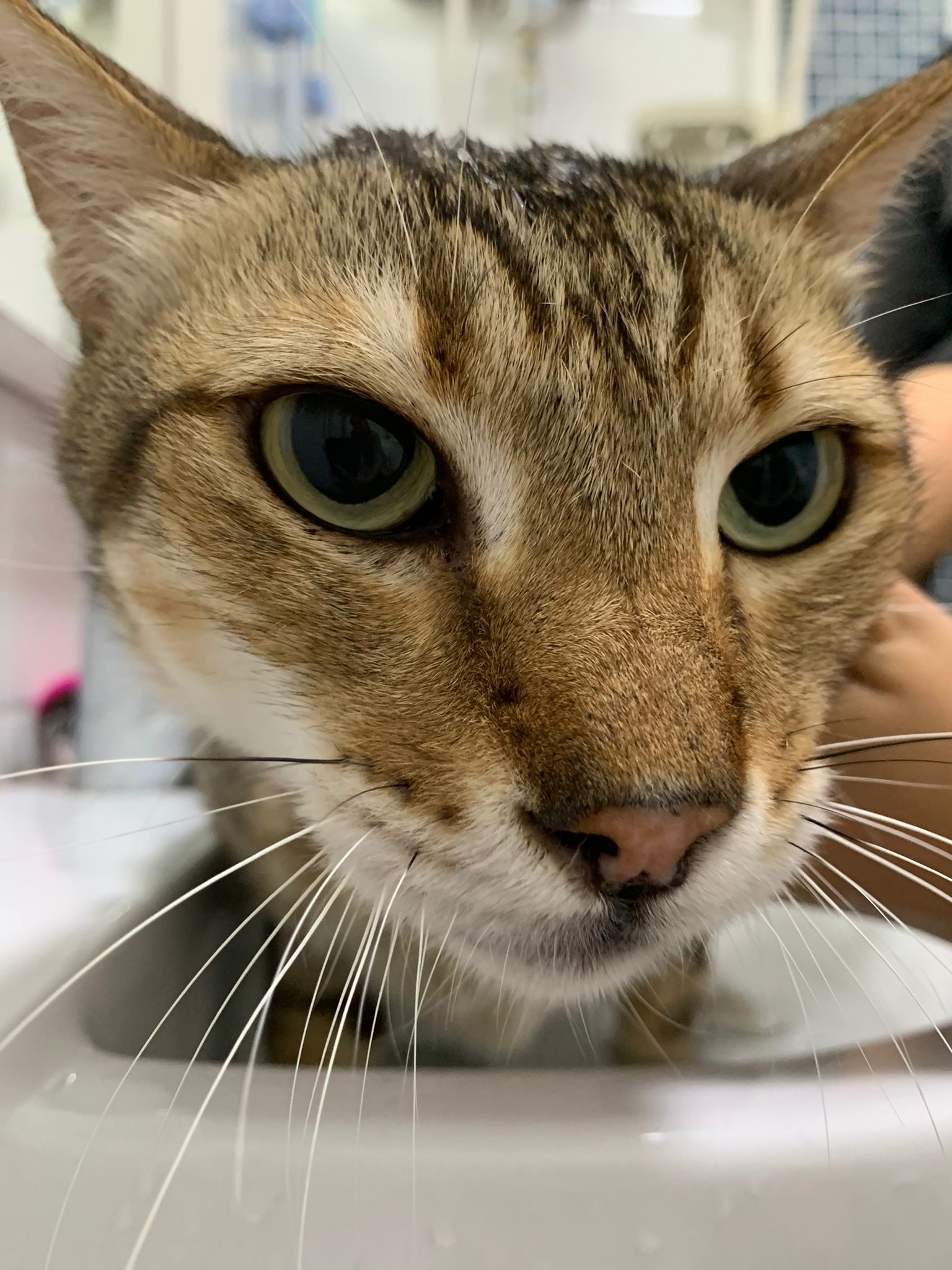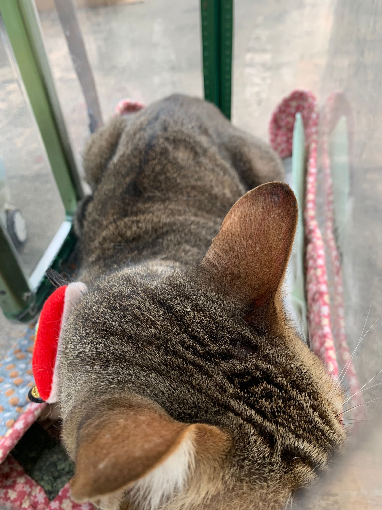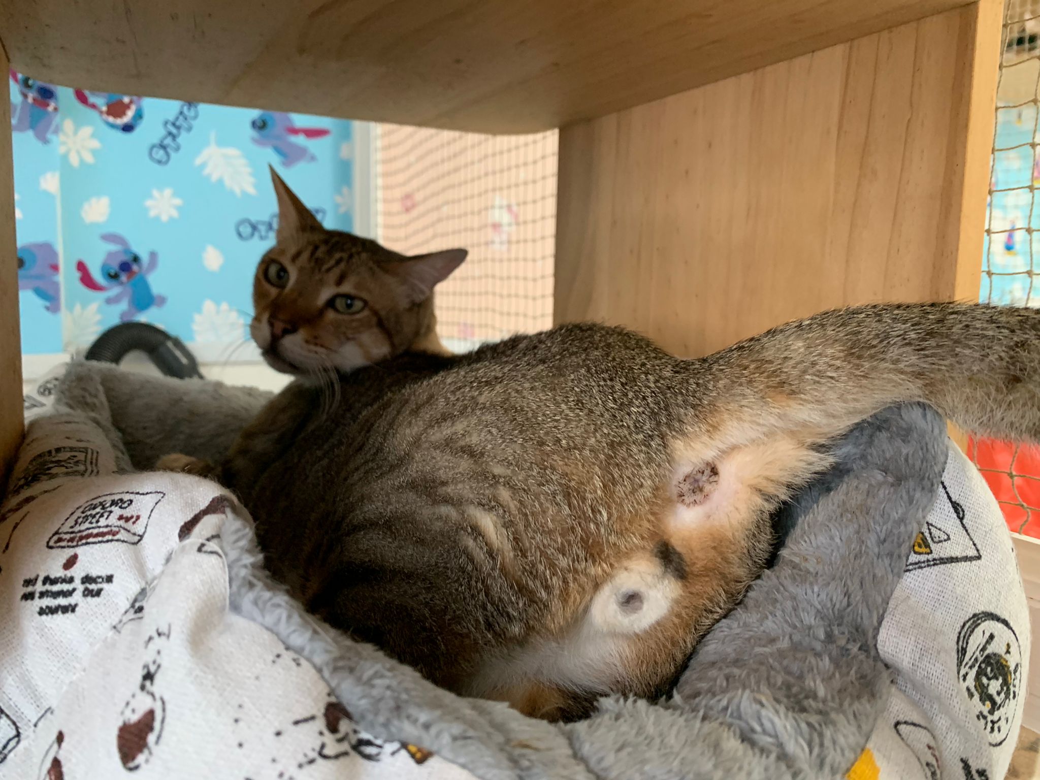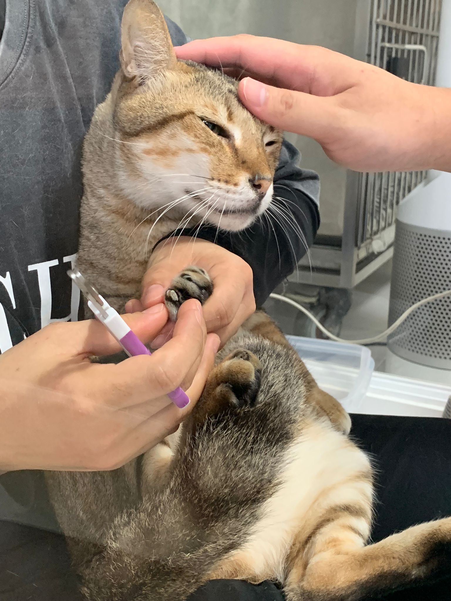 9.15pm: I’m back, but I know he is alive, I go sayang the rest for a while and I go in clear their bins, and sayang him and hug him. Clean his right eye w discharge for him. Given a bupre jab.
