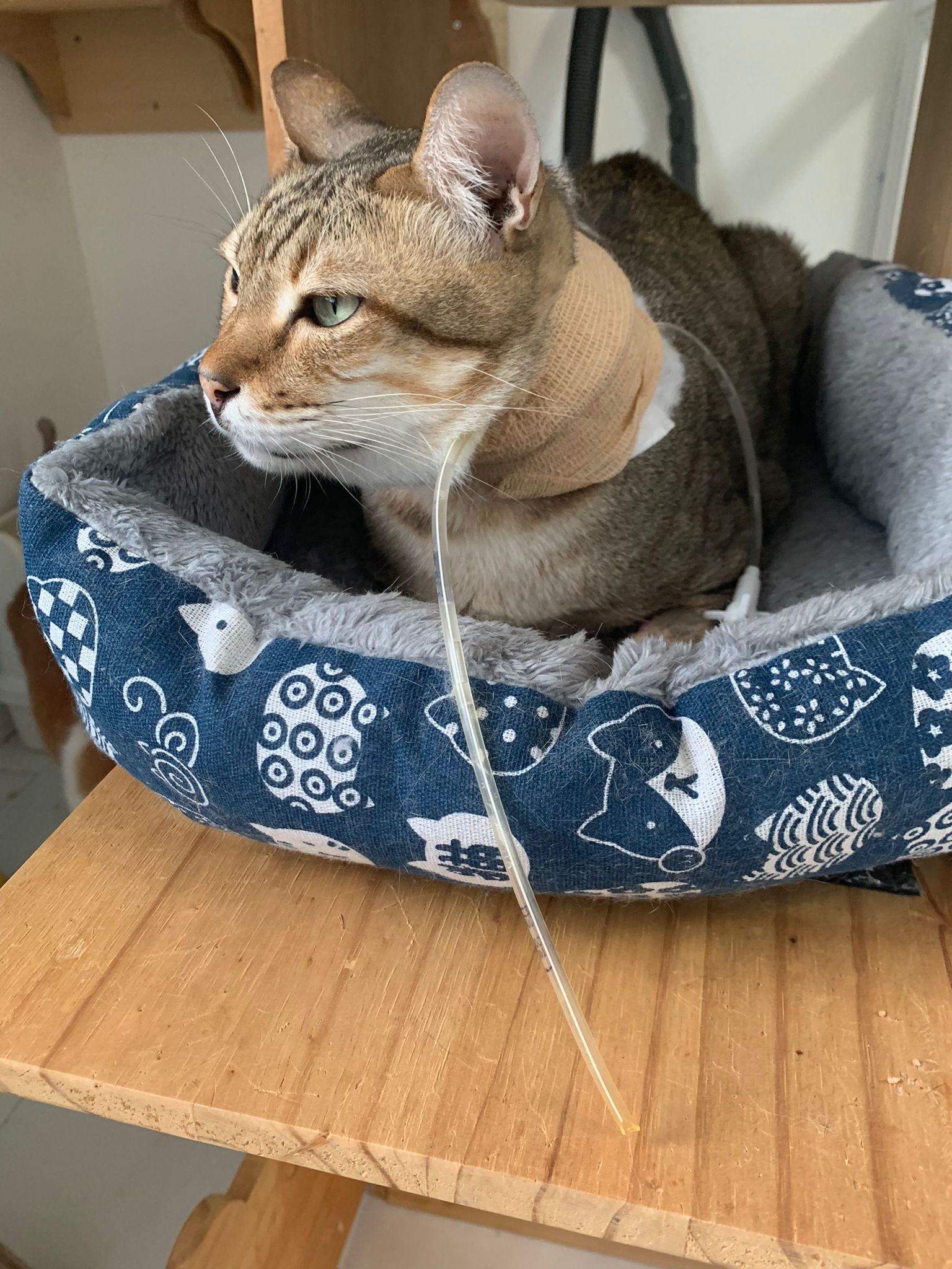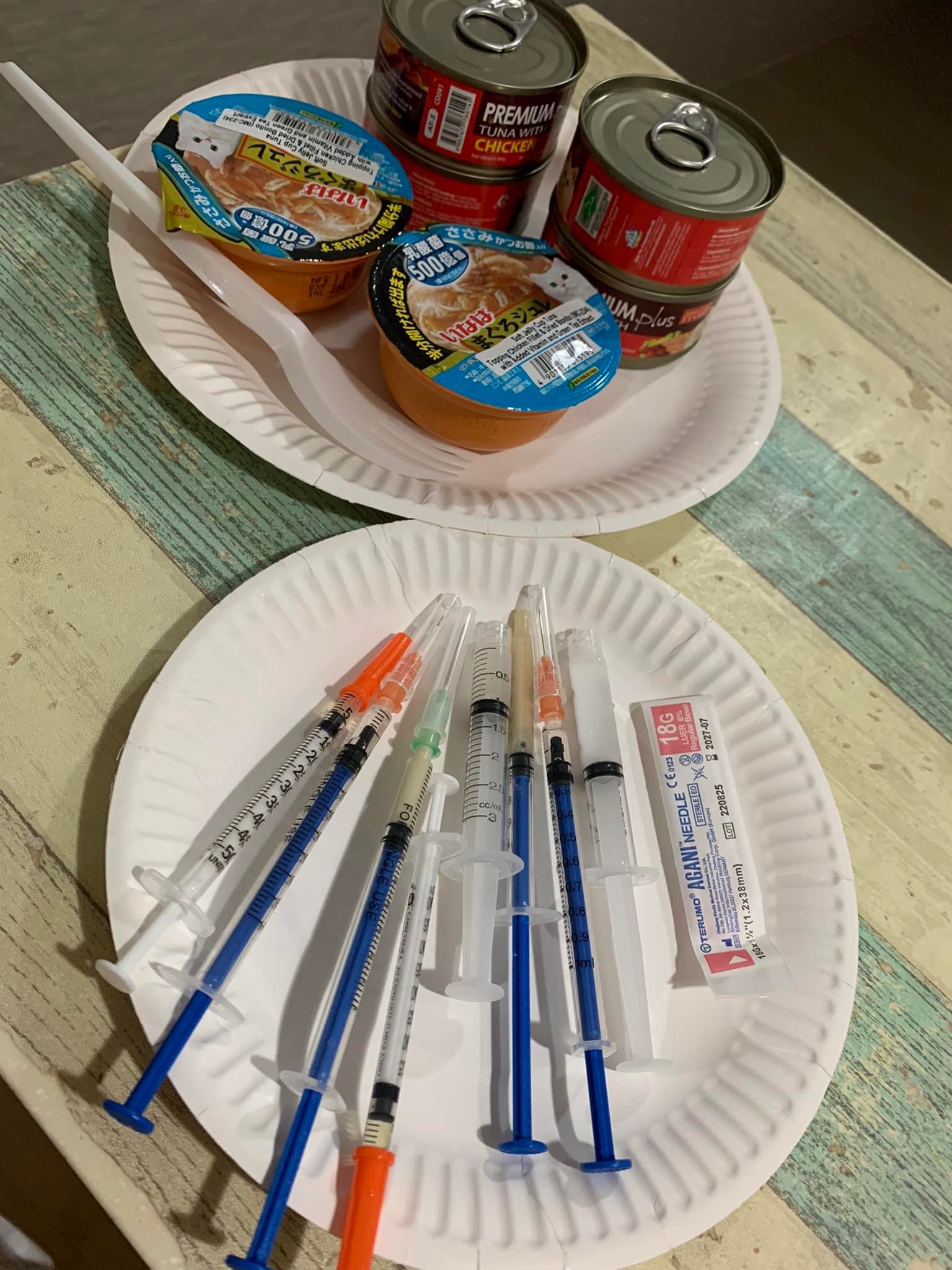 12.00pm: Bought the expensive doxy liquid.n tube is in. Going home, I going to syringe him some aixia oldie and later will go back after lunch do the rest of the med and stuff and syringe a/d after i bring blender to new house.