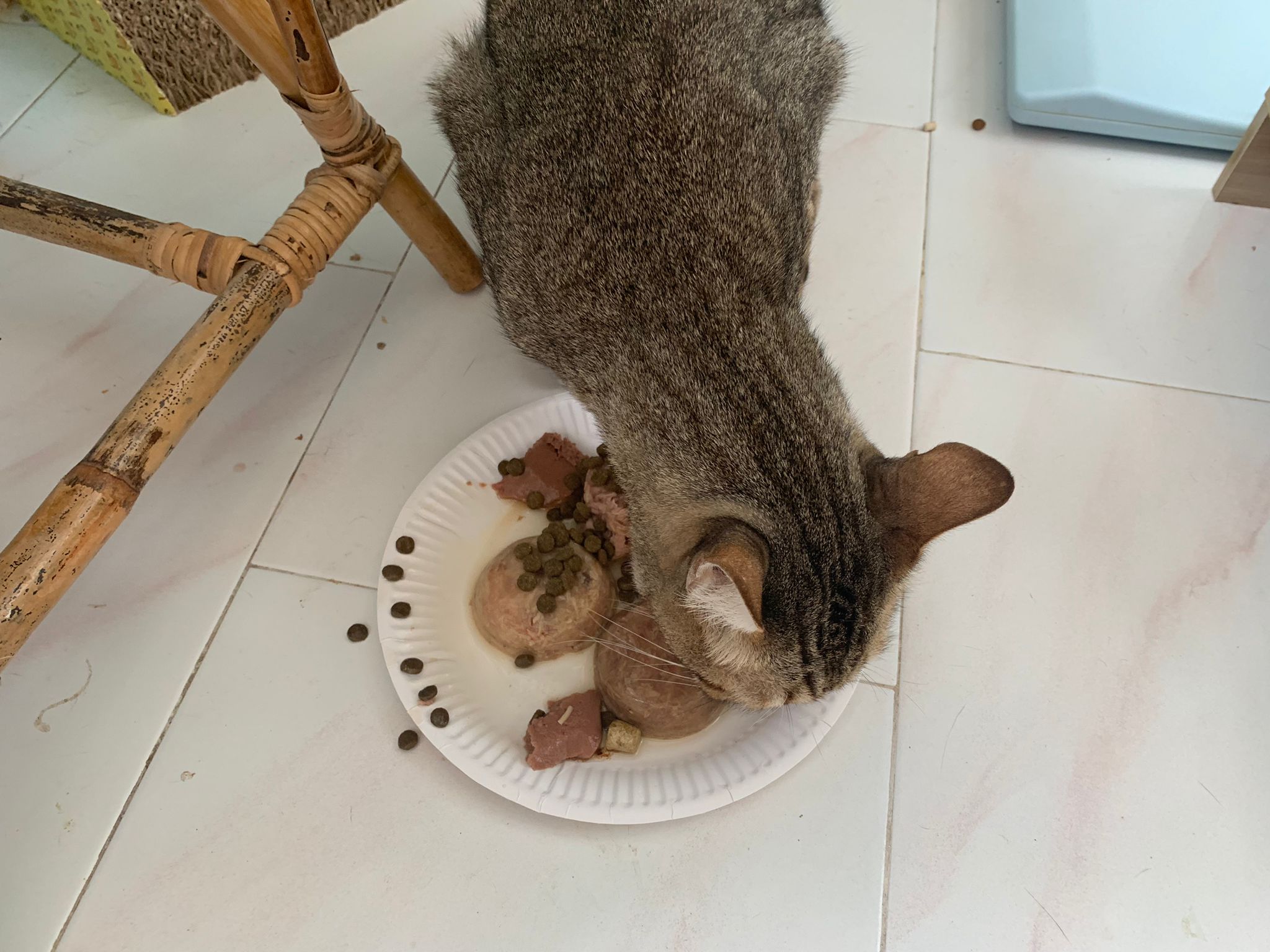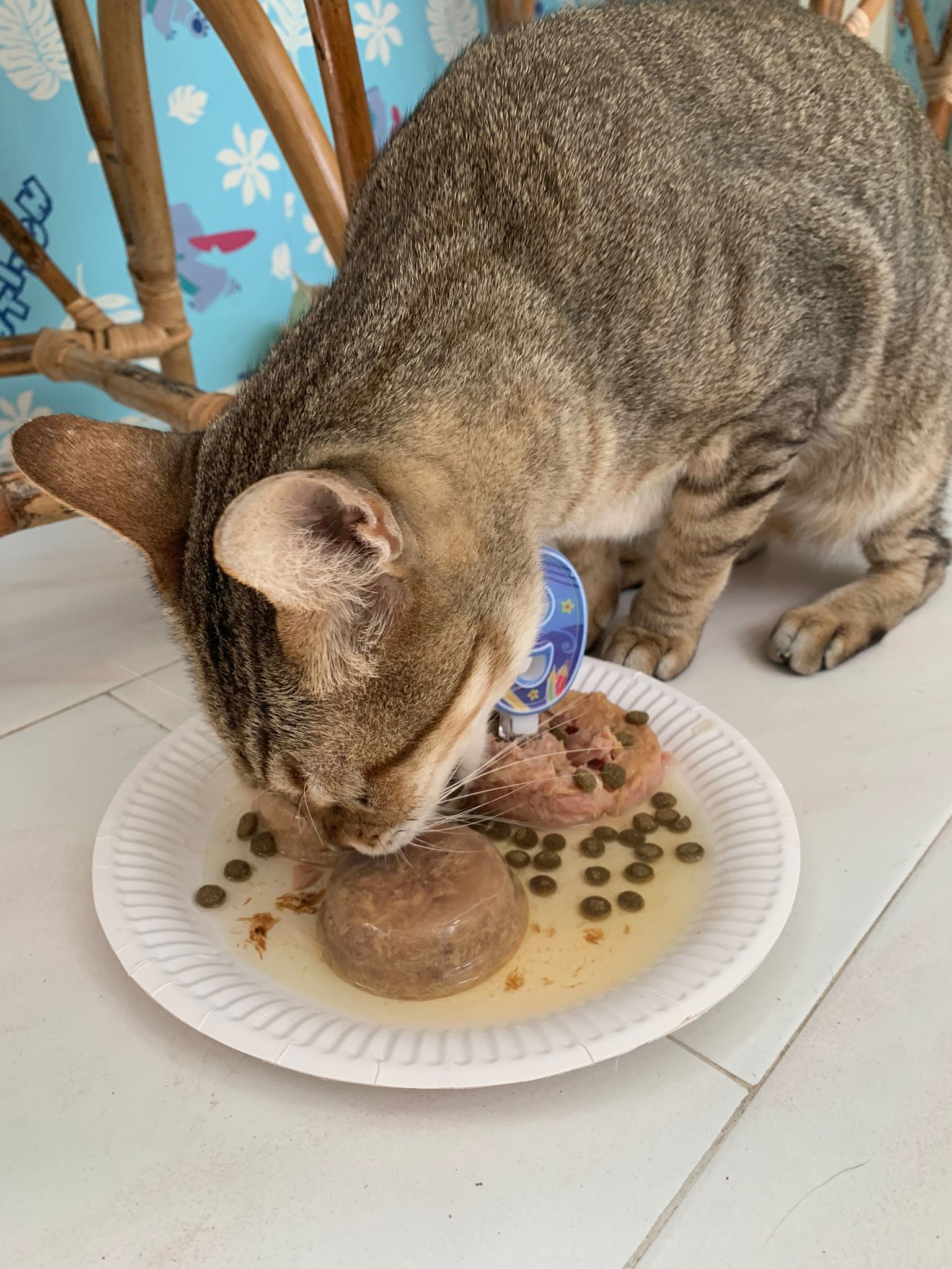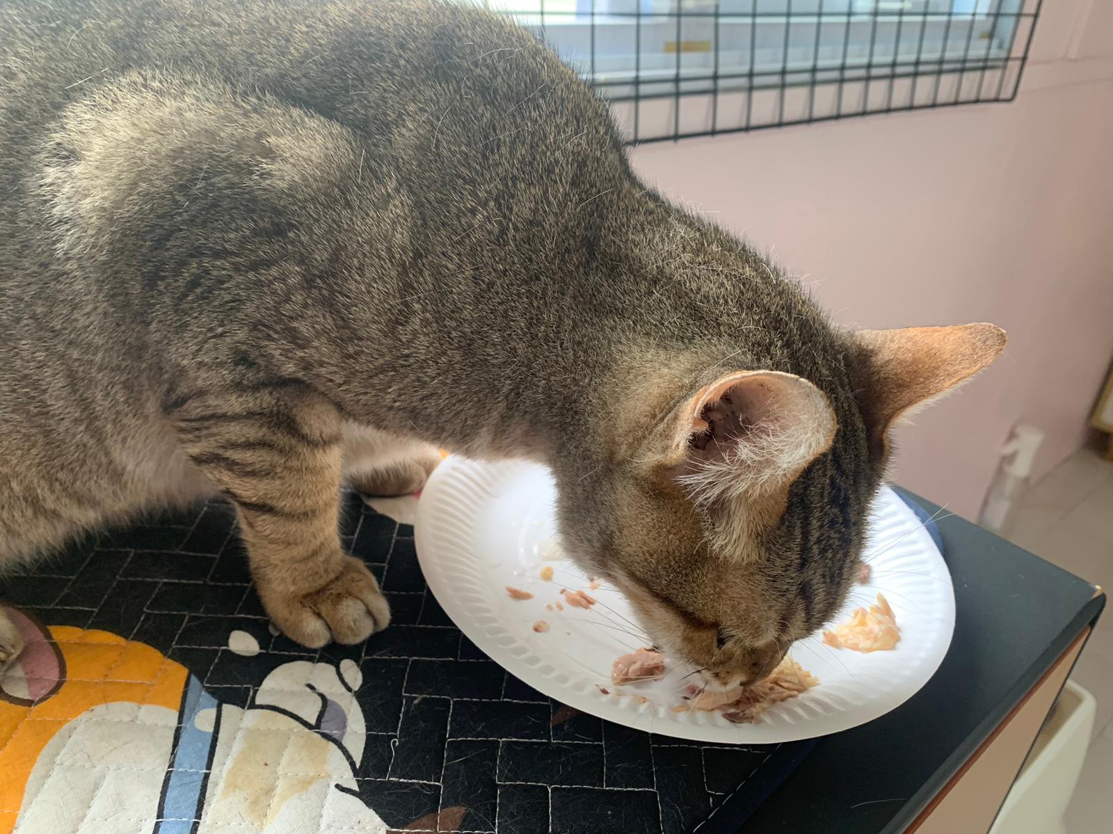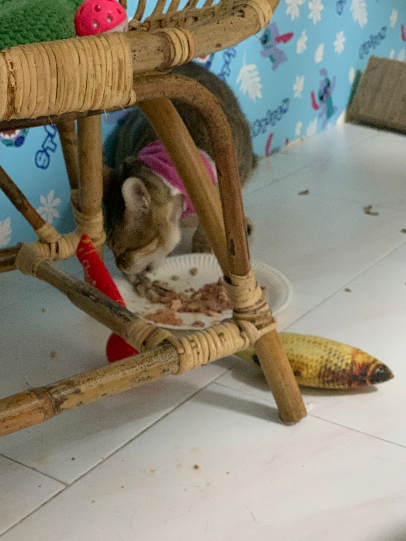 • night: alley ate gold d tuna w sardine n he vomit all the food out