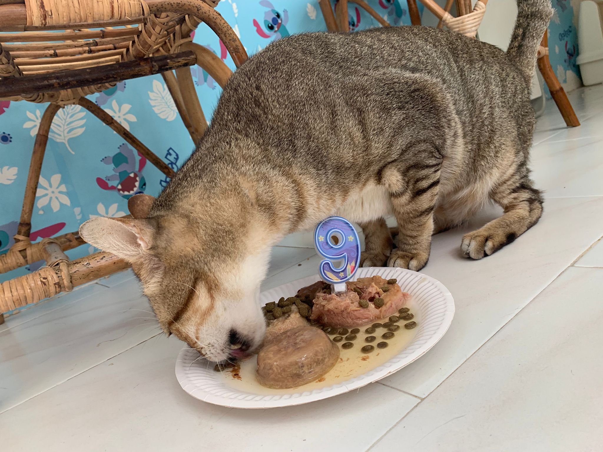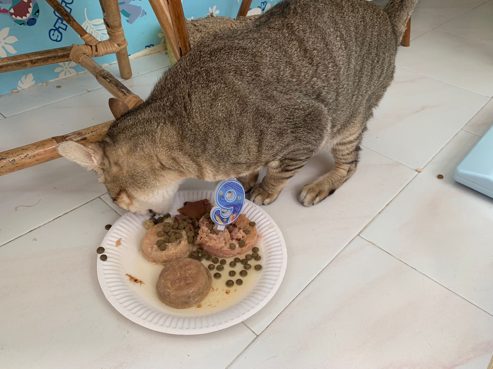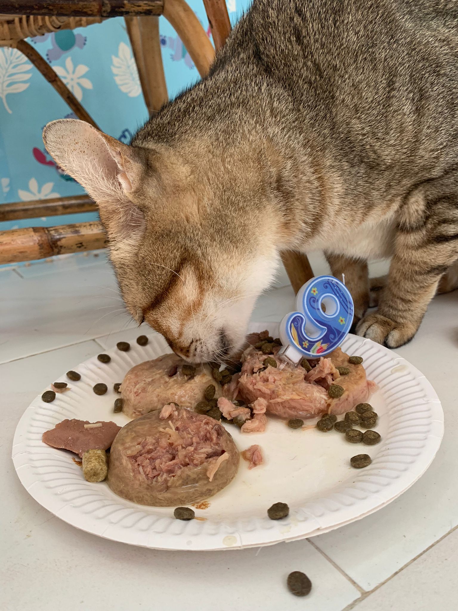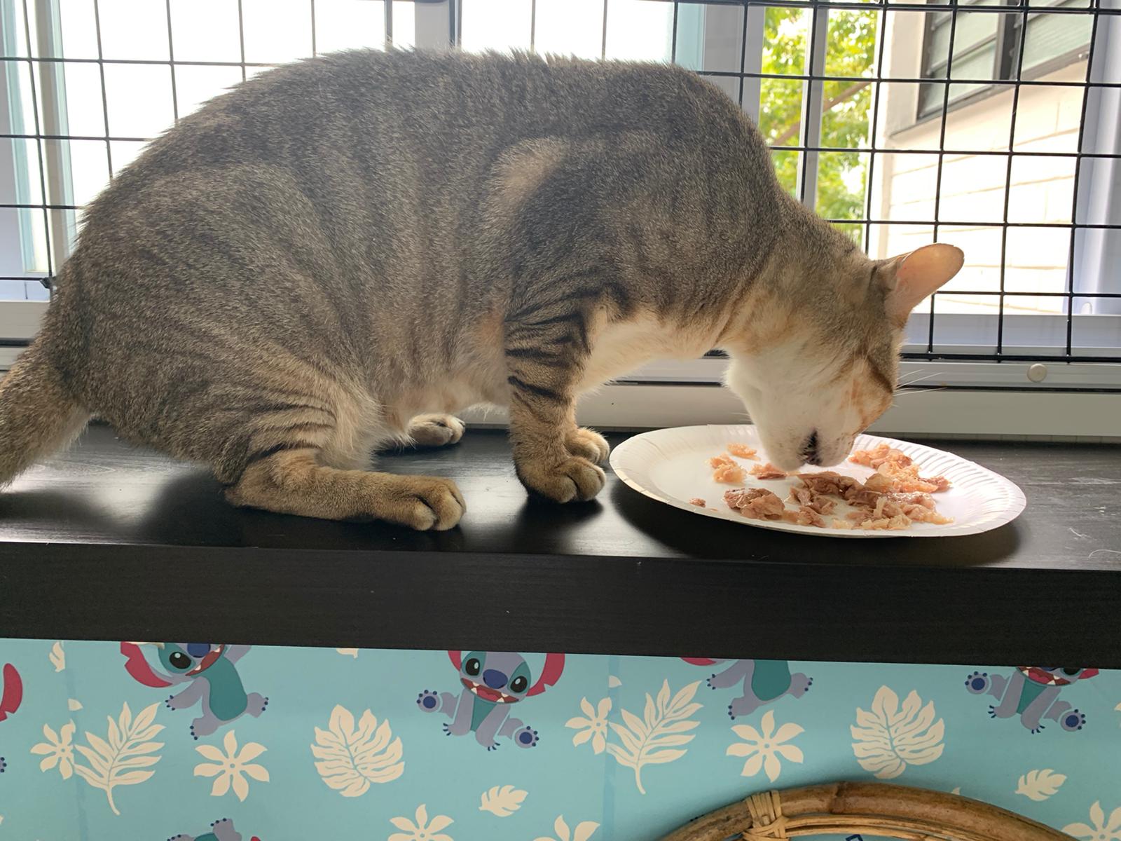• night: alley ate gold d tuna w sardine n he vomit all the food out