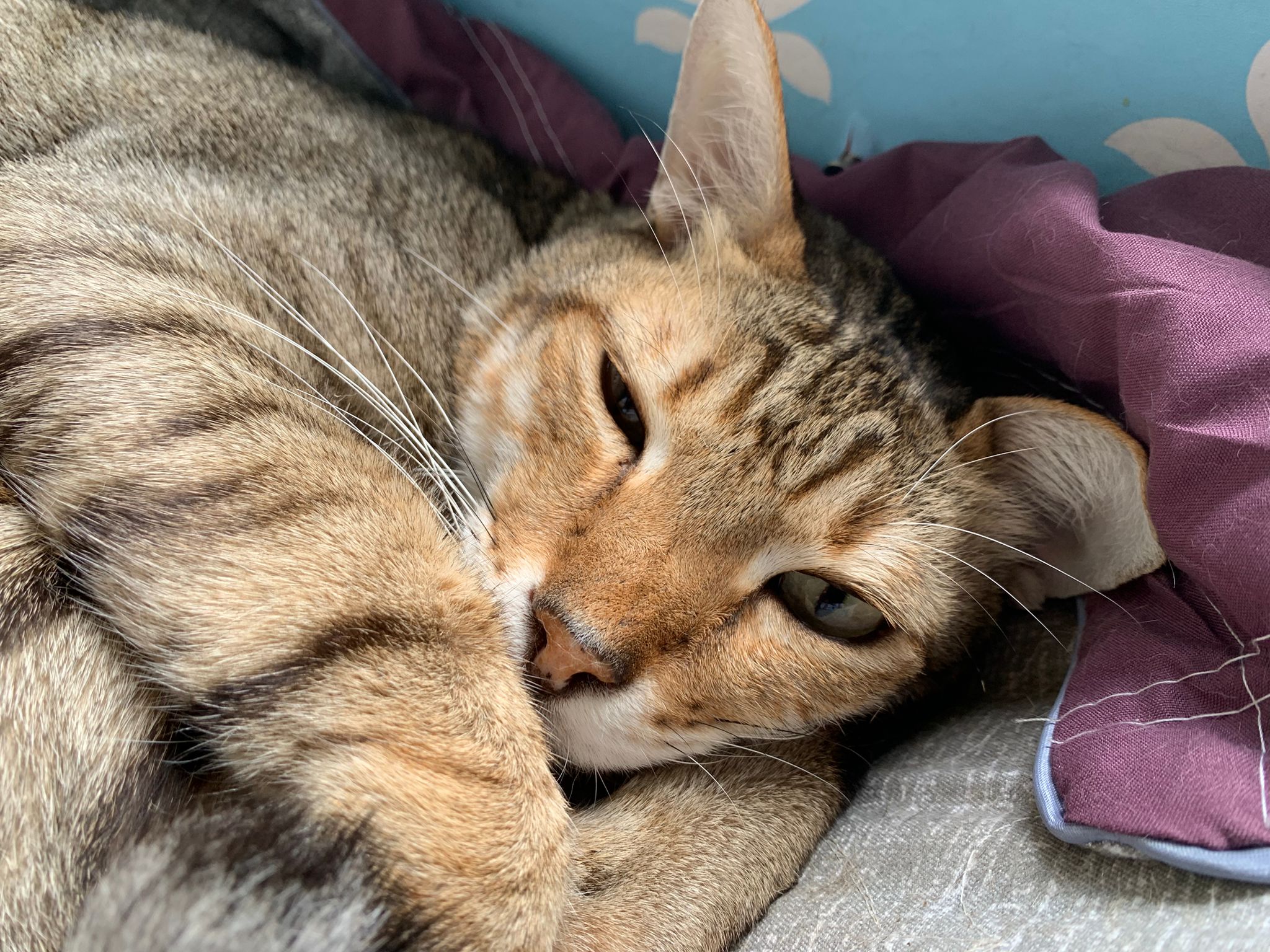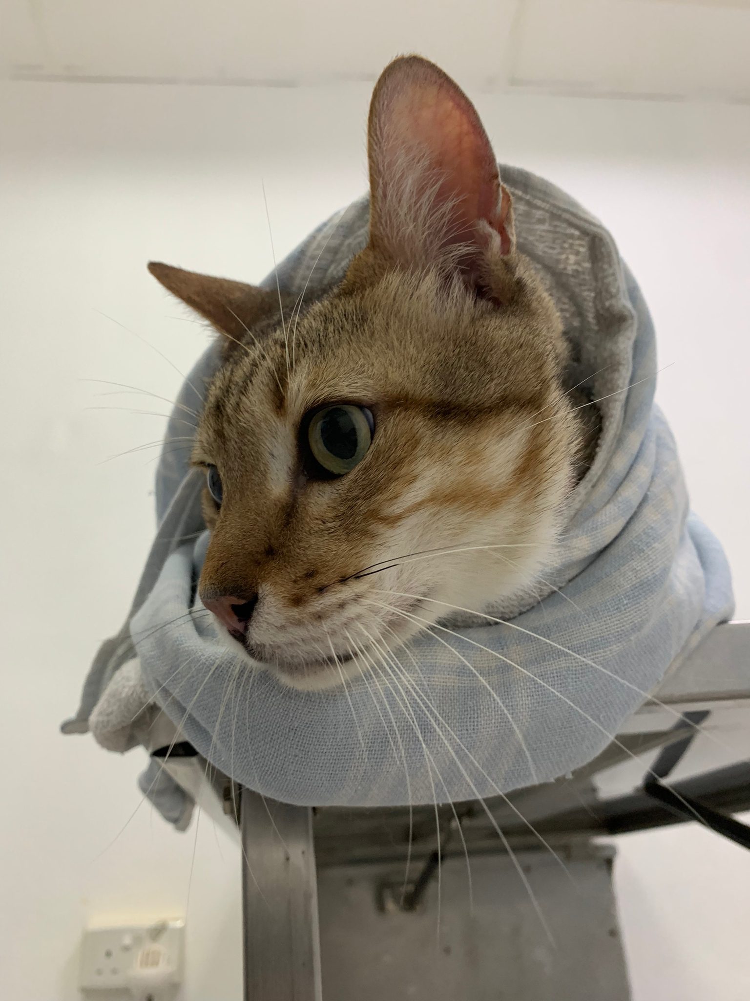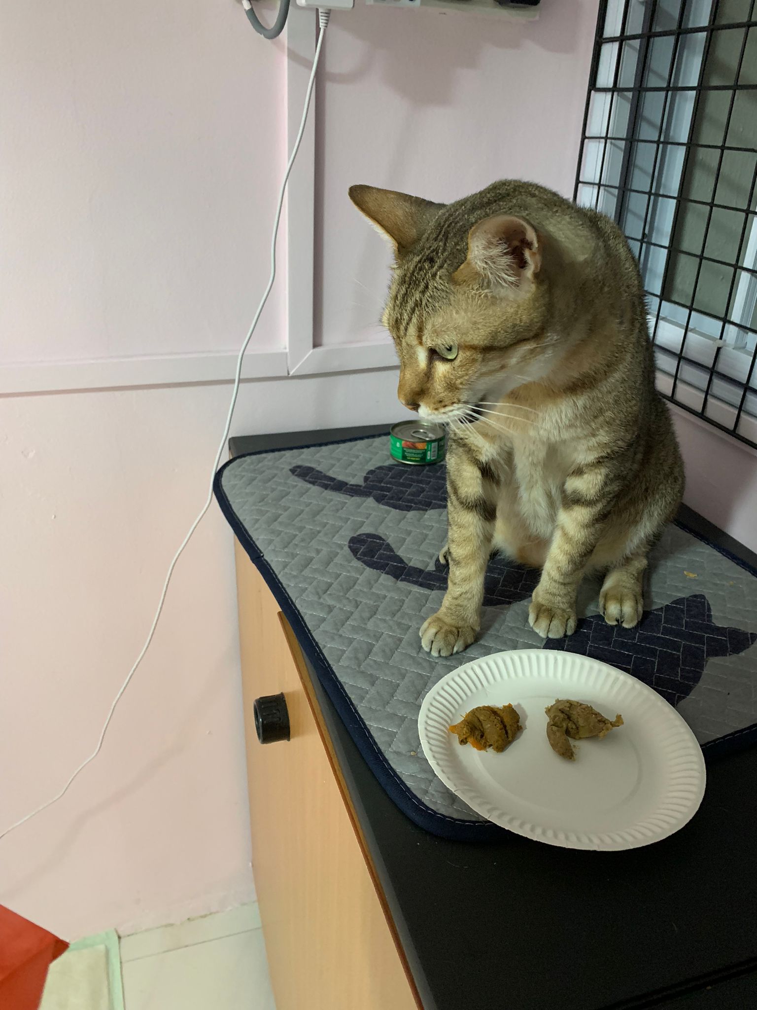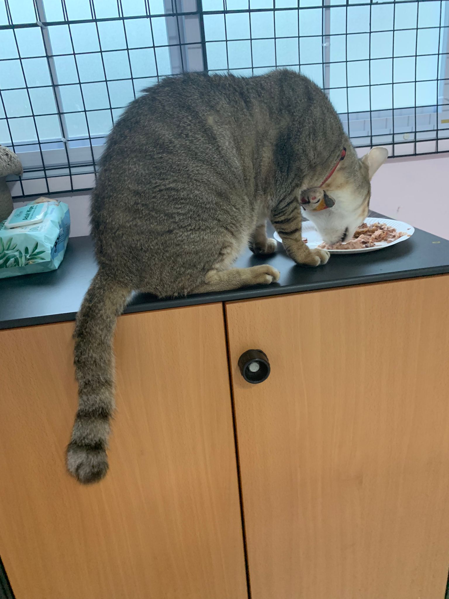 Night: sayang him, he got tuck to my leg he knows he got issue he is weak and no appetite. Don’t eat at all. I serve instinctive pouch again also no use only touch a little again. I clean his right eye and serve a/d lucky he lick some more. almost no food intake these 2 days. Subcut/ bupre/ meloxicam also no use. Tmr morning I’ll bring him for check up. Feel that need something diff maybe dexa jab.