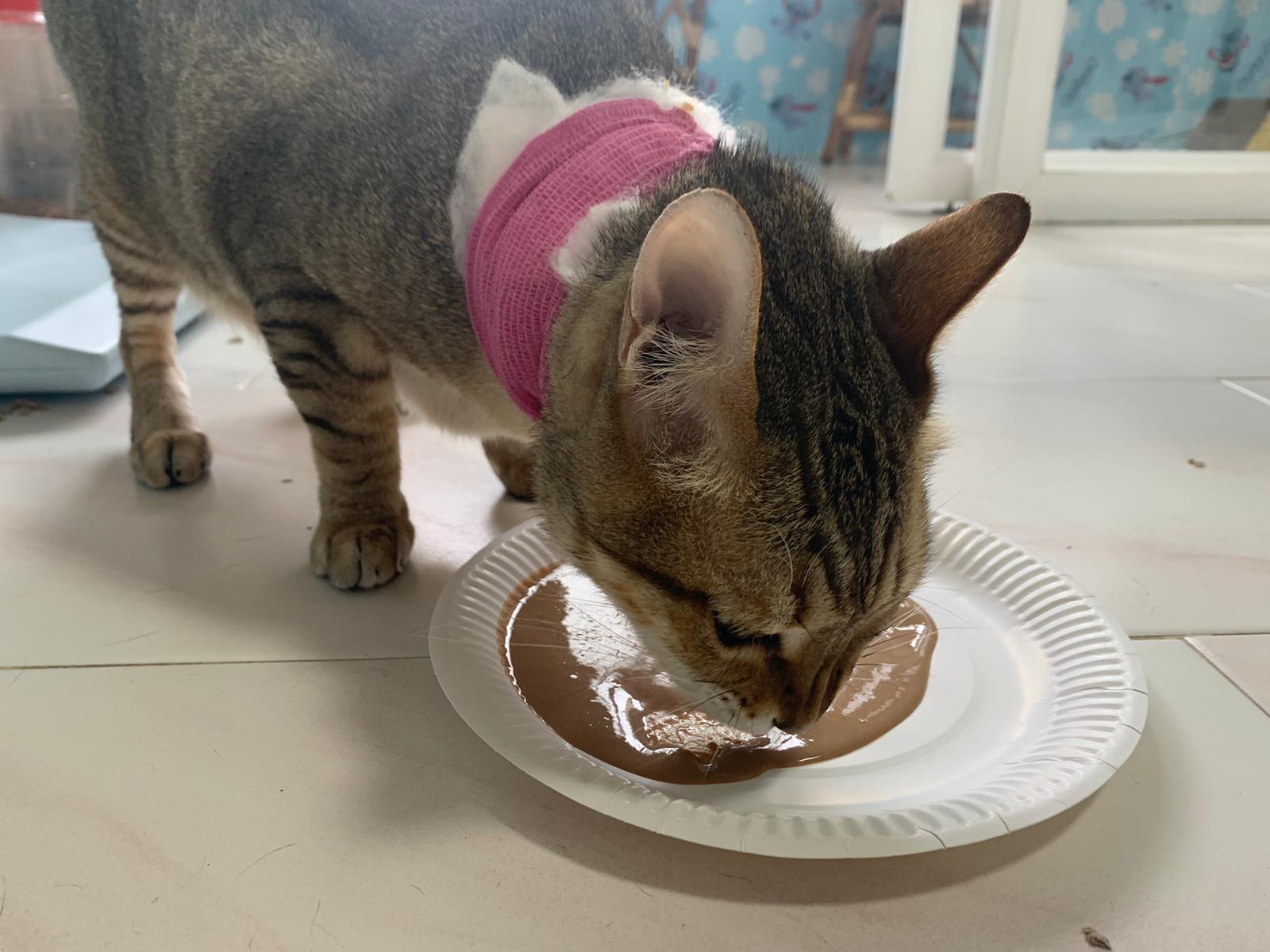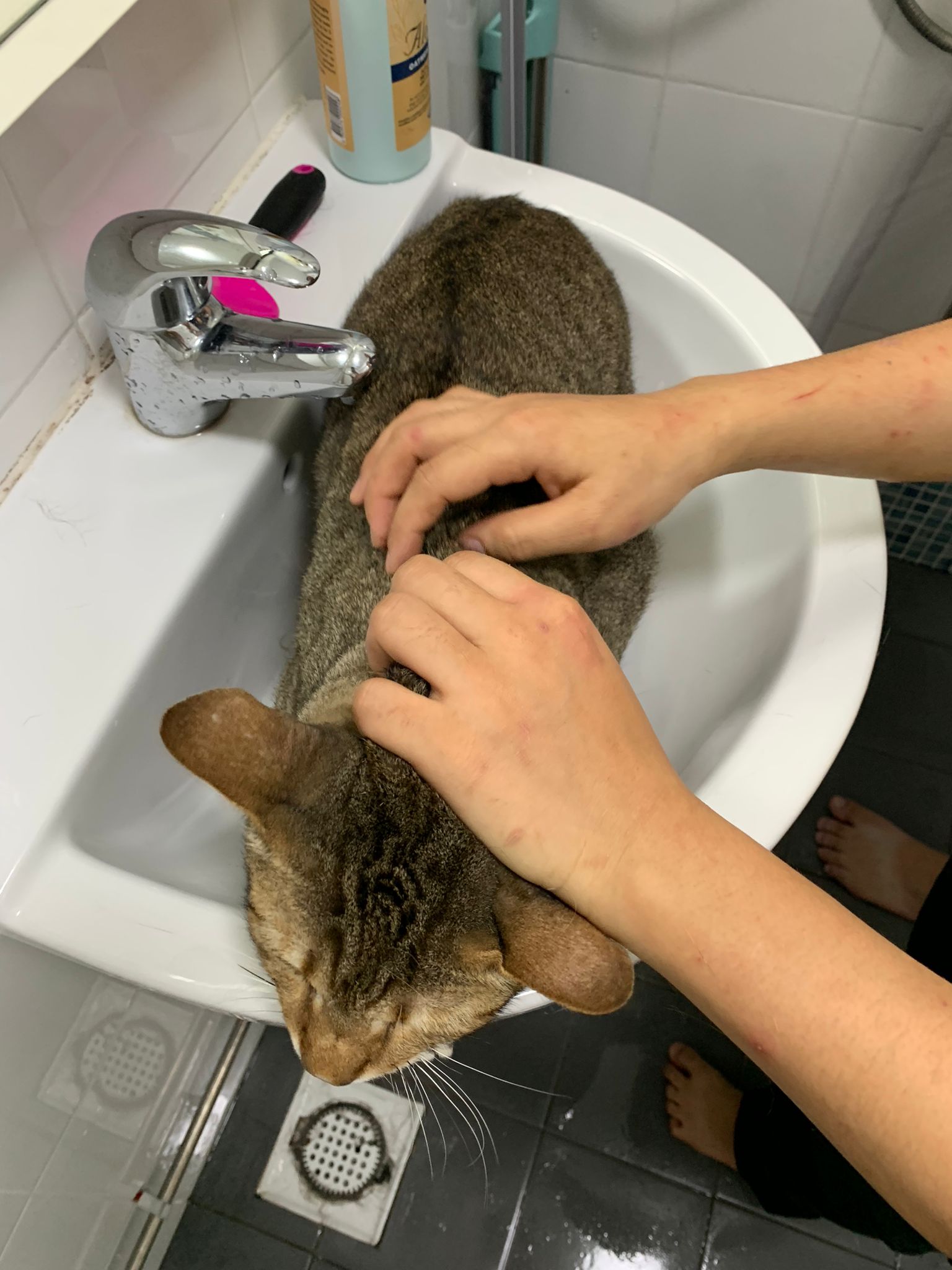 1219pm: back in 猫房, given doxy 4.8ml and 18ml aixia oldie, have to flush more water cos aixia not watery.