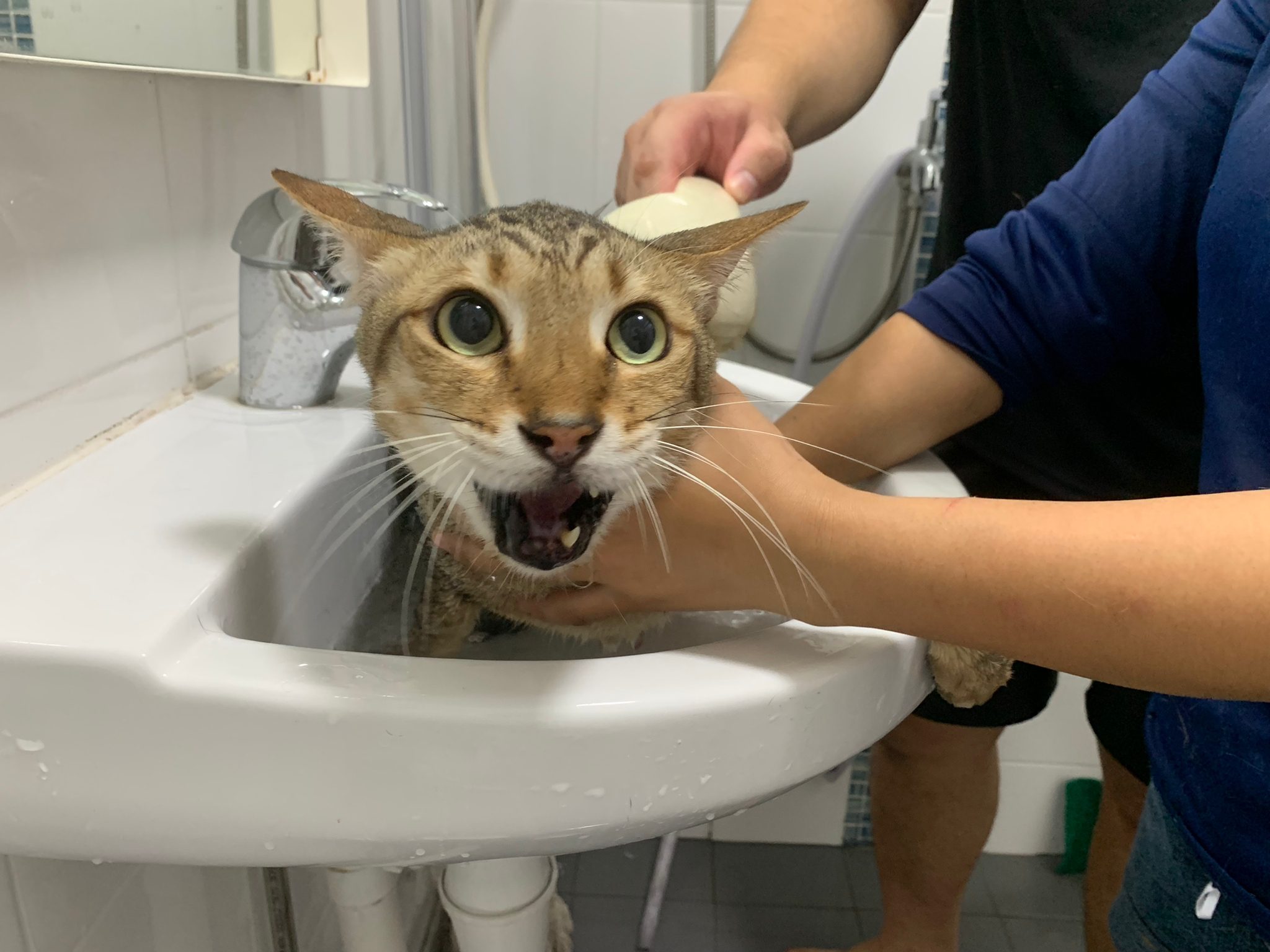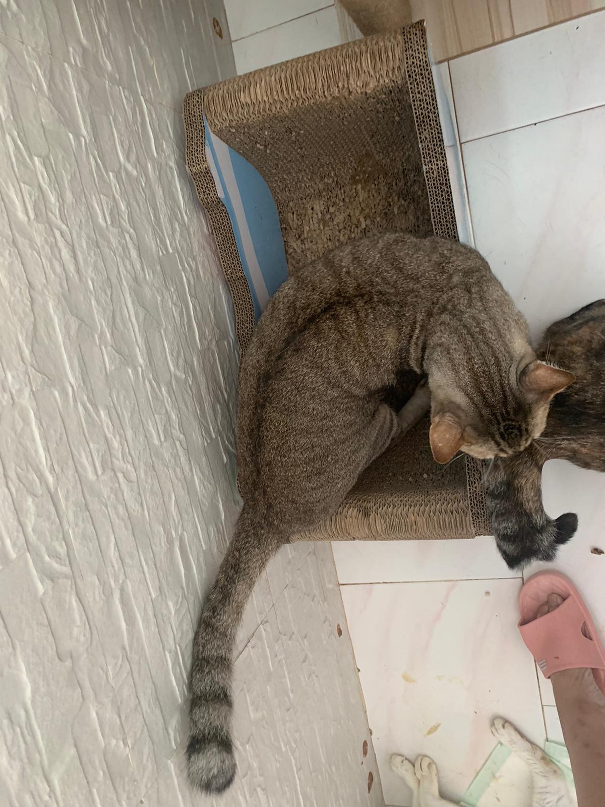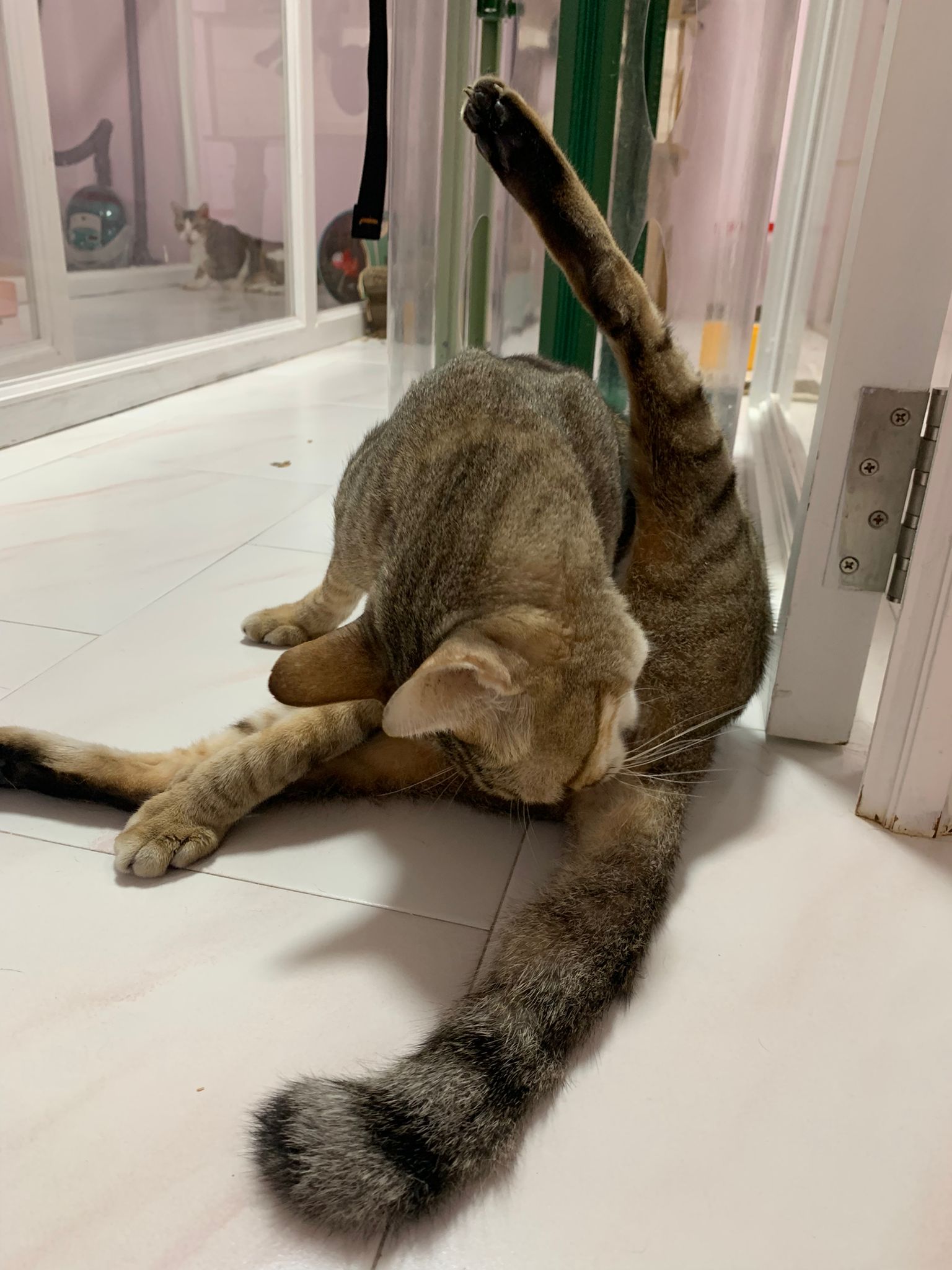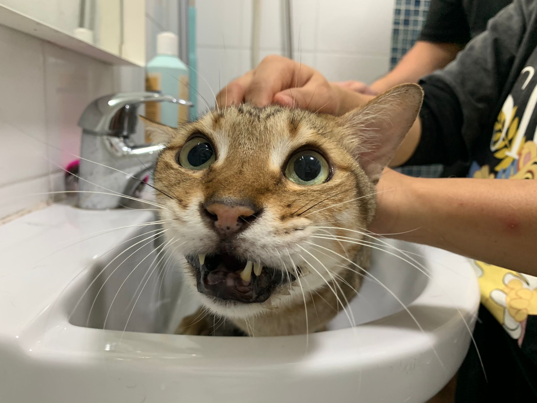 * Alley : lights out Liao but sound like major fight starting so I go check – alley and Xiao Hui – saw alley mouth all blood, I whack him Cos I thought he bite until Hui so much blood. Later found out (roughly Cos alley 臭脾气can’t touch to check one) he most likely bite his own tongue or Xiao Hui injured alley inner mouth n he is bleeding himself – still Willing to lick fish treat but too pain n stop.
