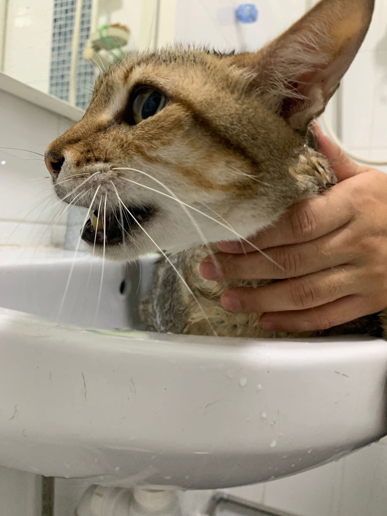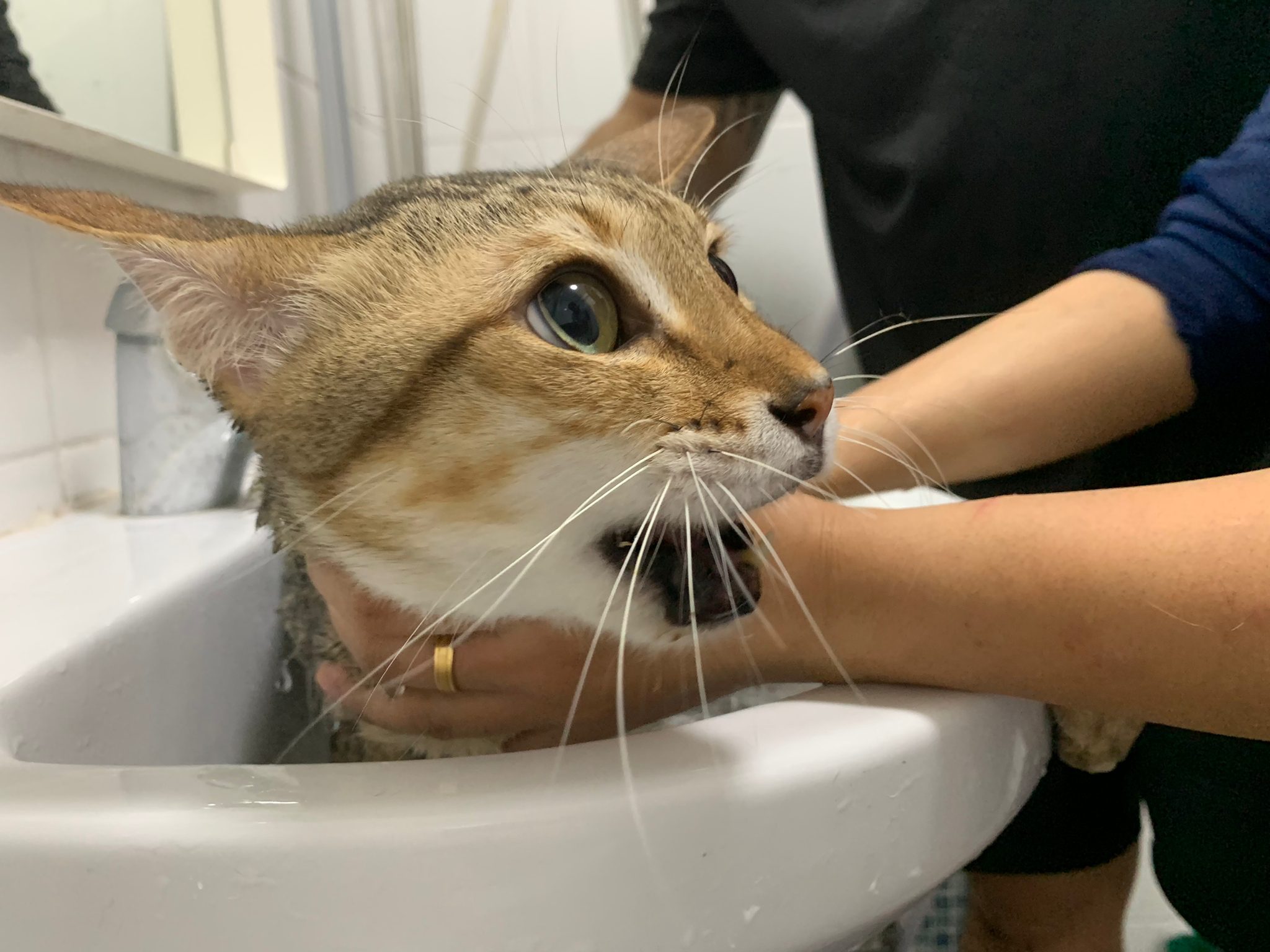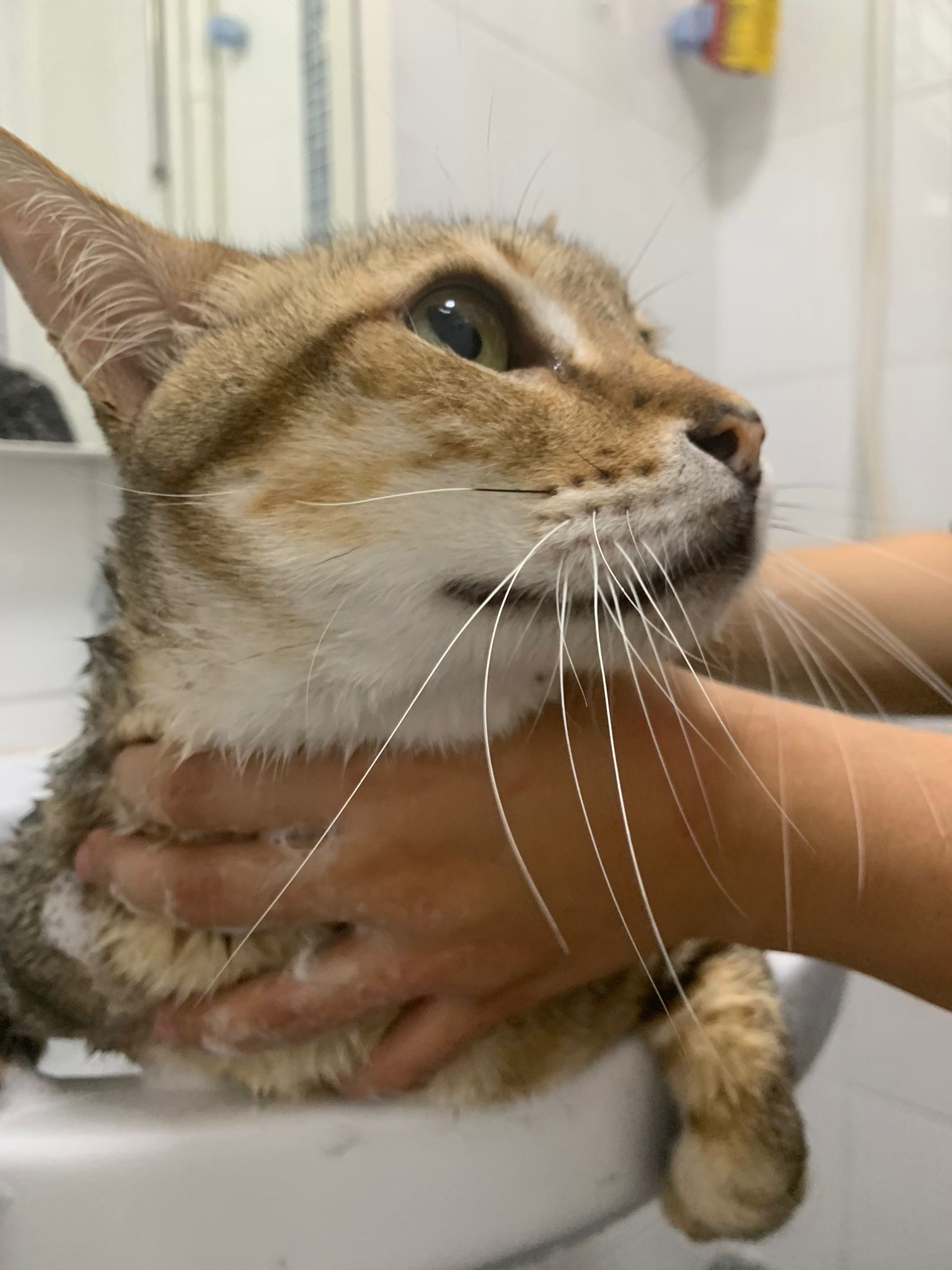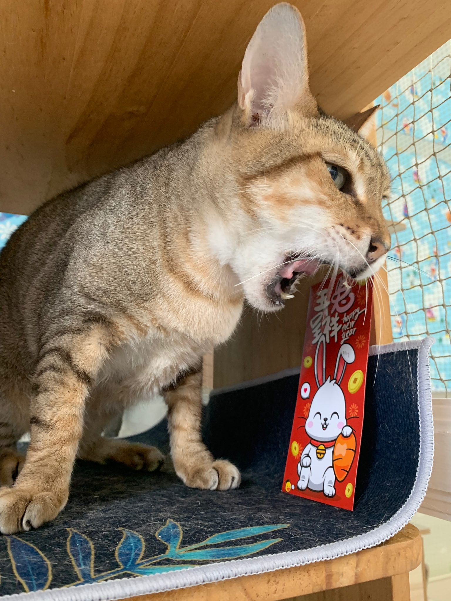 * Alley : lights out Liao but sound like major fight starting so I go check – alley and Xiao Hui – saw alley mouth all blood, I whack him Cos I thought he bite until Hui so much blood. Later found out (roughly Cos alley 臭脾气can’t touch to check one) he most likely bite his own tongue or Xiao Hui injured alley inner mouth n he is bleeding himself – still Willing to lick fish treat but too pain n stop.