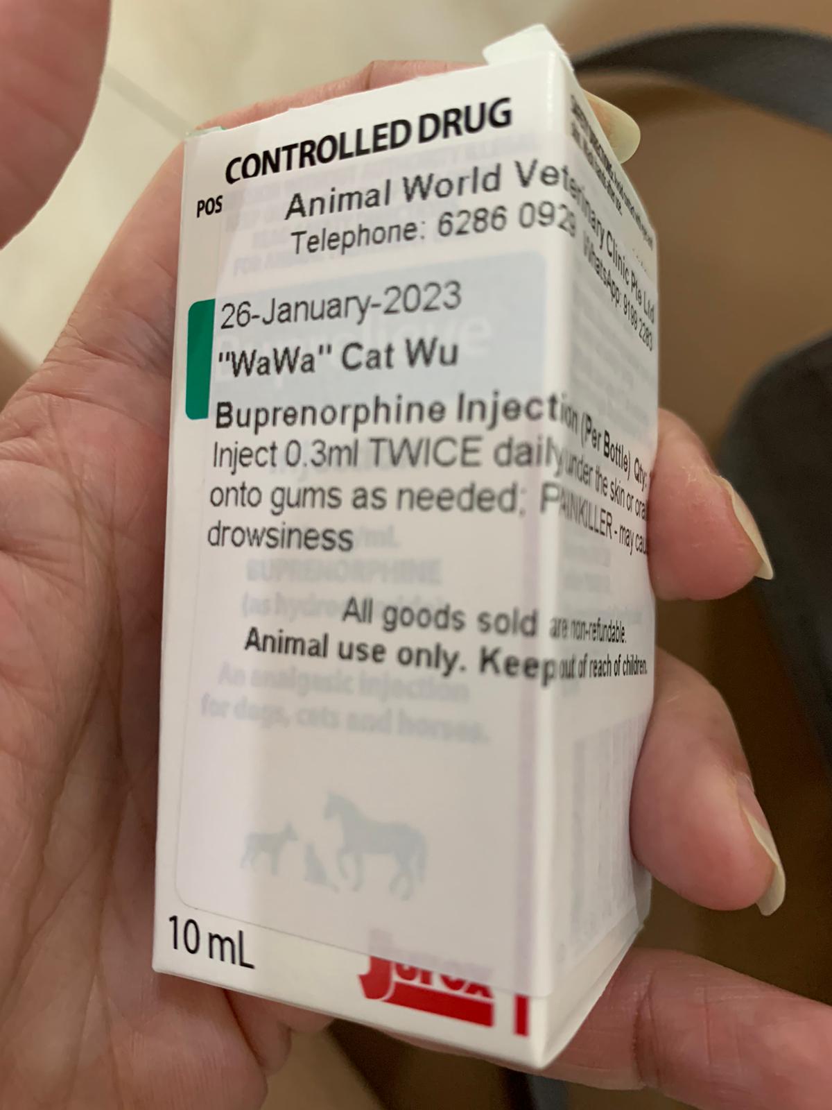 Night: he is still not moving down. Drooling a lot. Tmr got to bupre n meloxicam him. Sayang him he love it but I need to be careful cos won’t know when it will trigger any pain to him.