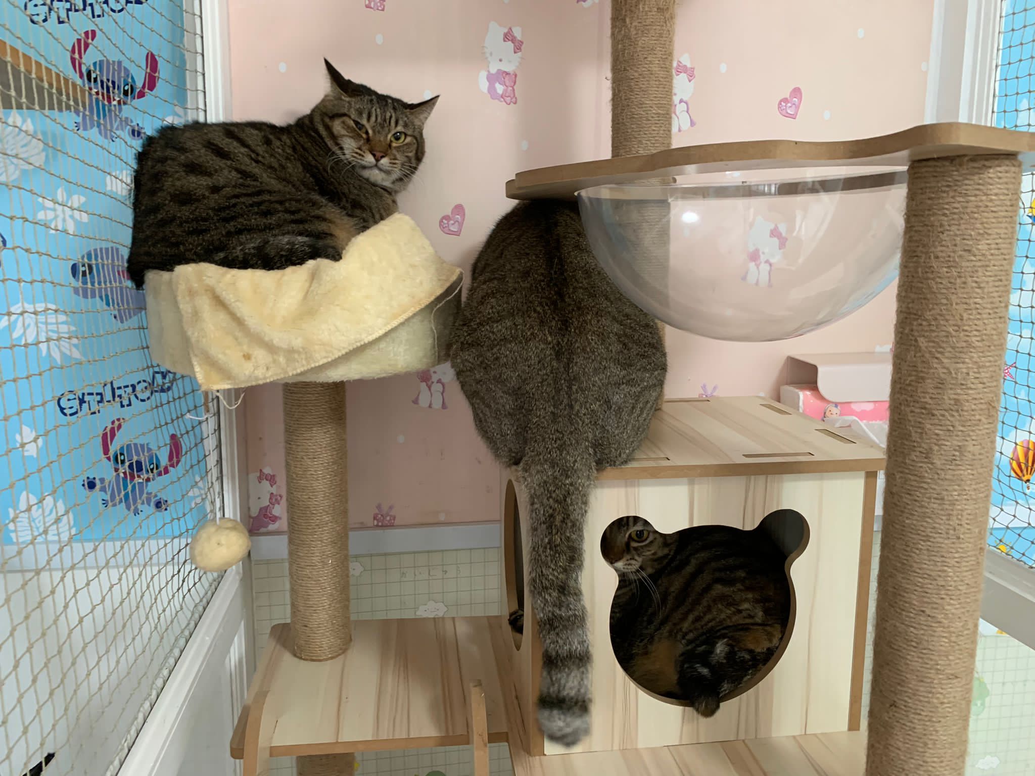 1.17pm: checked ip – he is not in view. Checked: 12.30pm he jump up to the level 2 of the cat condo
