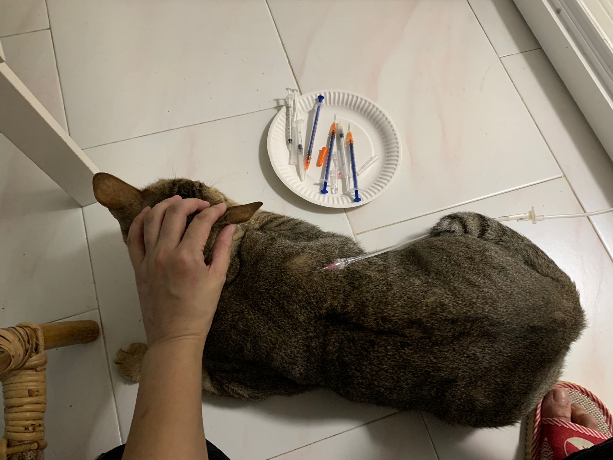 10.45am: can safely says he didn’t eat. Take it as day 03. By tues is day 05 and I’ll put nasal tube. still respond to me, I got hug him sayang. Subcut n medi n he go into tv condo and I know he is angry. Or v unwell. I sayang him tell him ok just sleep. Rest well. Body will fight.