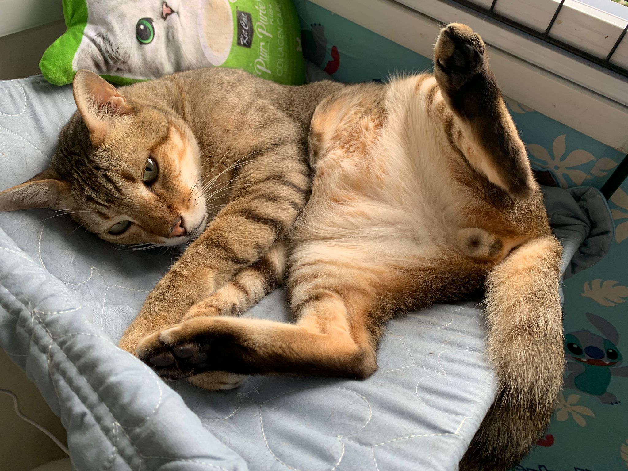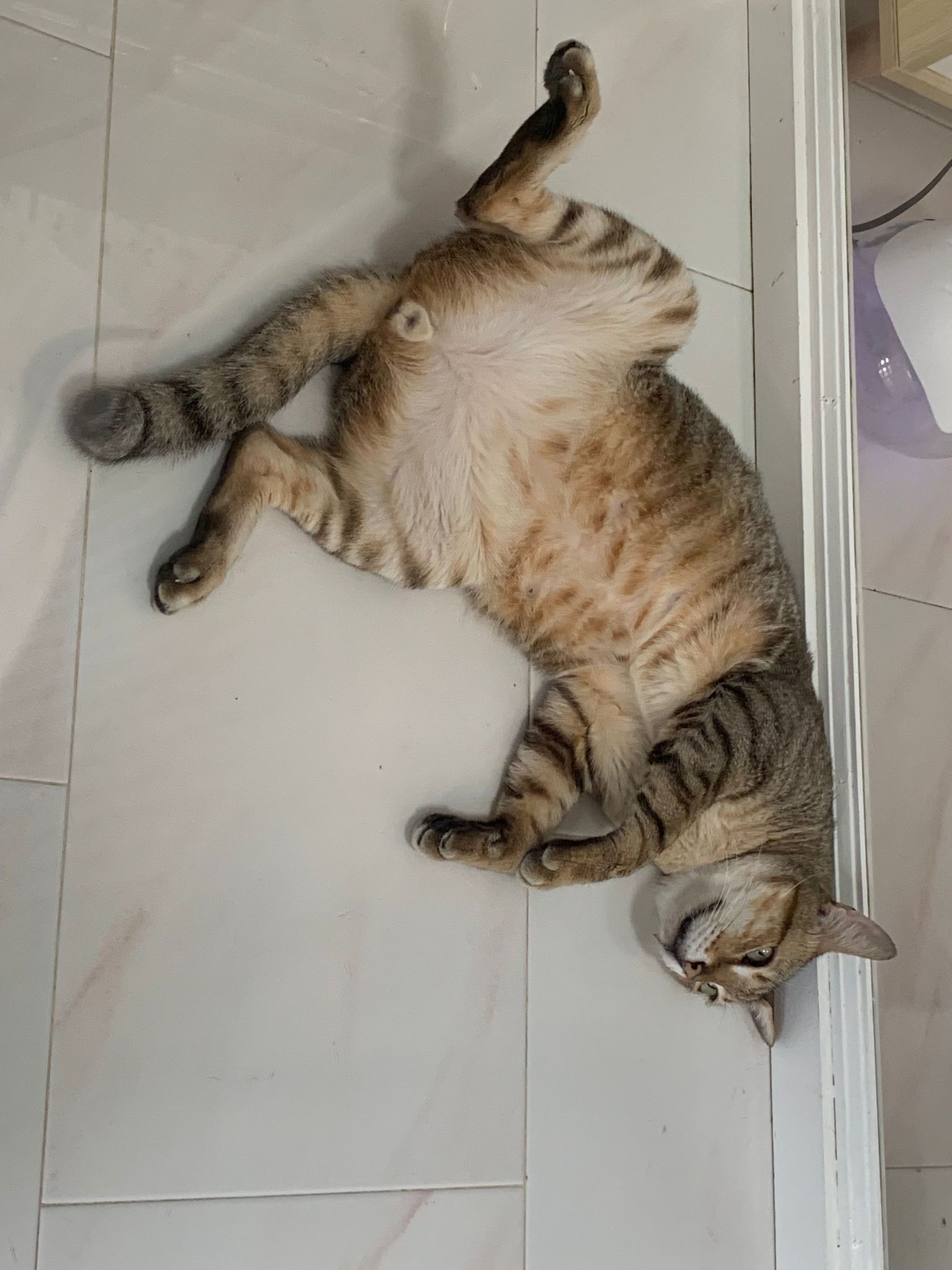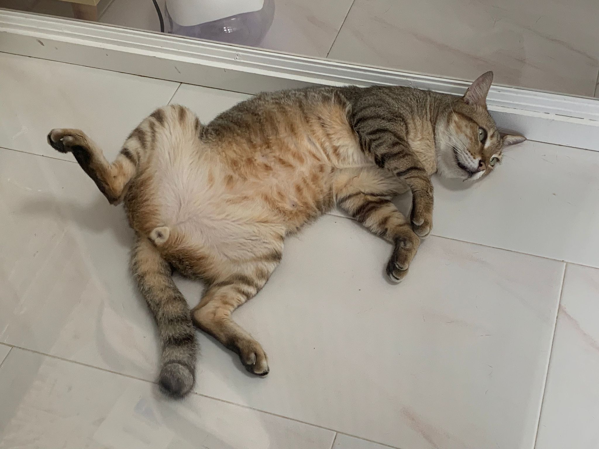 • can’t help but feel that alley like not well. But physical he is still huge and muscular – weight gain n look strong. Maybe just emo? Jealous? He likes fo flip on floor for belly rubs