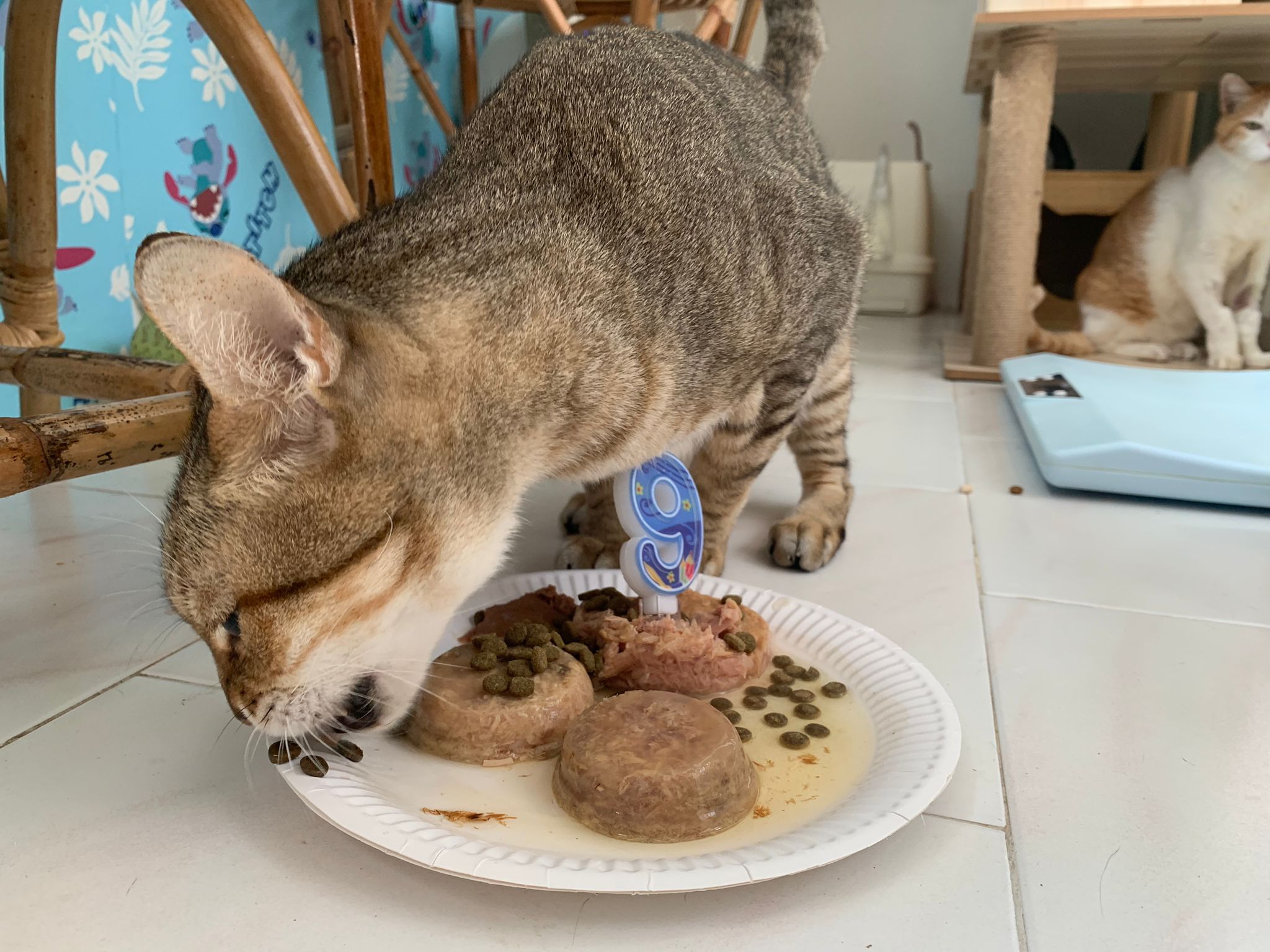 * morning; alley ate 4 diff flavours when I give him – each only a bit