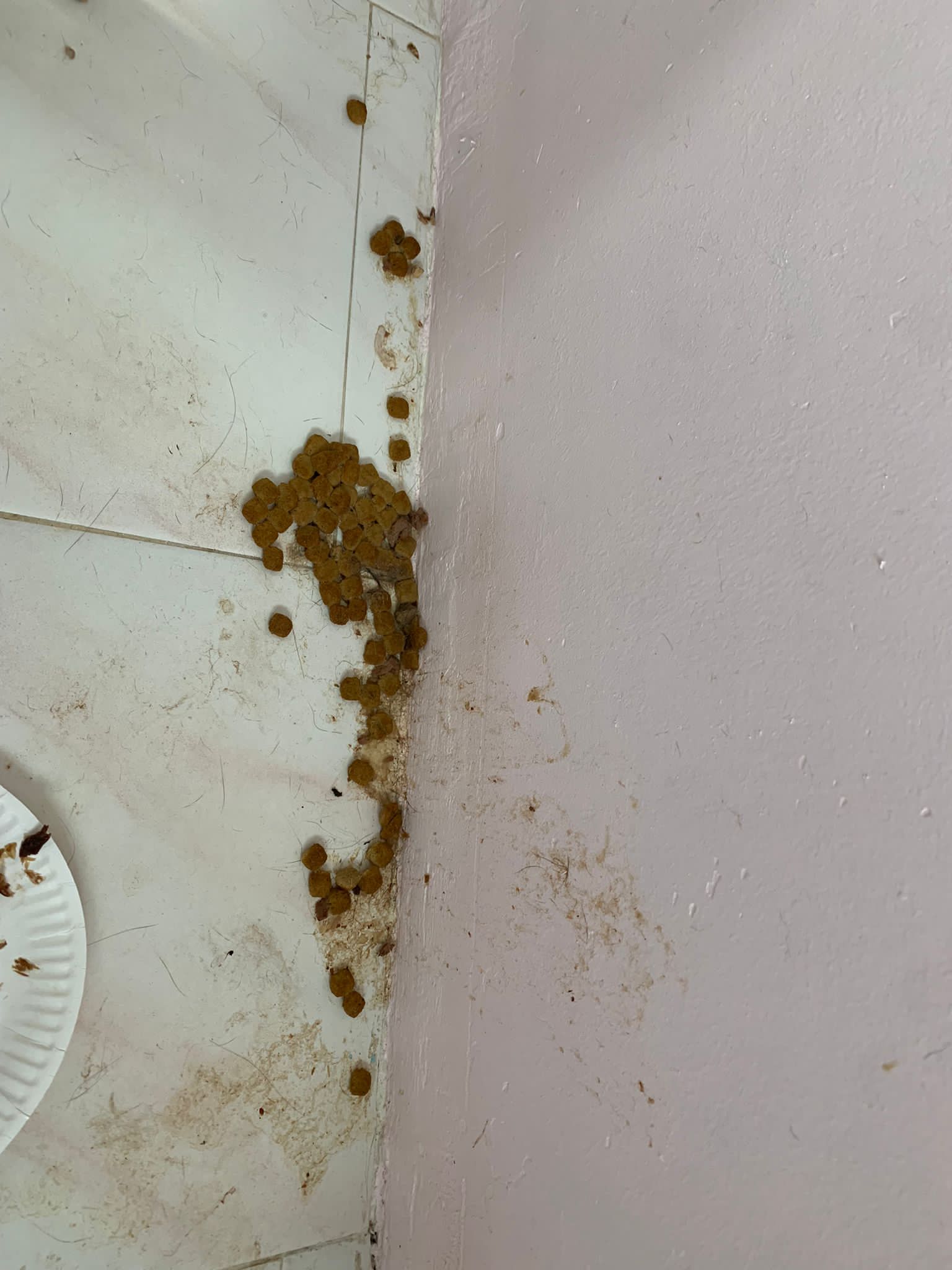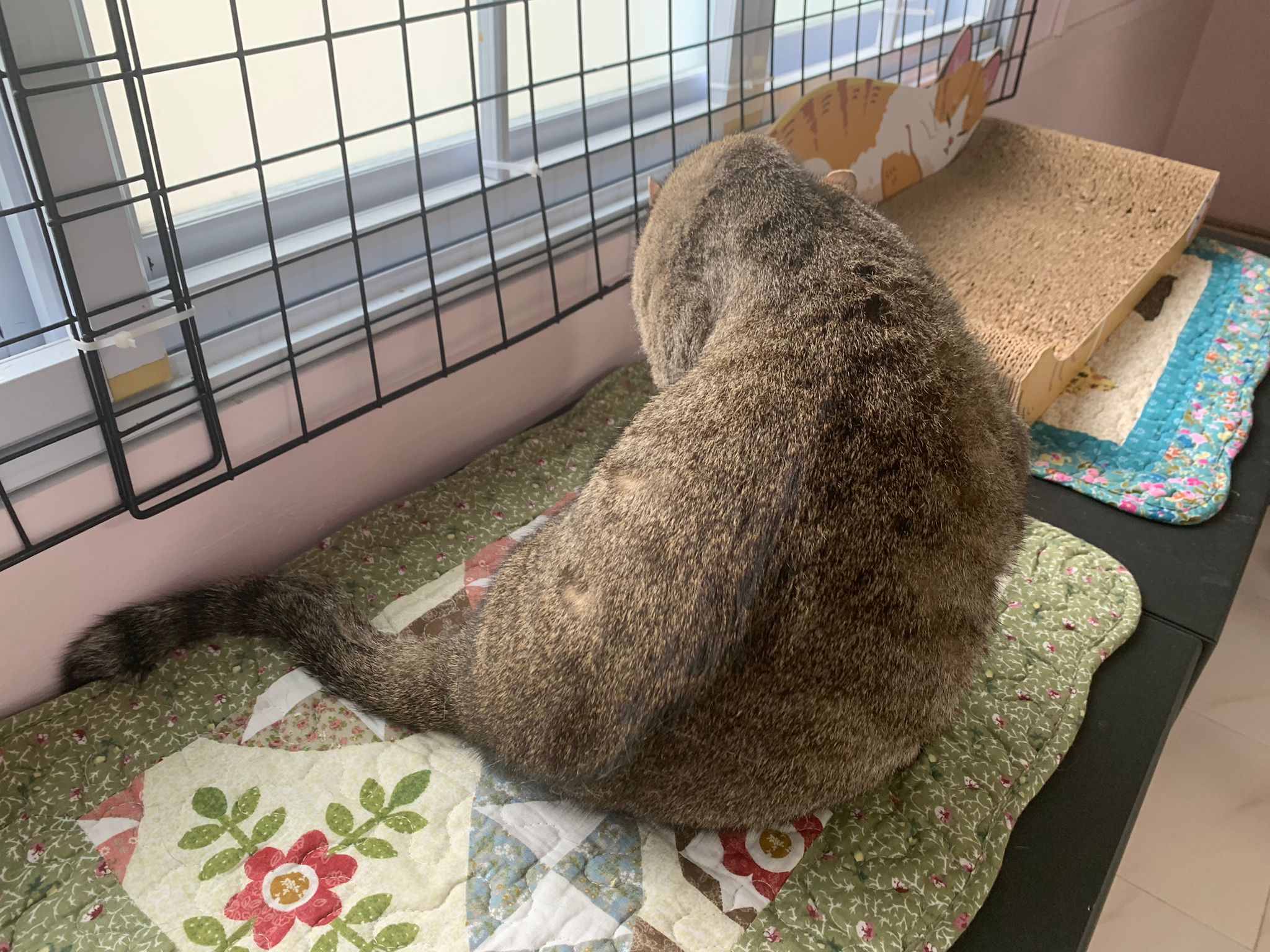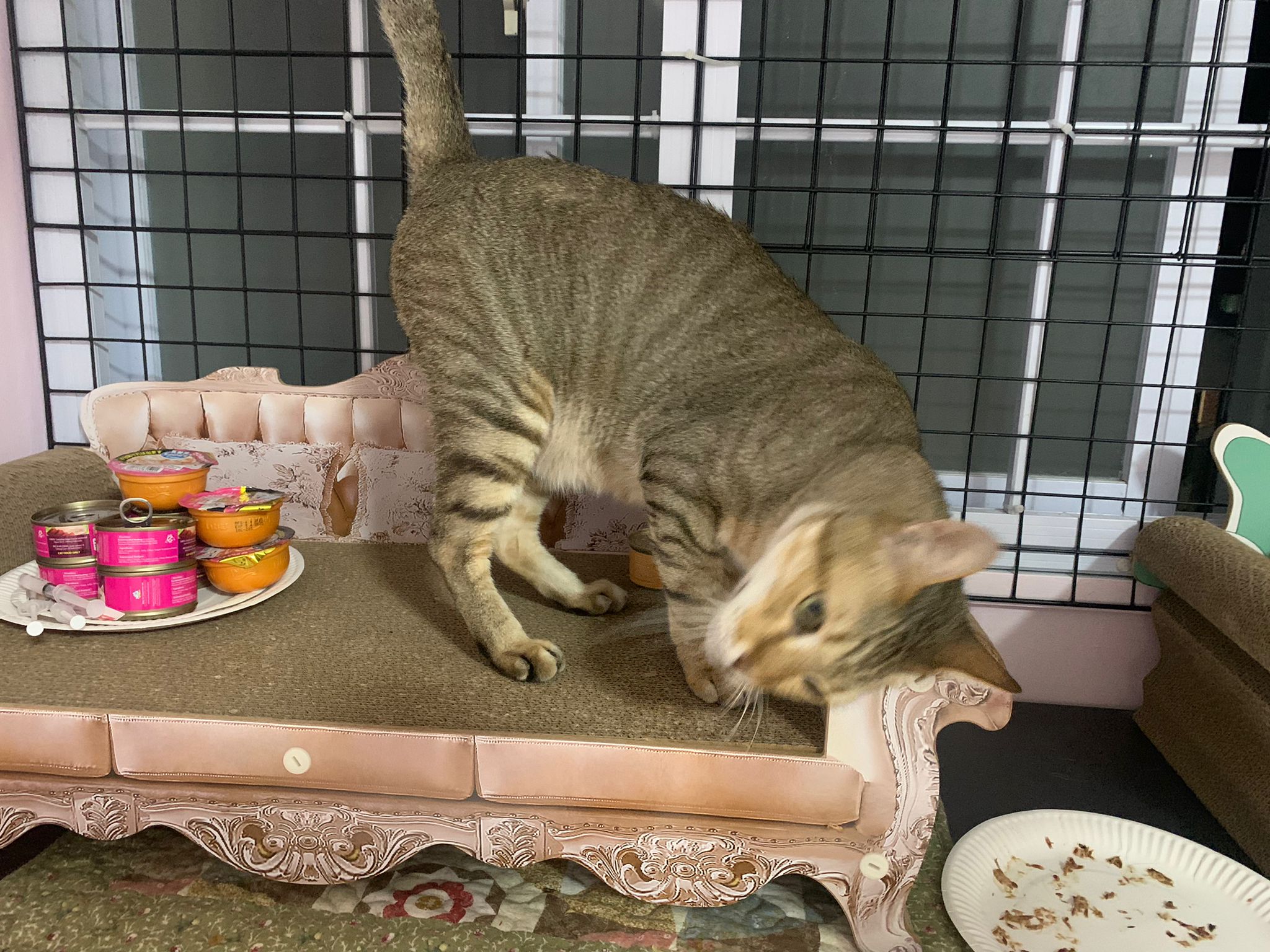 12pm+: I’m back he didn’t move. Vacuum also can’t scare him out. I tilt condo till if almost collaps then he come out. Given bupre. Bring good plate to him not eating. lucky I open instructive pouch he willing eat (a little) didn’t weigh but he obviously become thinner n weaker and lost a lot of muscle mass.